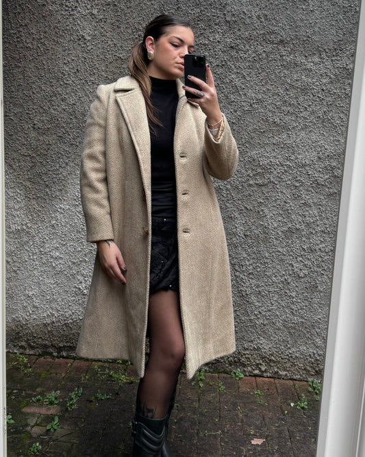 Cappotto sartoriale beige spigato in pura lana
