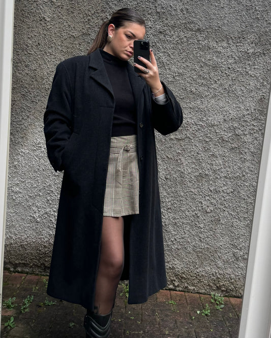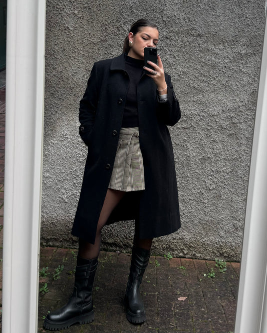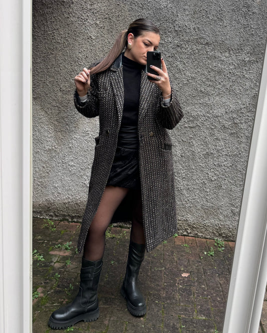 Cappotto spigato in lana con inserti in pelle