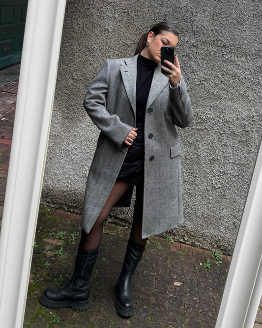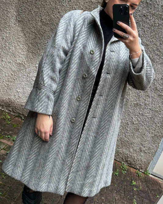 Cappotto sartoriale grigio spigato in misto lama e lana