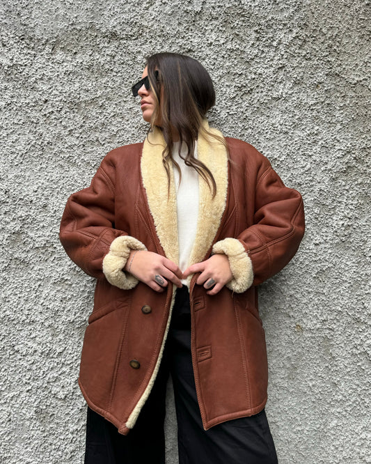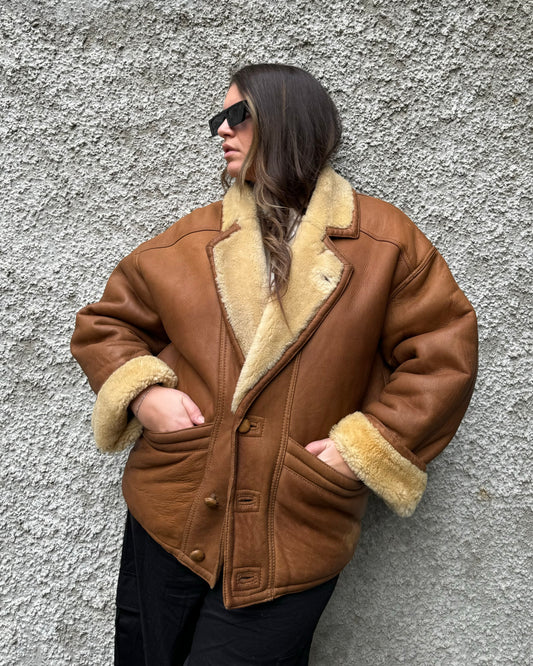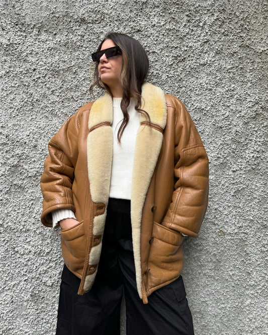 Montone Shearling in pelle caramello