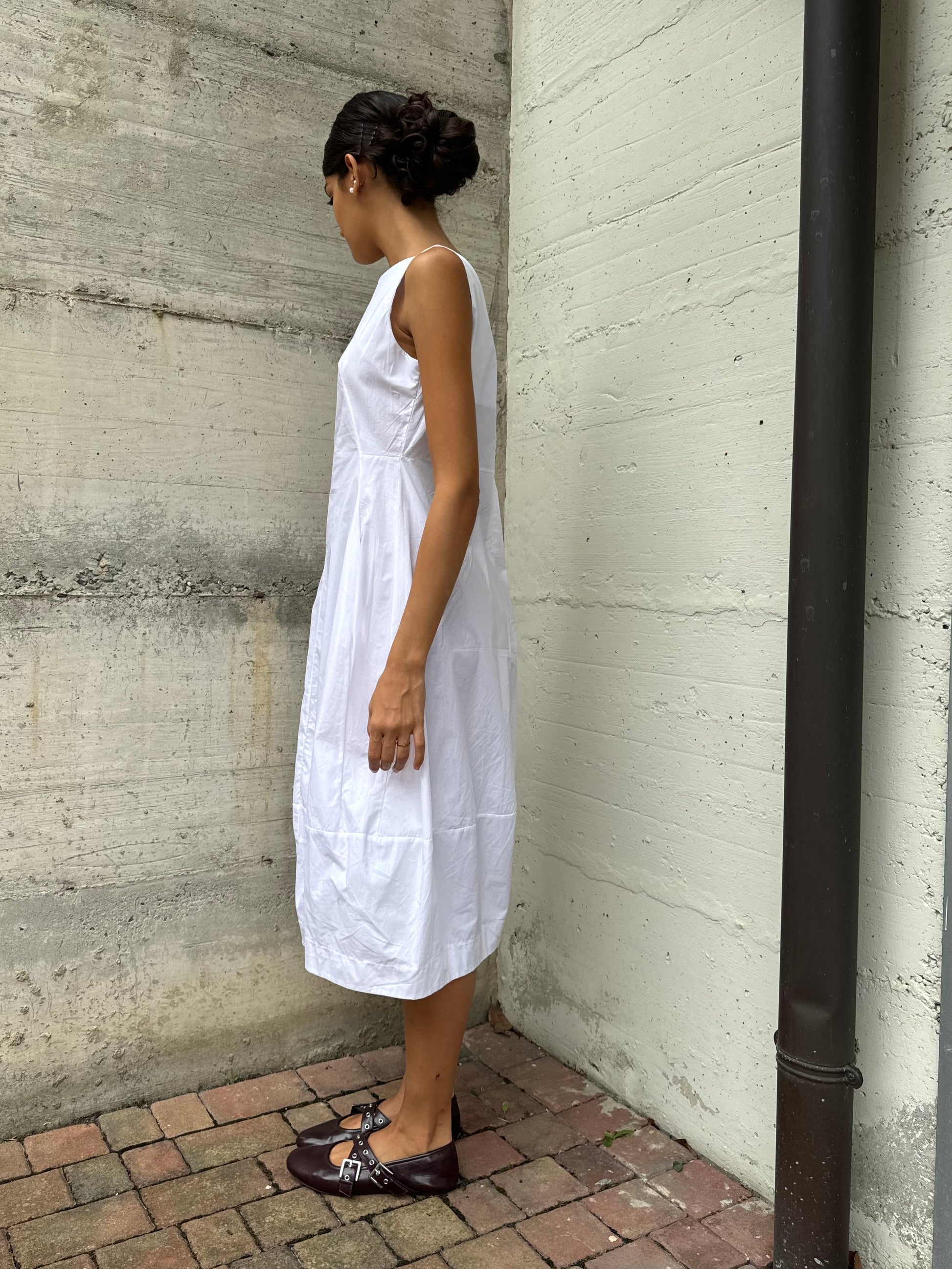 Abito midi con gonna a palloncino in 100% cotone, made in italy, taglia S