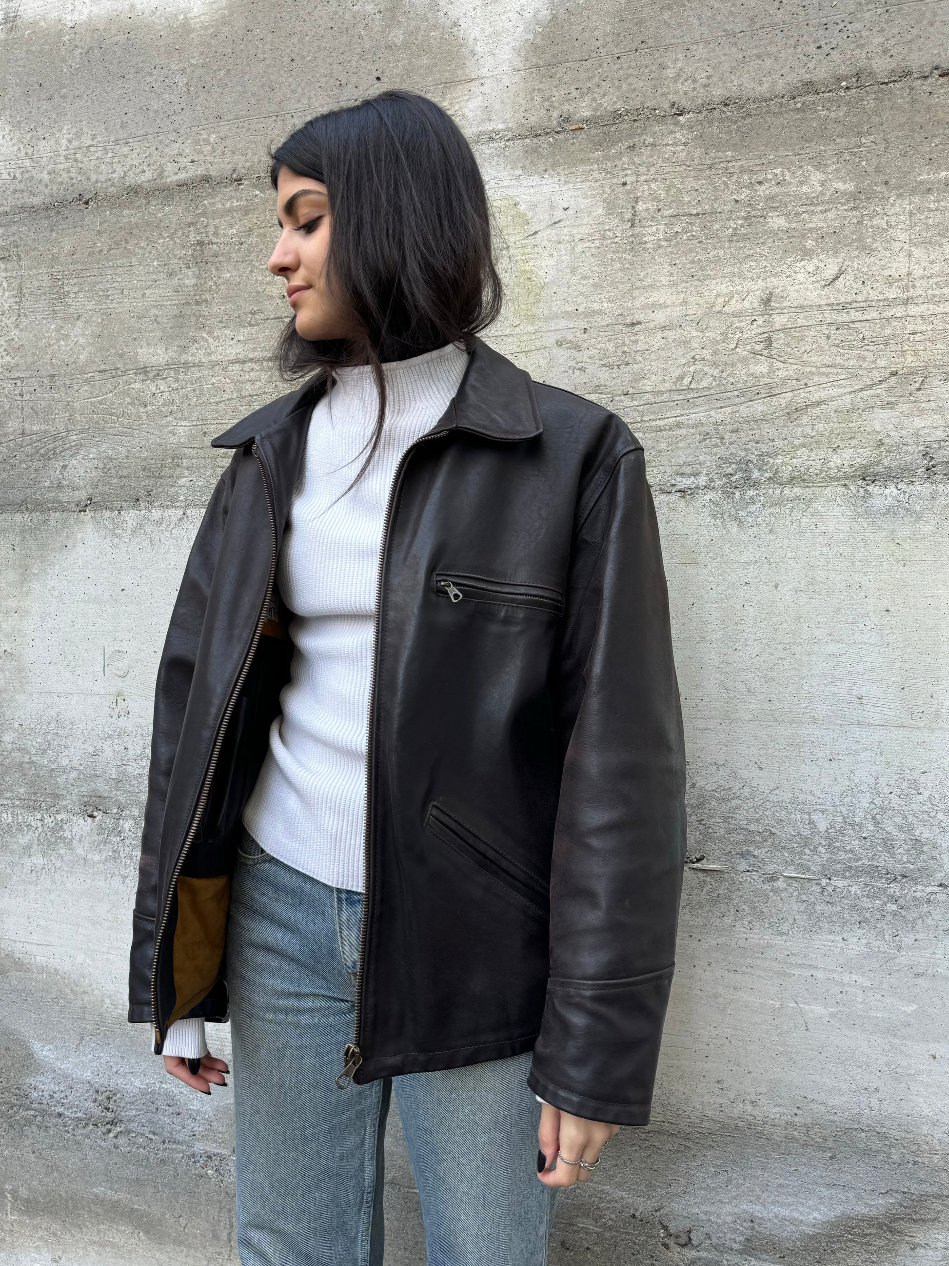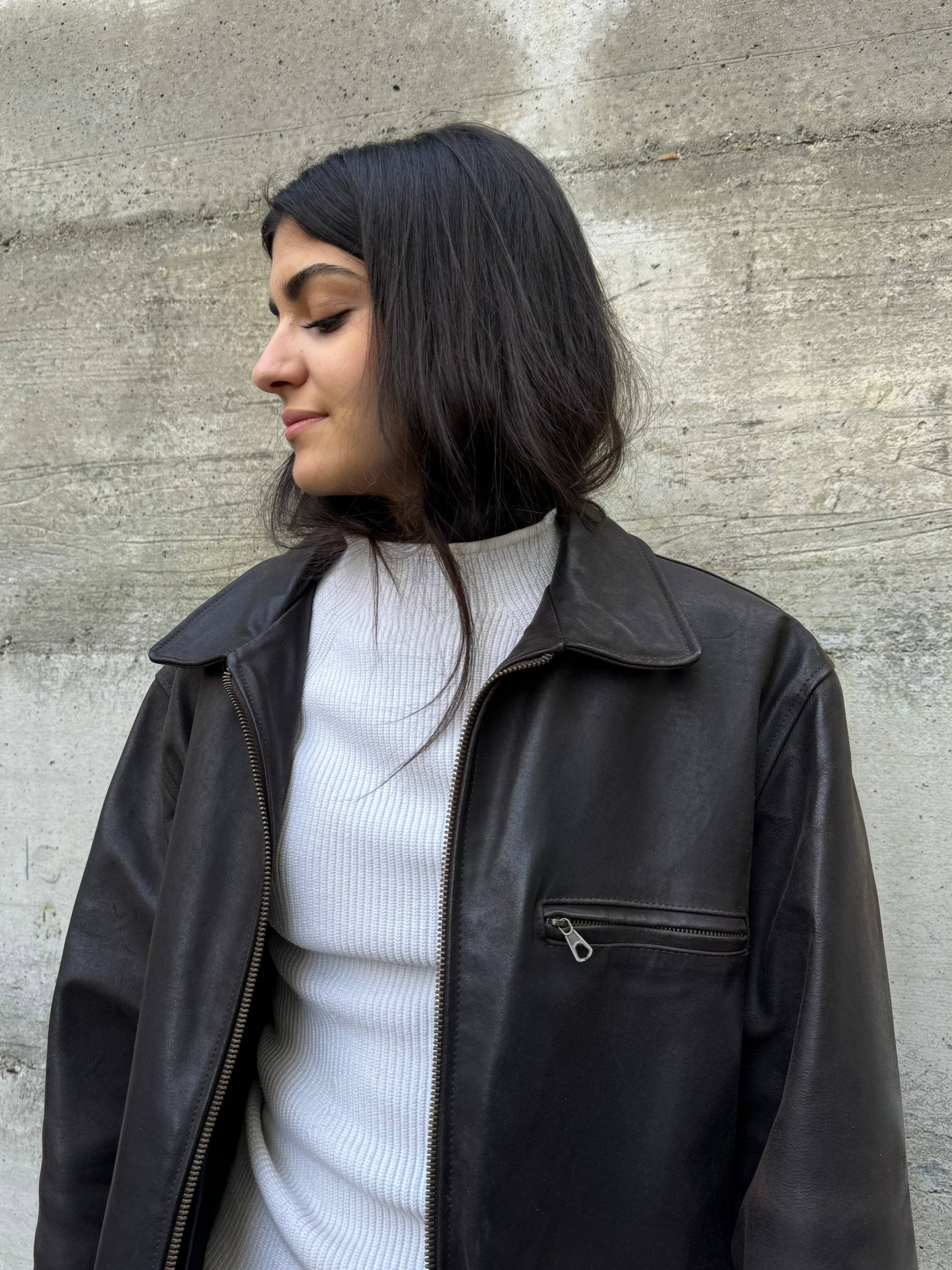 Essendo appunto una giacca da moto, il pellame è un cuoio appositamente molto resistente, quindi per sua naturale caratteristica risulta più rigido e pesante rispetto alla nappa.