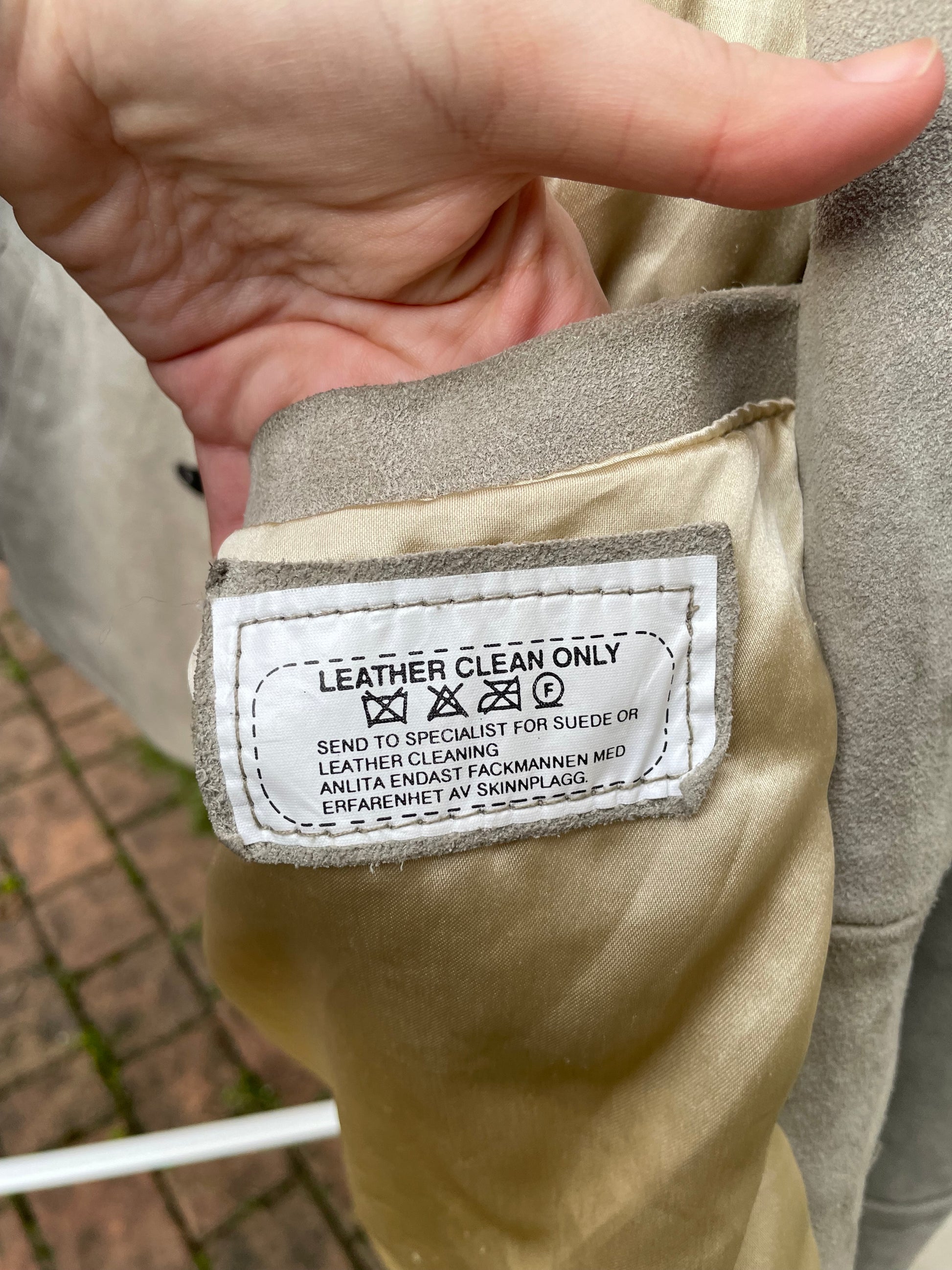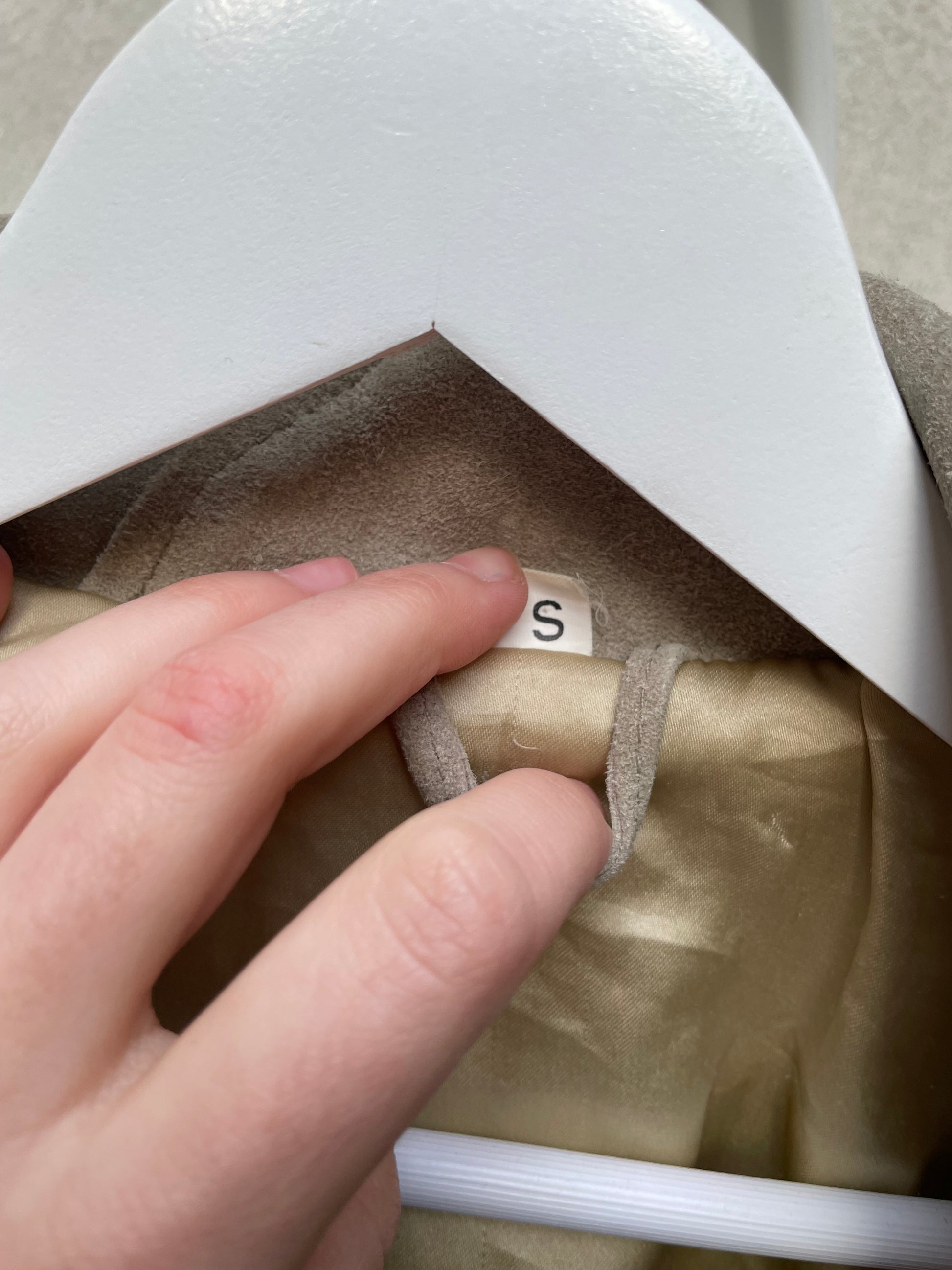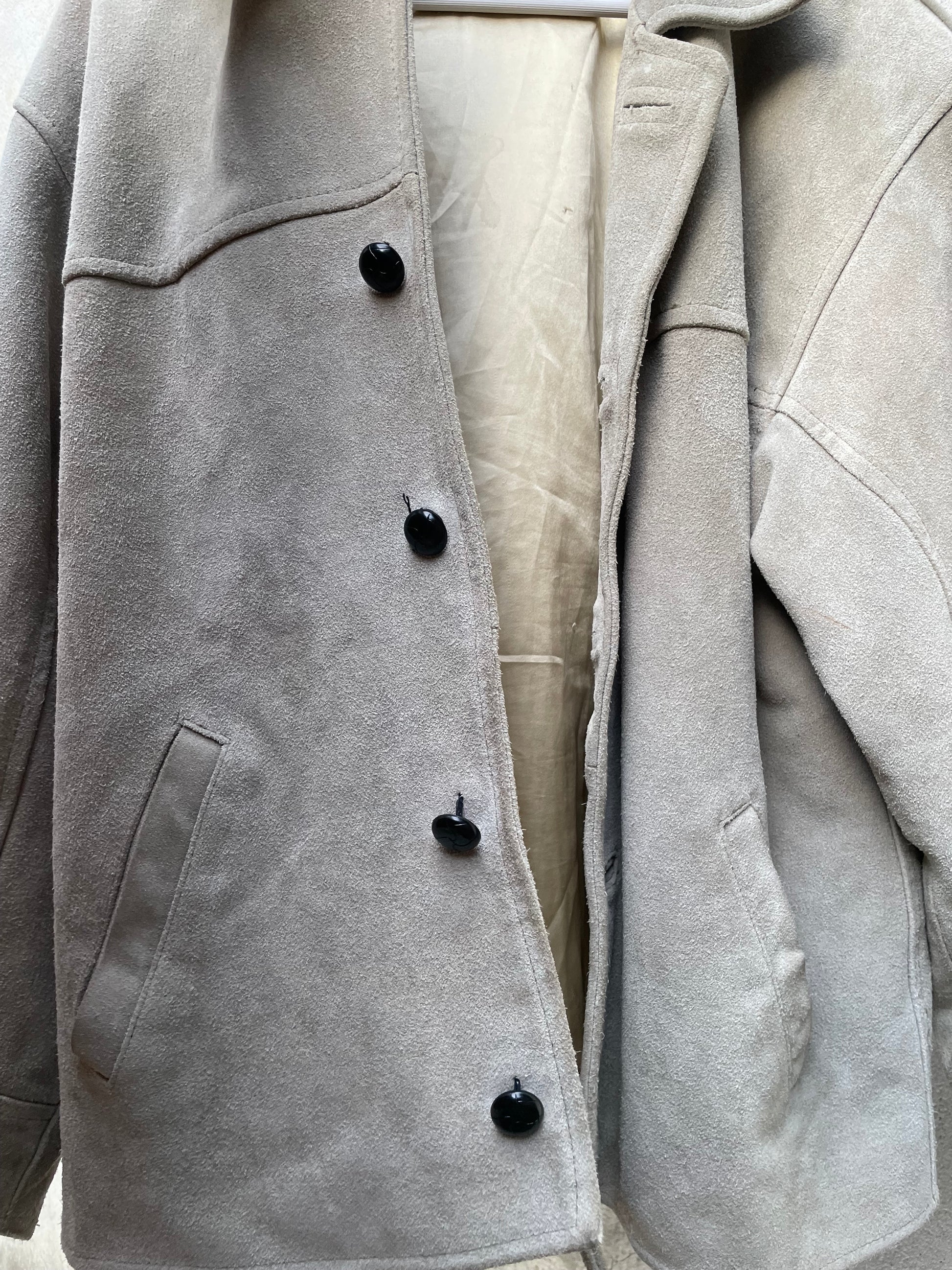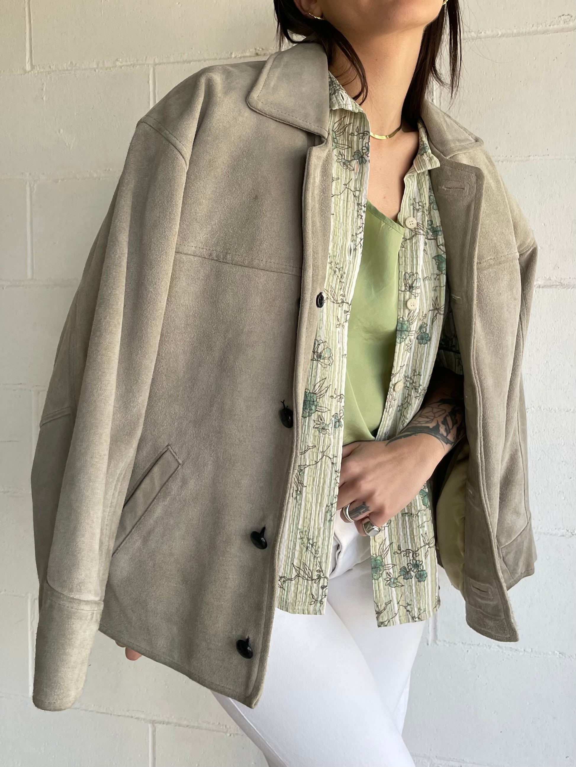 Giaccone scamosciato in vera pelle color ghiaccio / verde salvia.