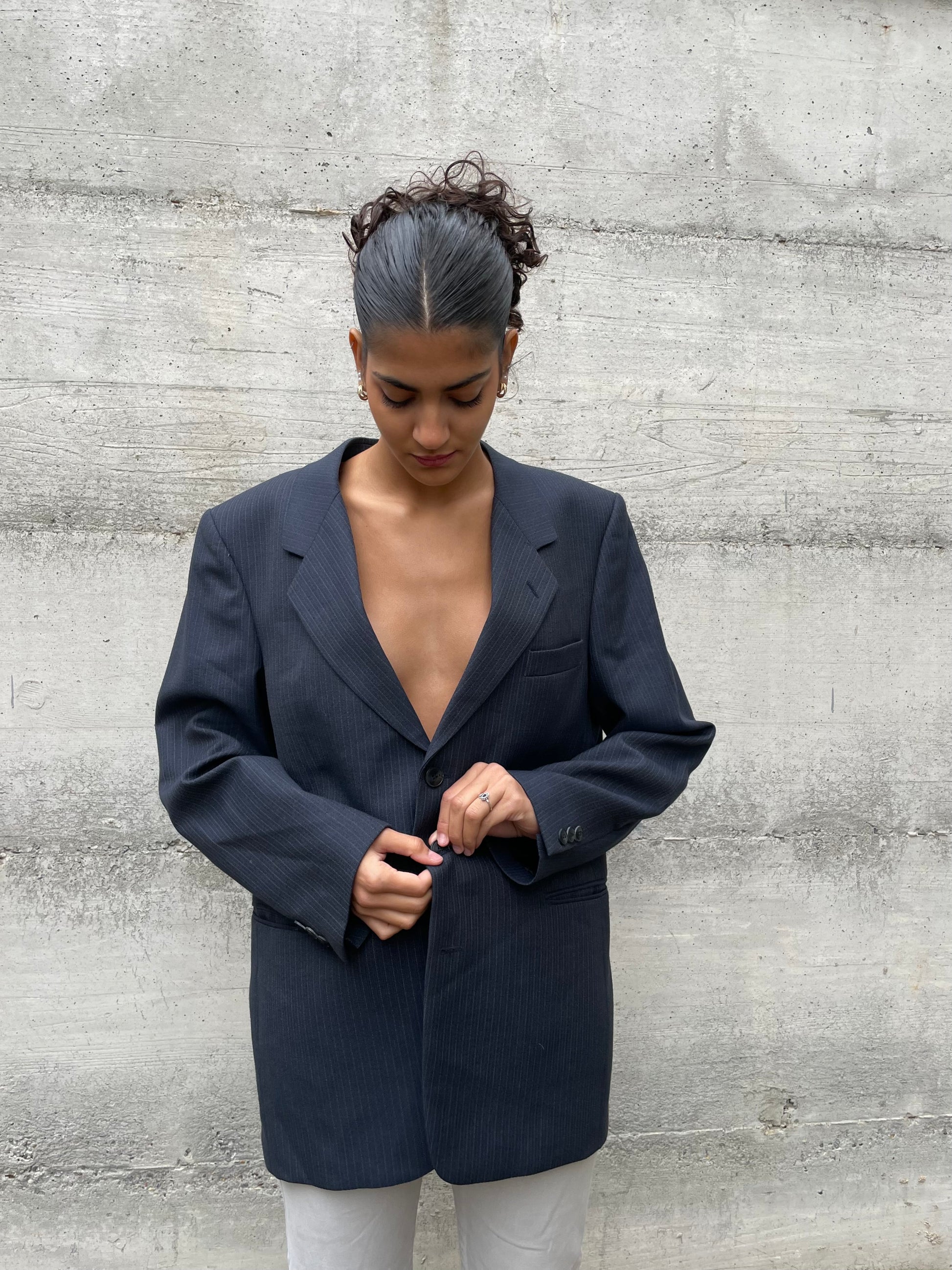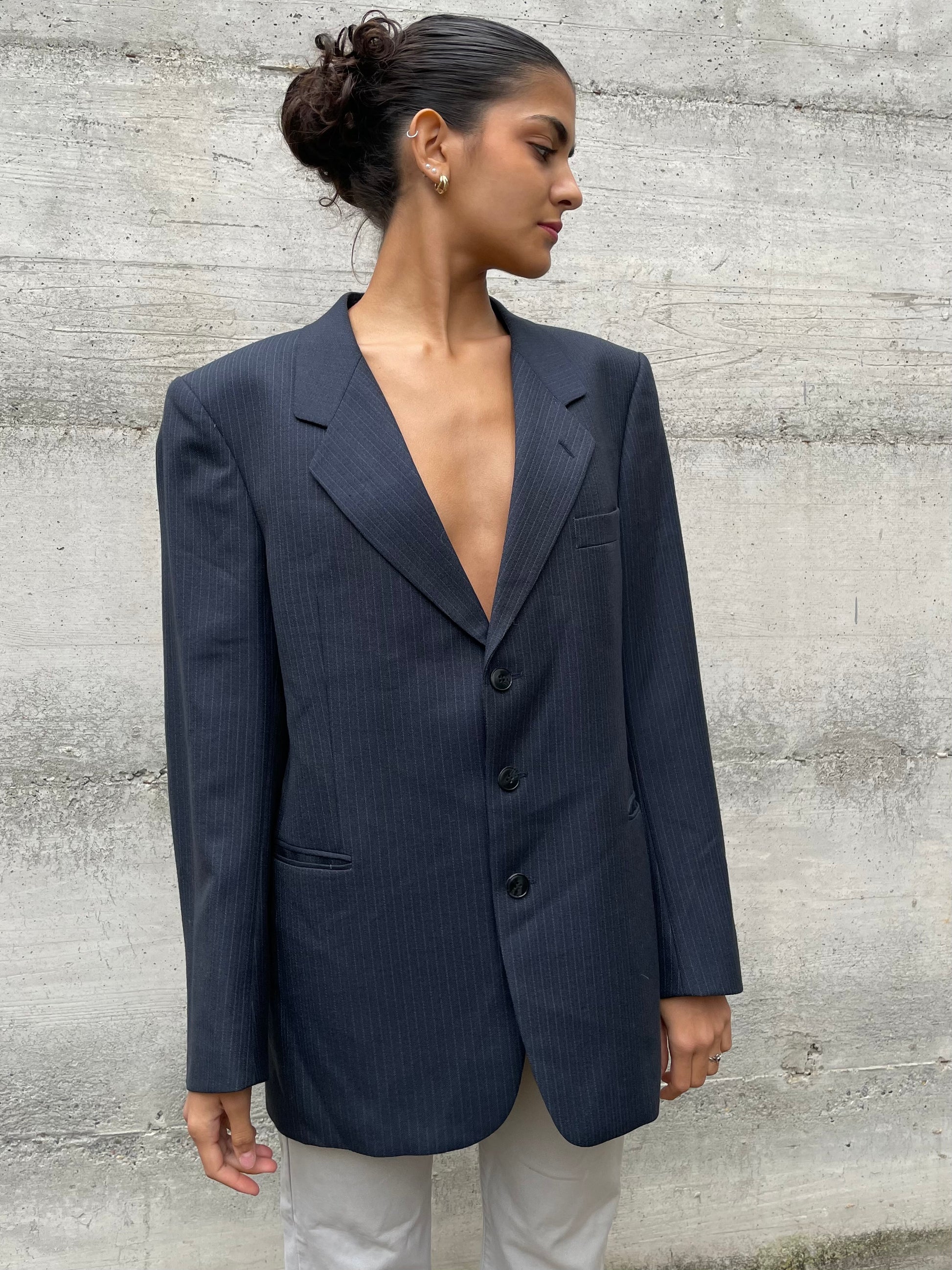 Blazer sartoriale blu navy gessato - taglia S uomo