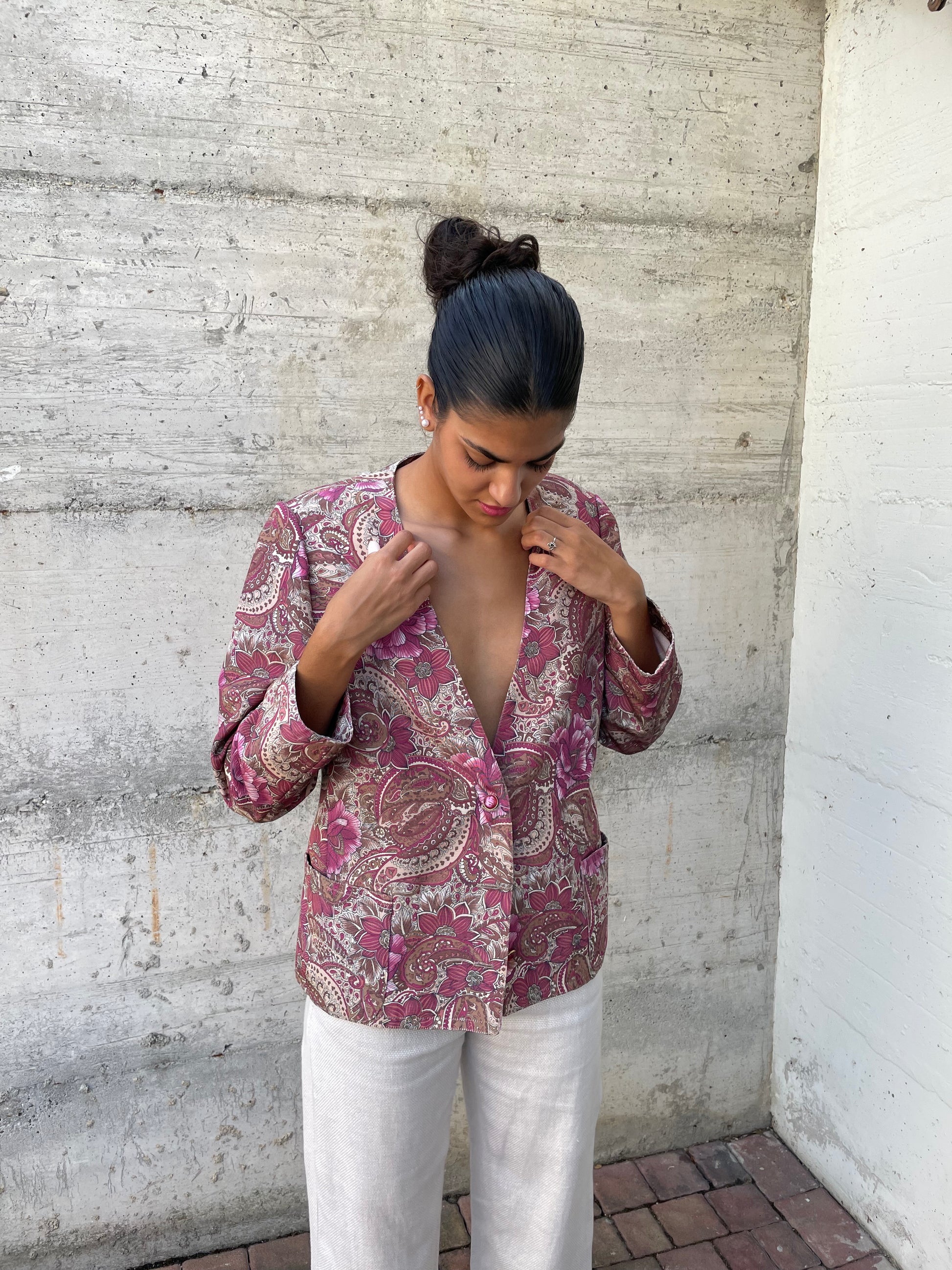 Blazer sartoriale in misto cotone fantasia - taglia M