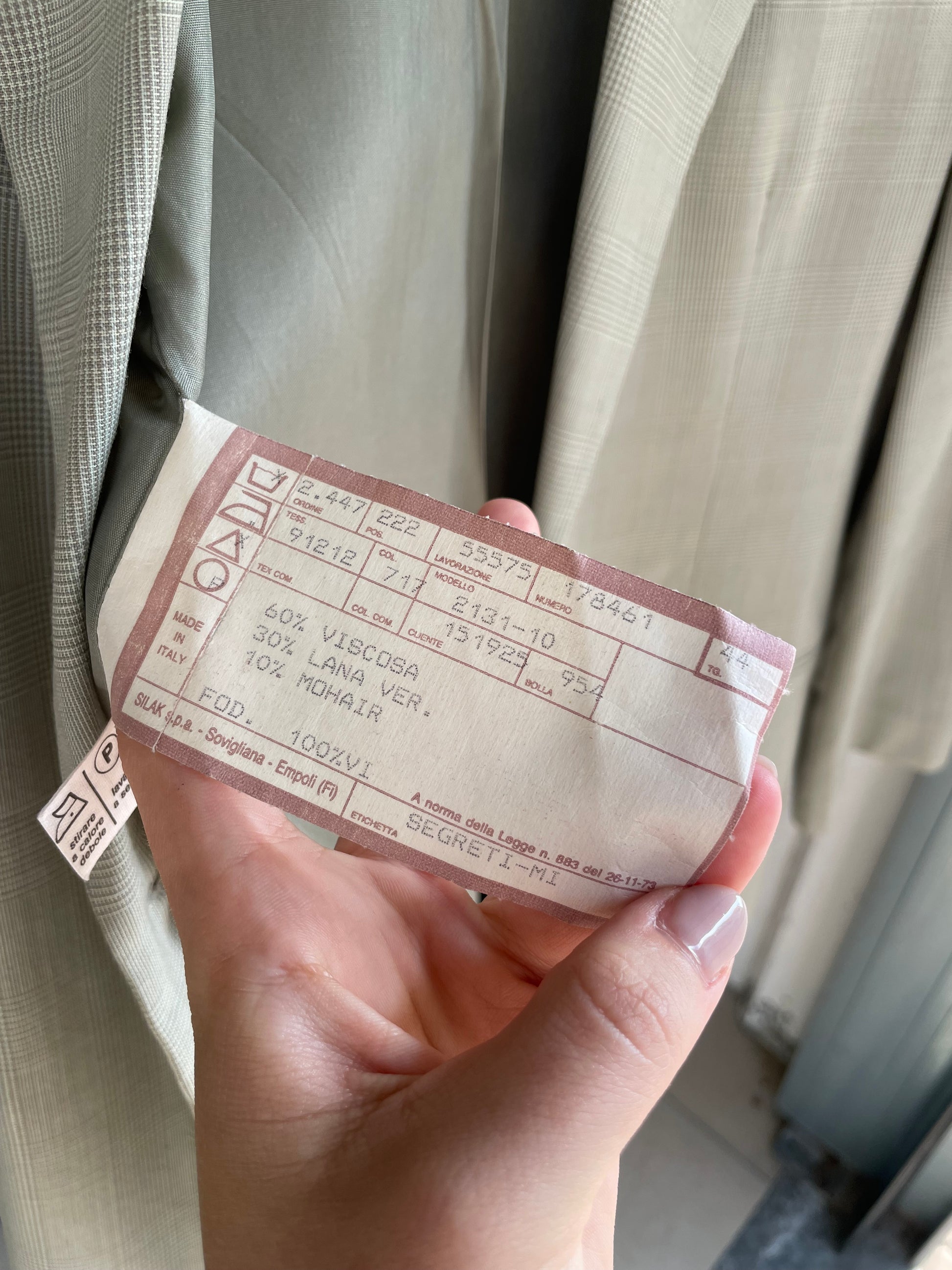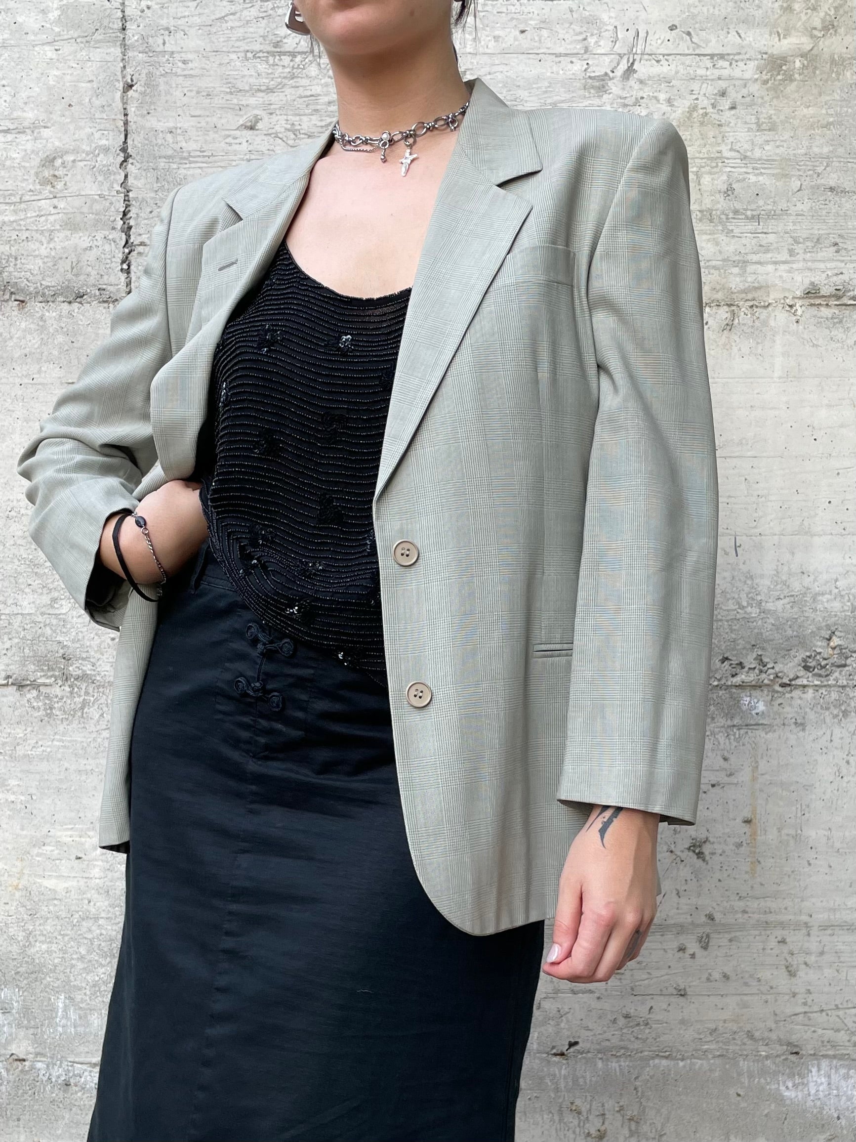 Blazer monopetto sartoriale Made in Italy madras verde muschio e panna.