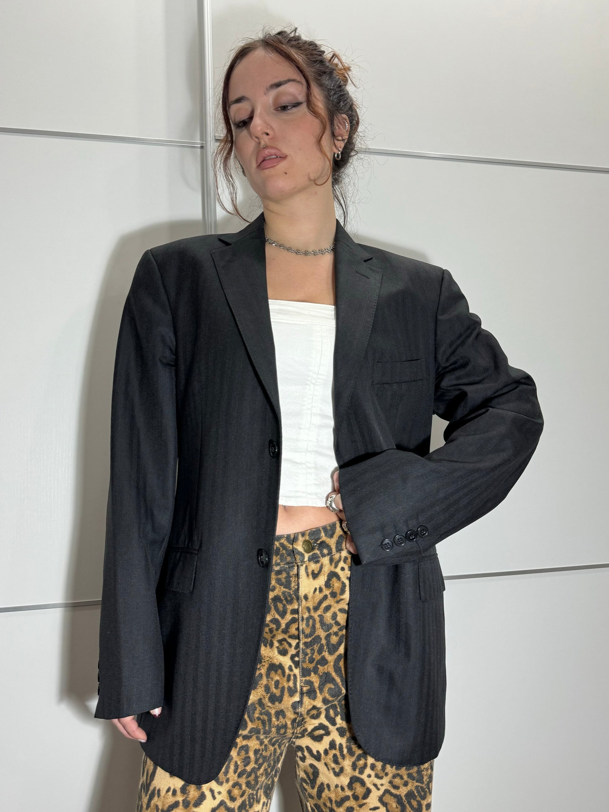 Blazer sartoriale oversize nero gessato, 100% lana