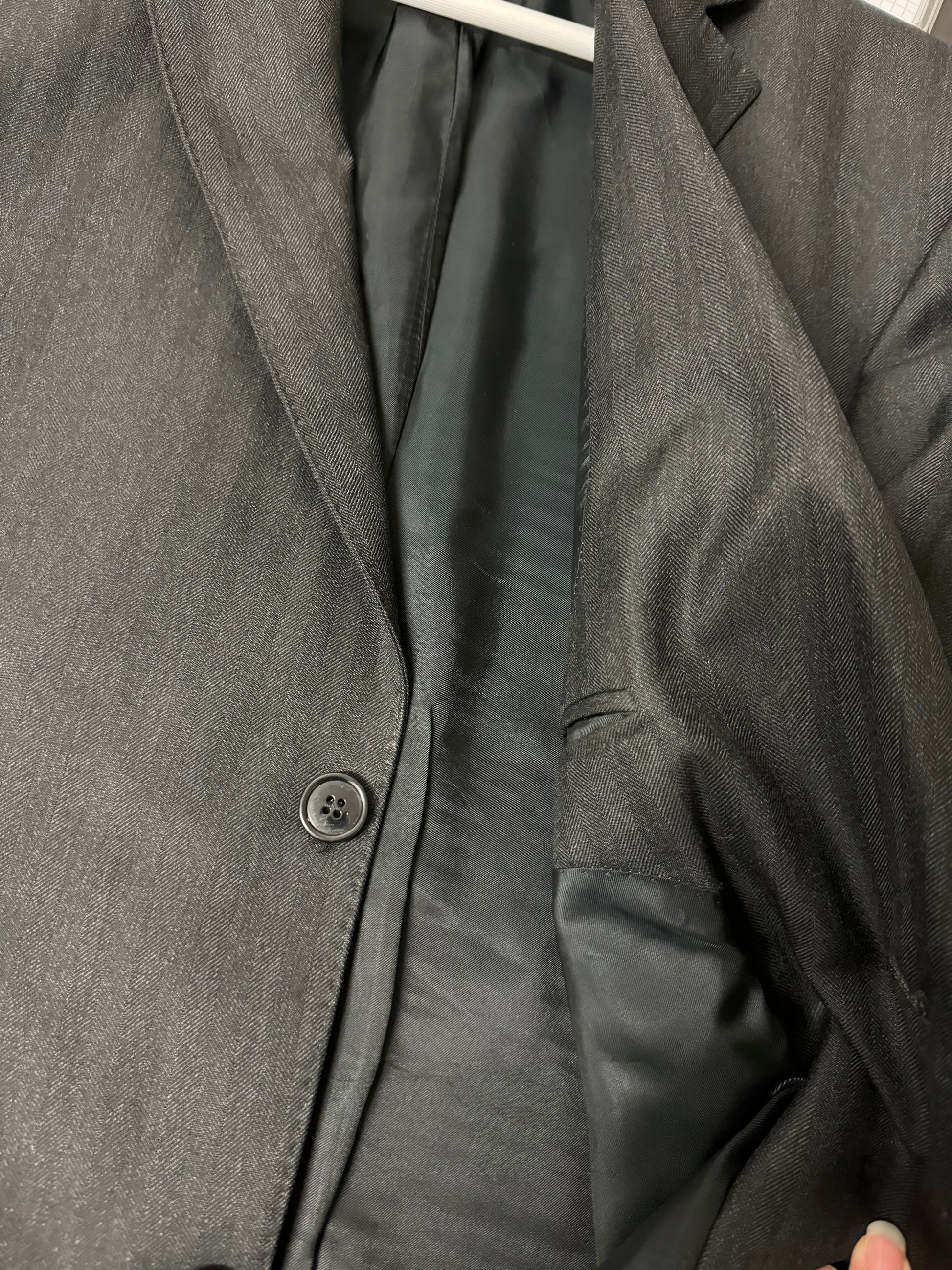 Blazer monopetto maschile sartoriale, nero, gessato.