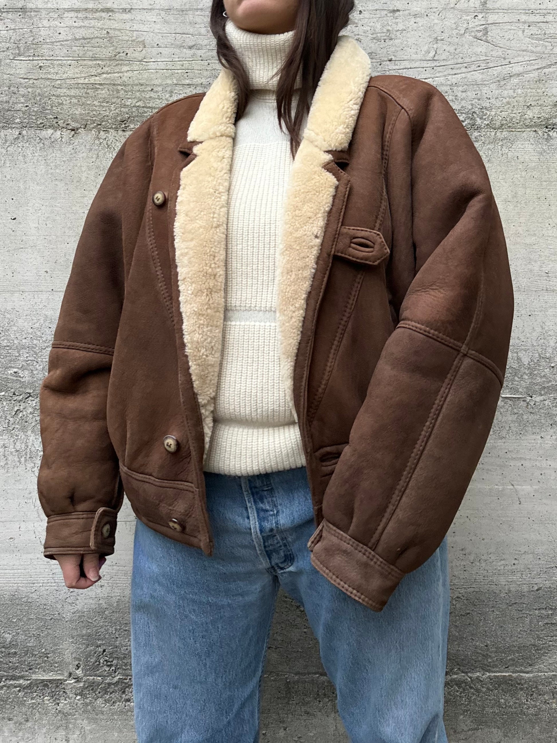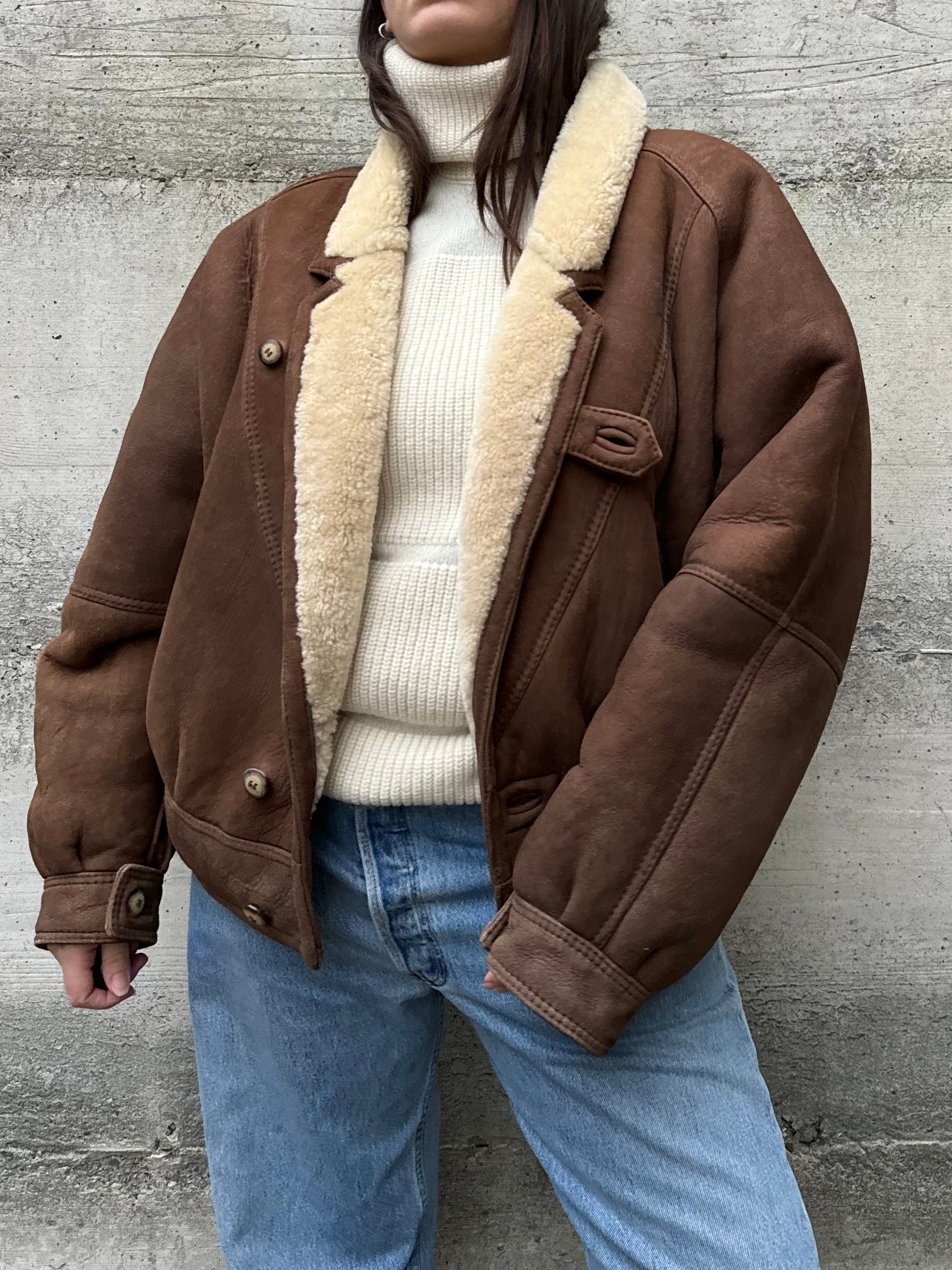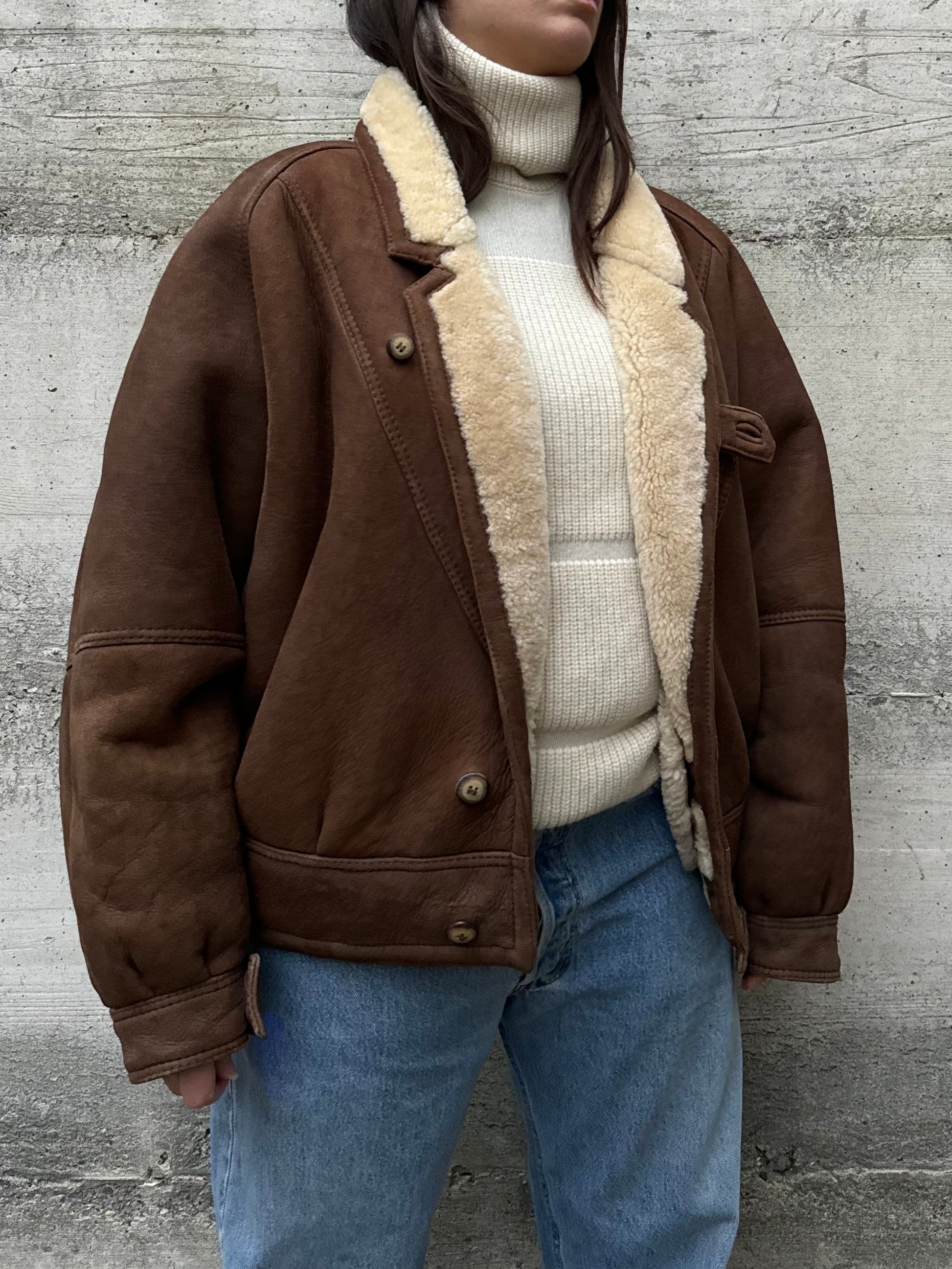 Bomber aviator Shearling marrone, taglia 48it uomo (S/M)