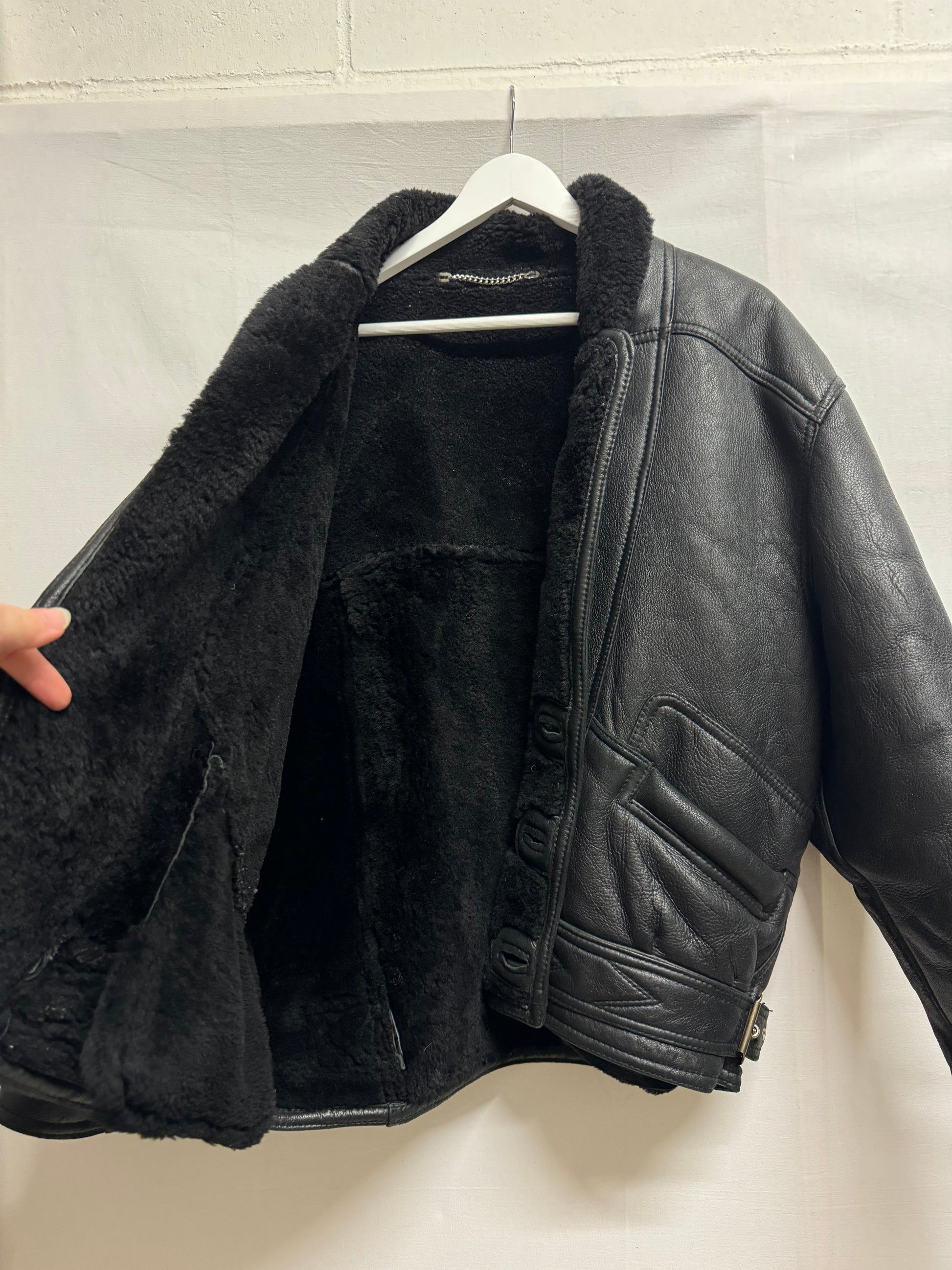 Montone originale Shearling modello bomber, esterno in pelle e interno a pelo raso.
