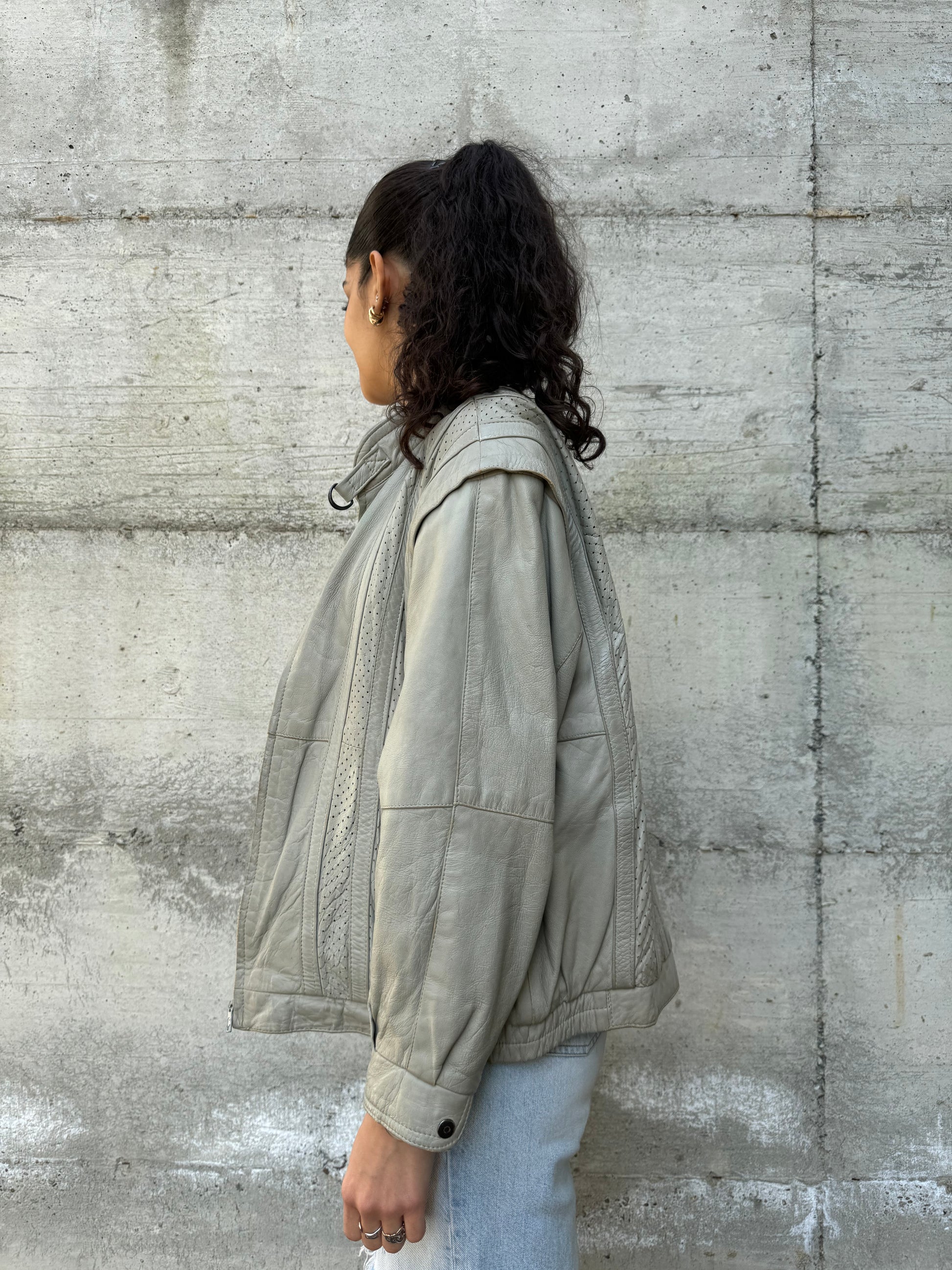 Bomberino in vera pelle color ghiaccio / sabbia.