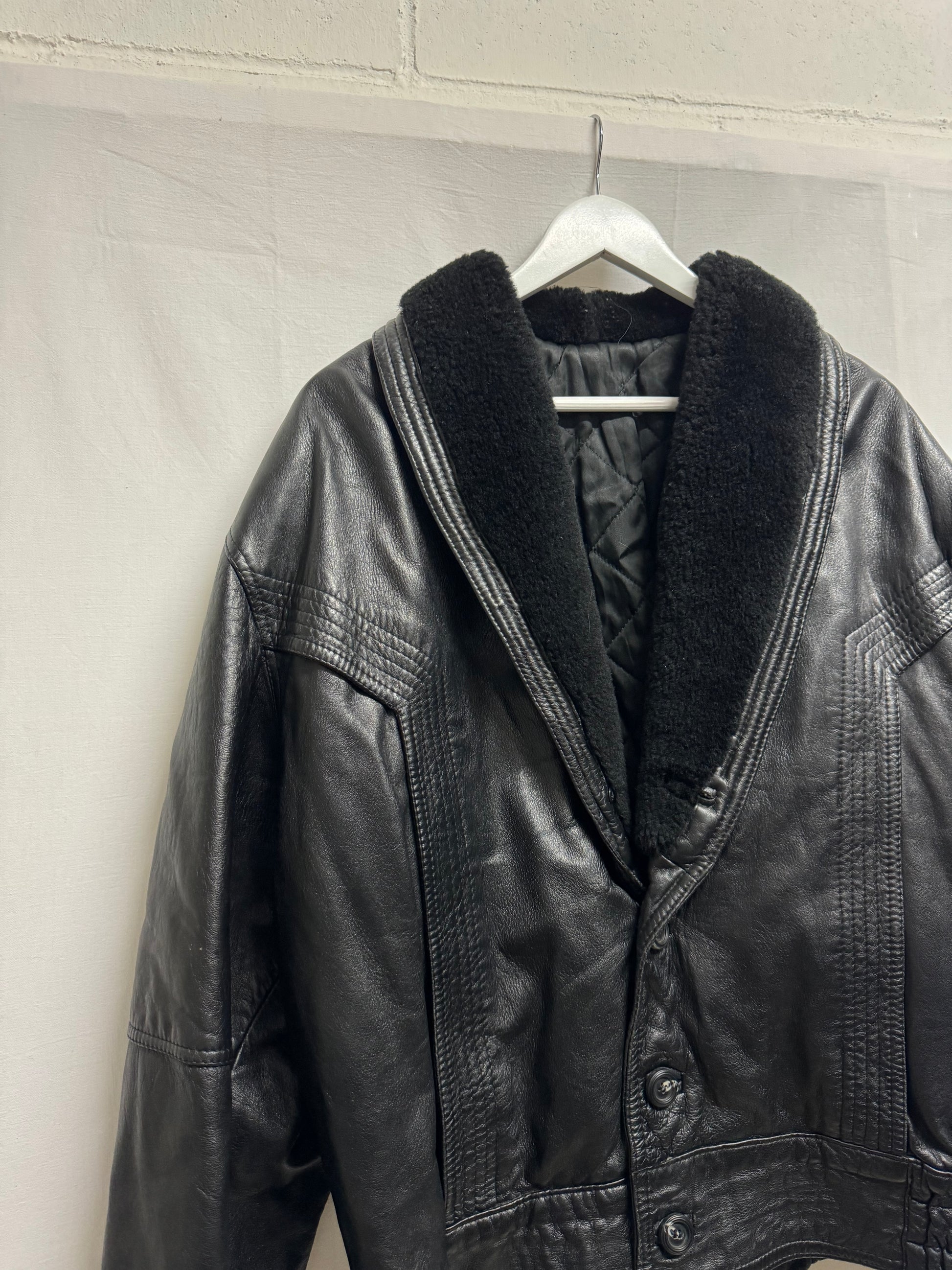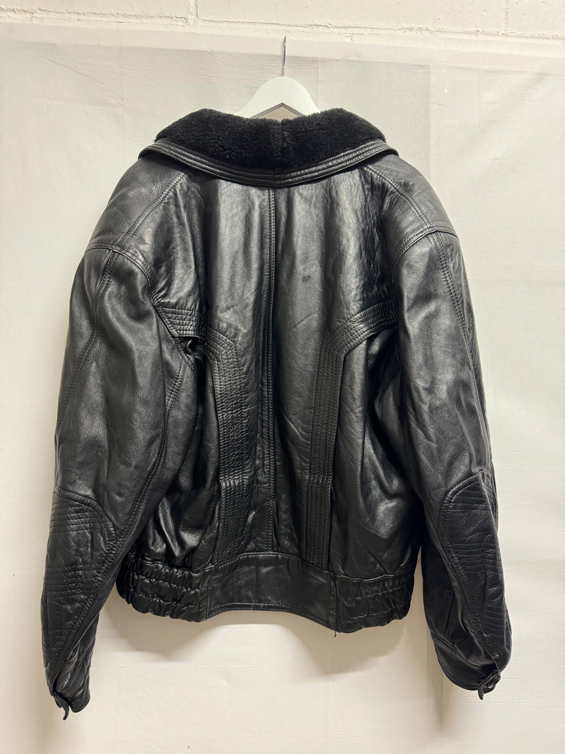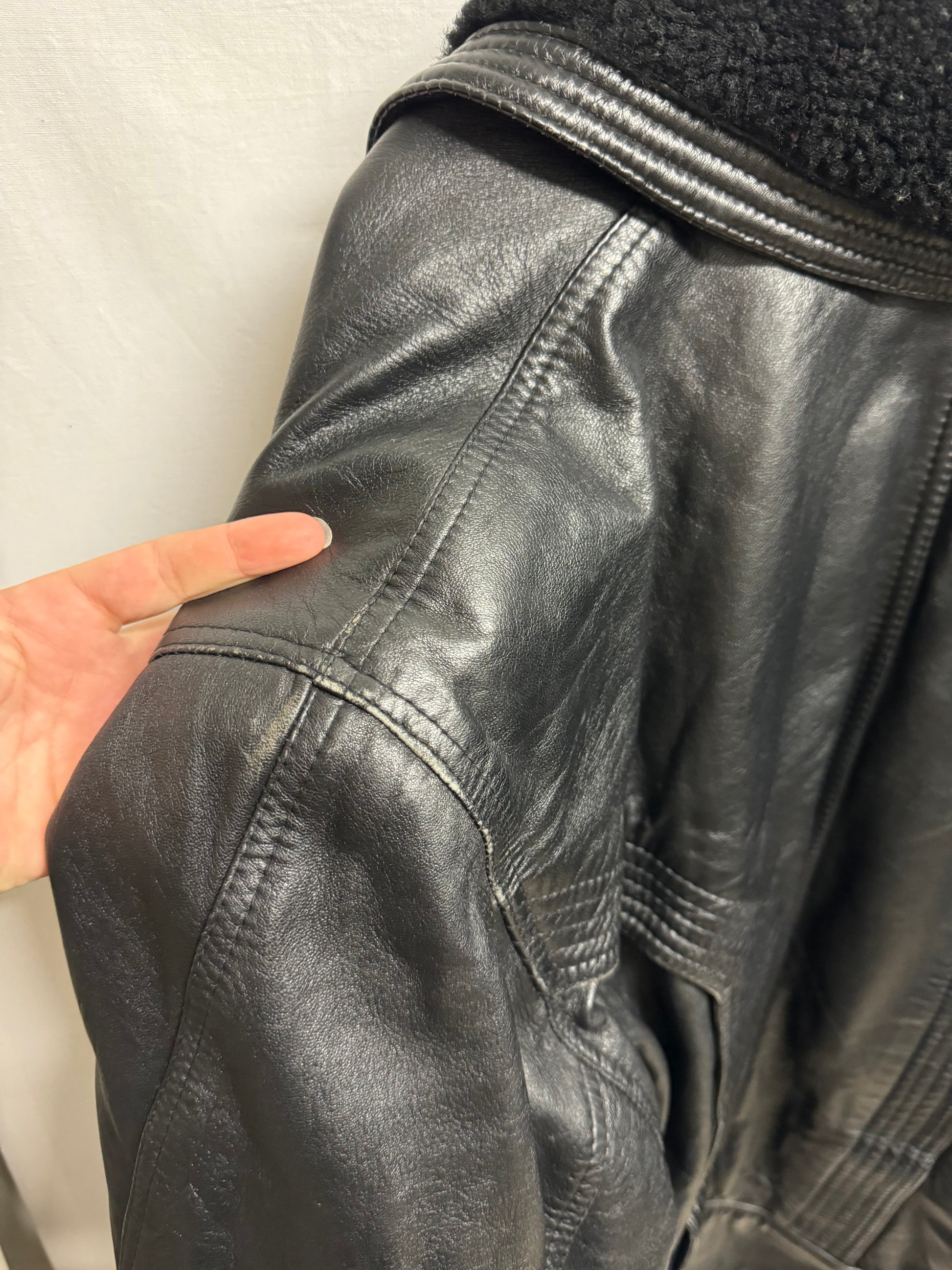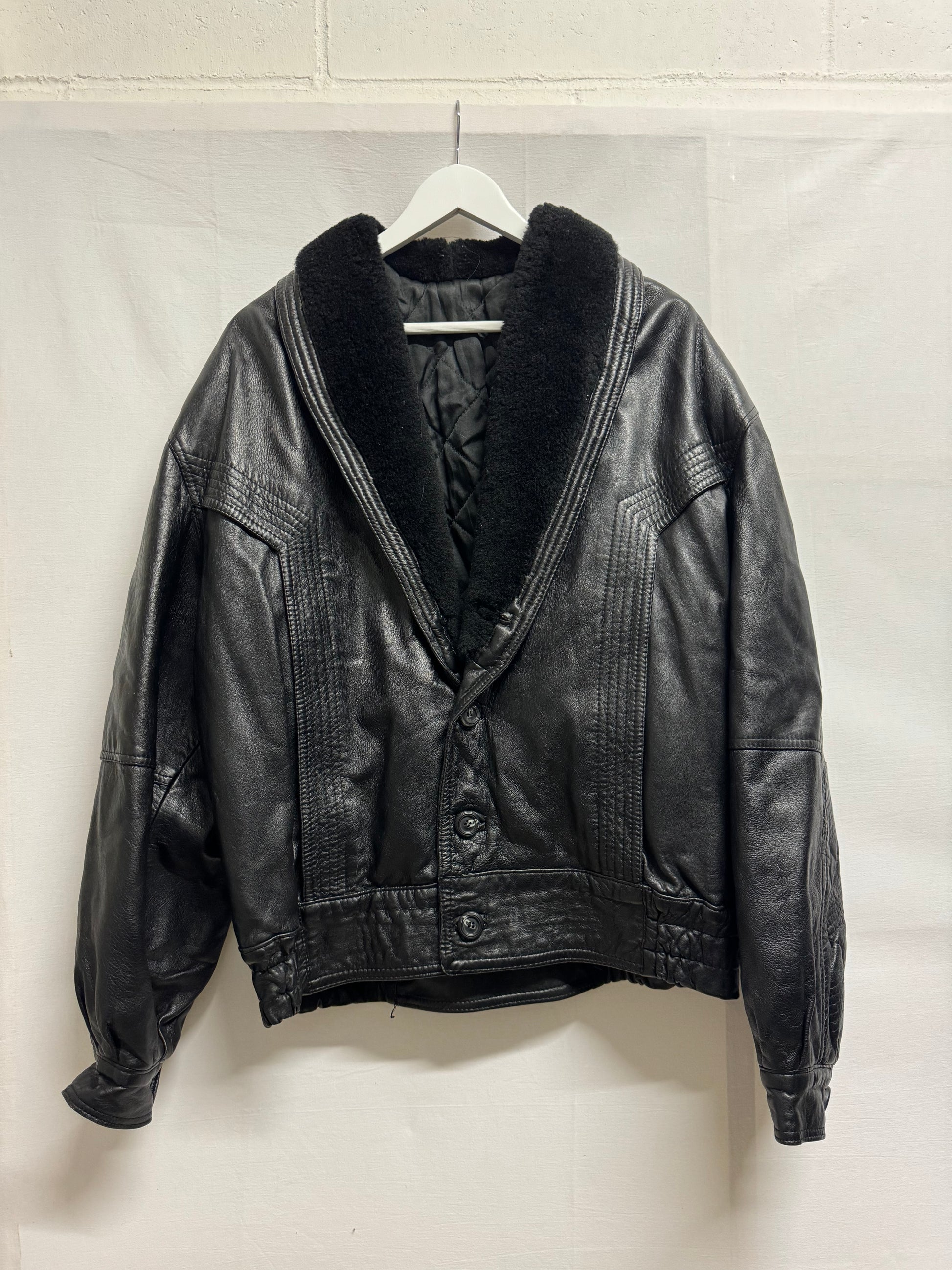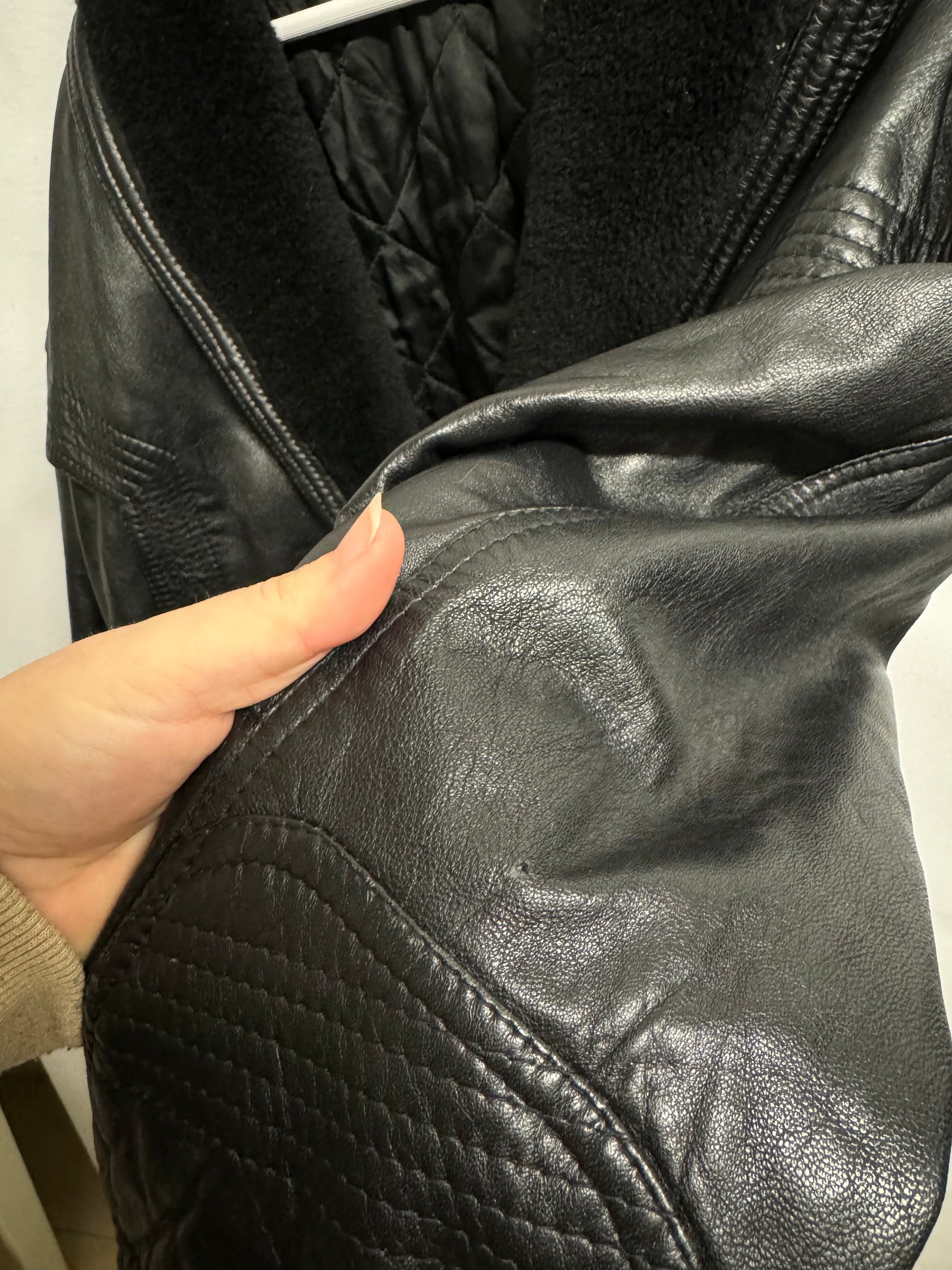 Bomber in vera pelle trapuntato con rever in montone, taglia 48it uomo