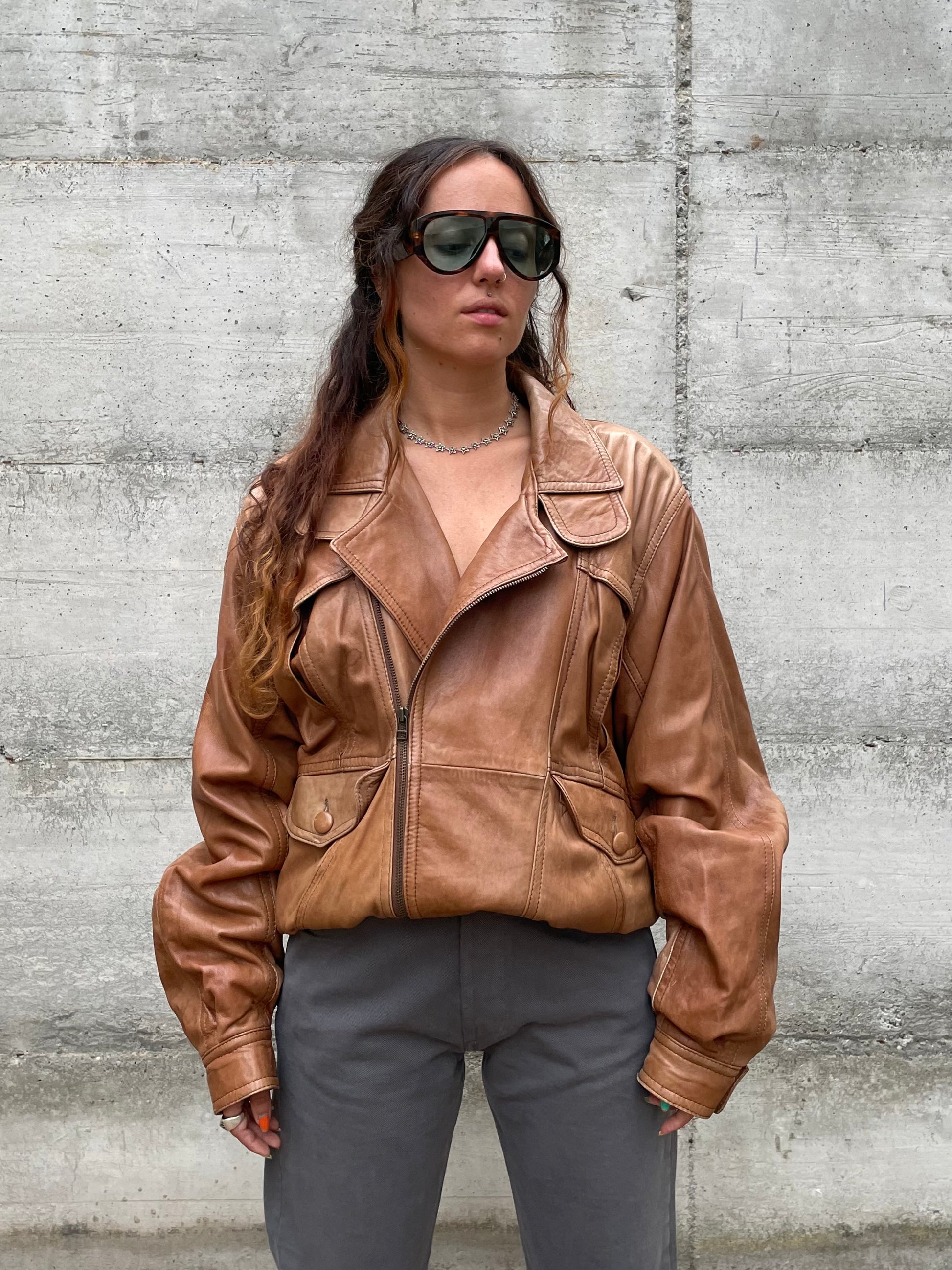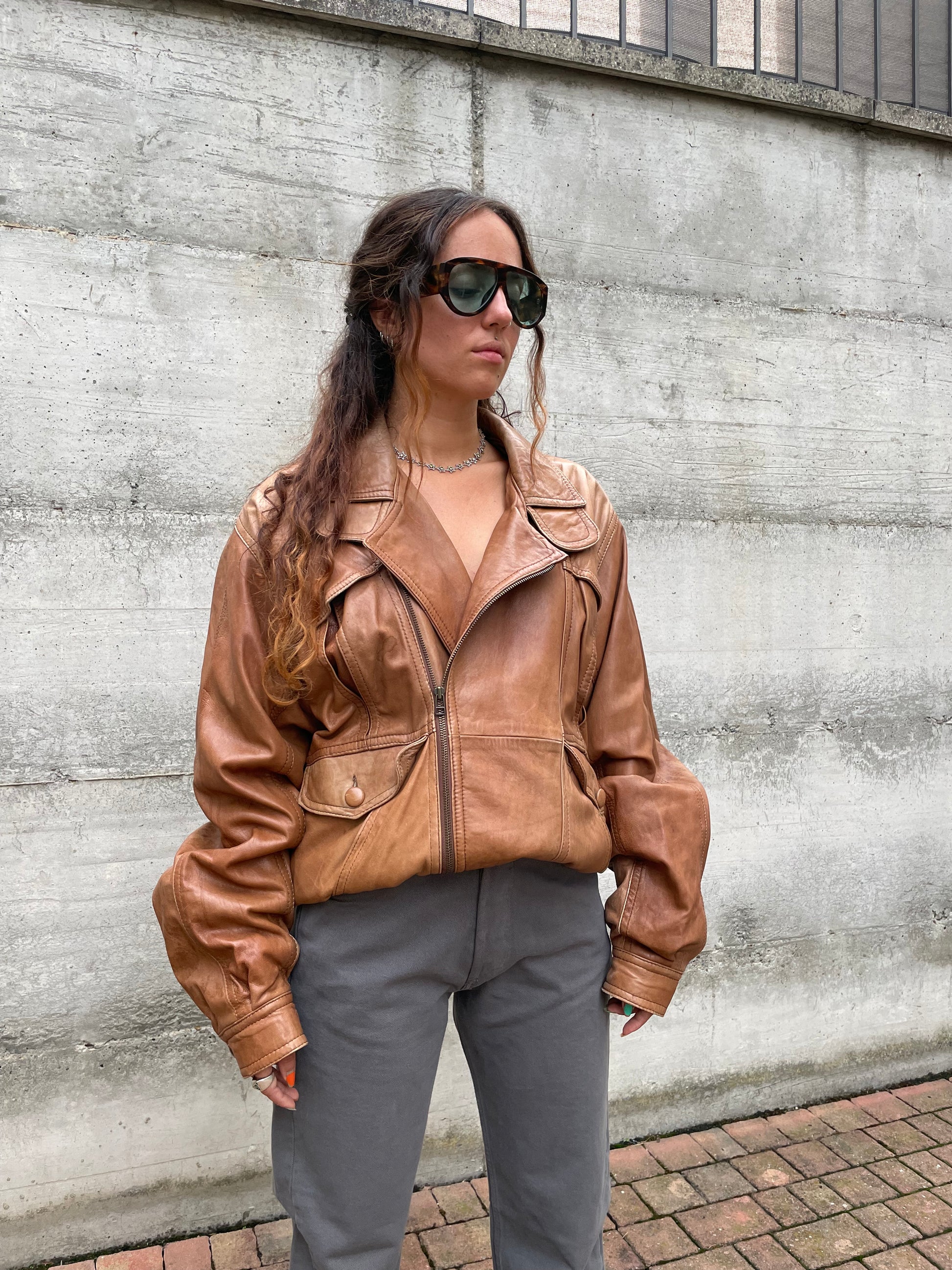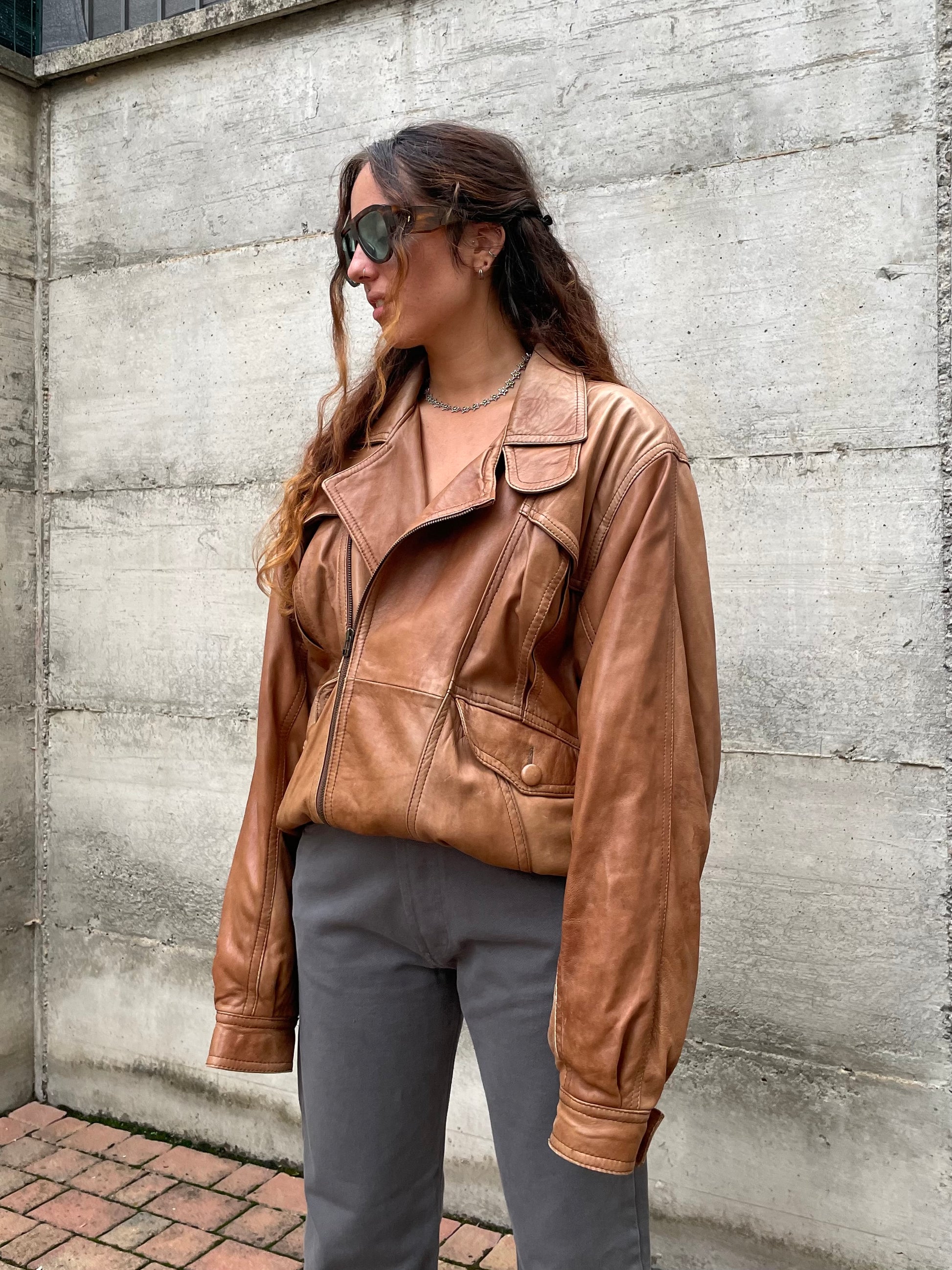 Bomber in nappa morbidissima color ruggine, foderato e leggermente imbottito.