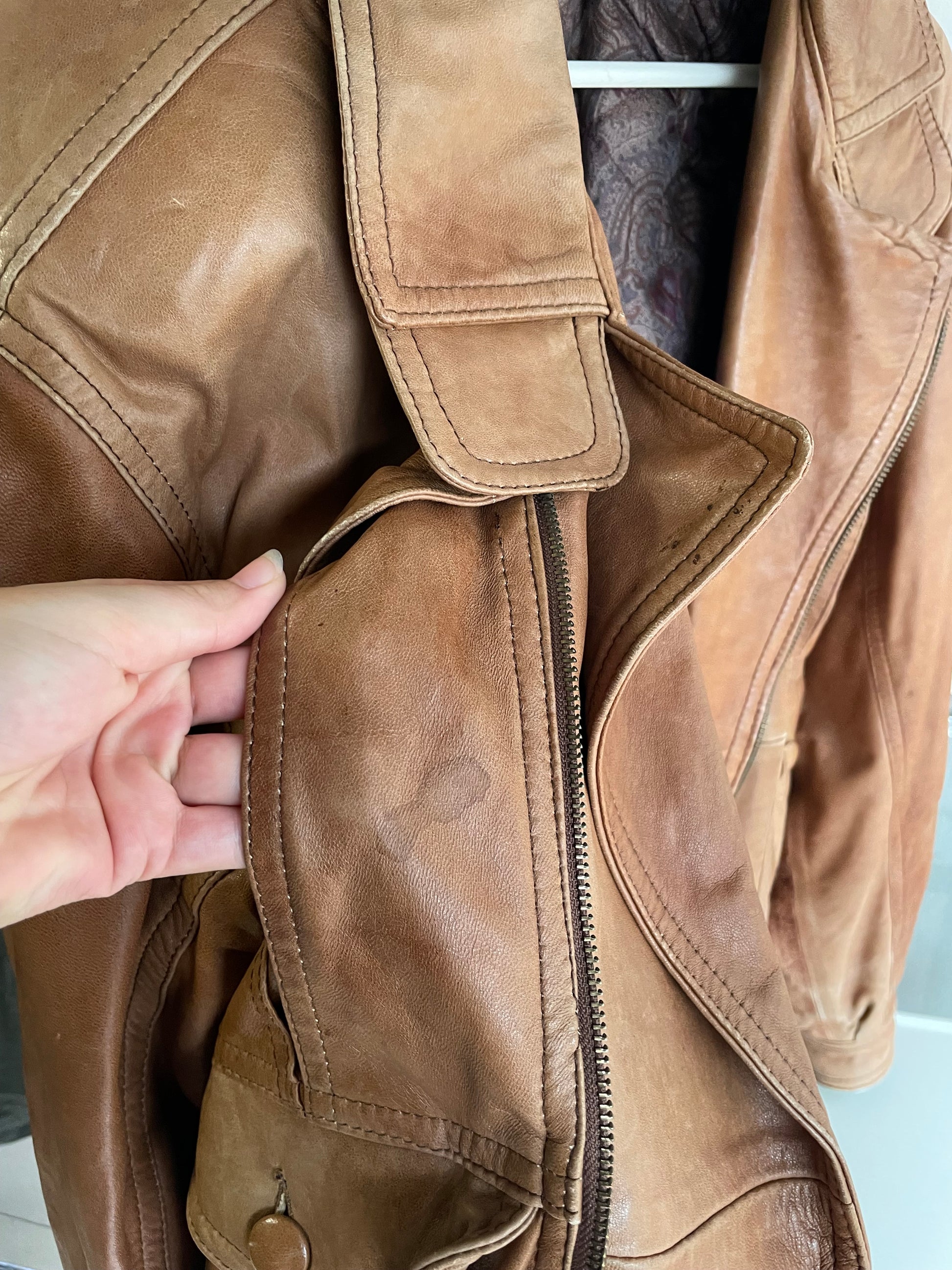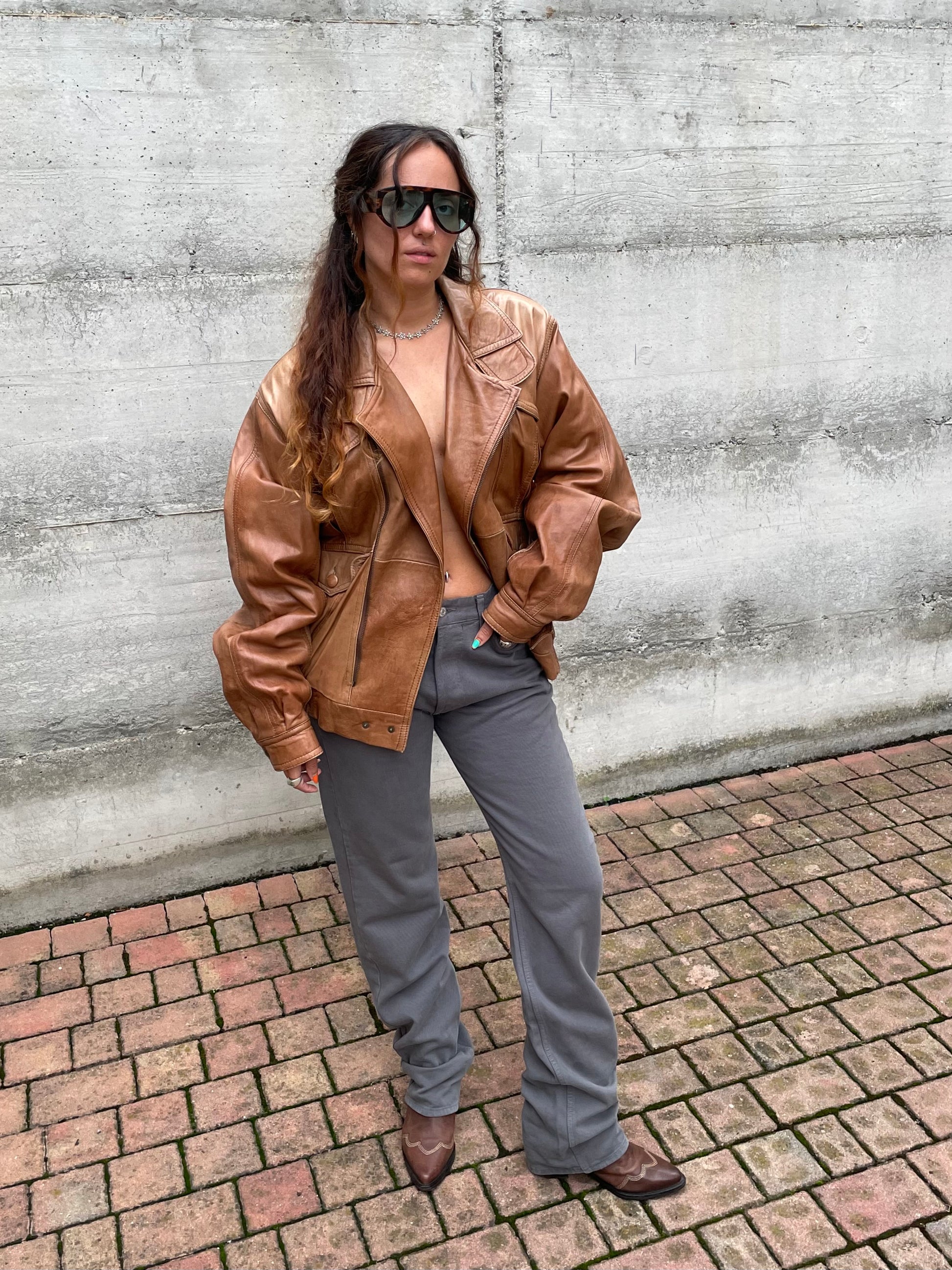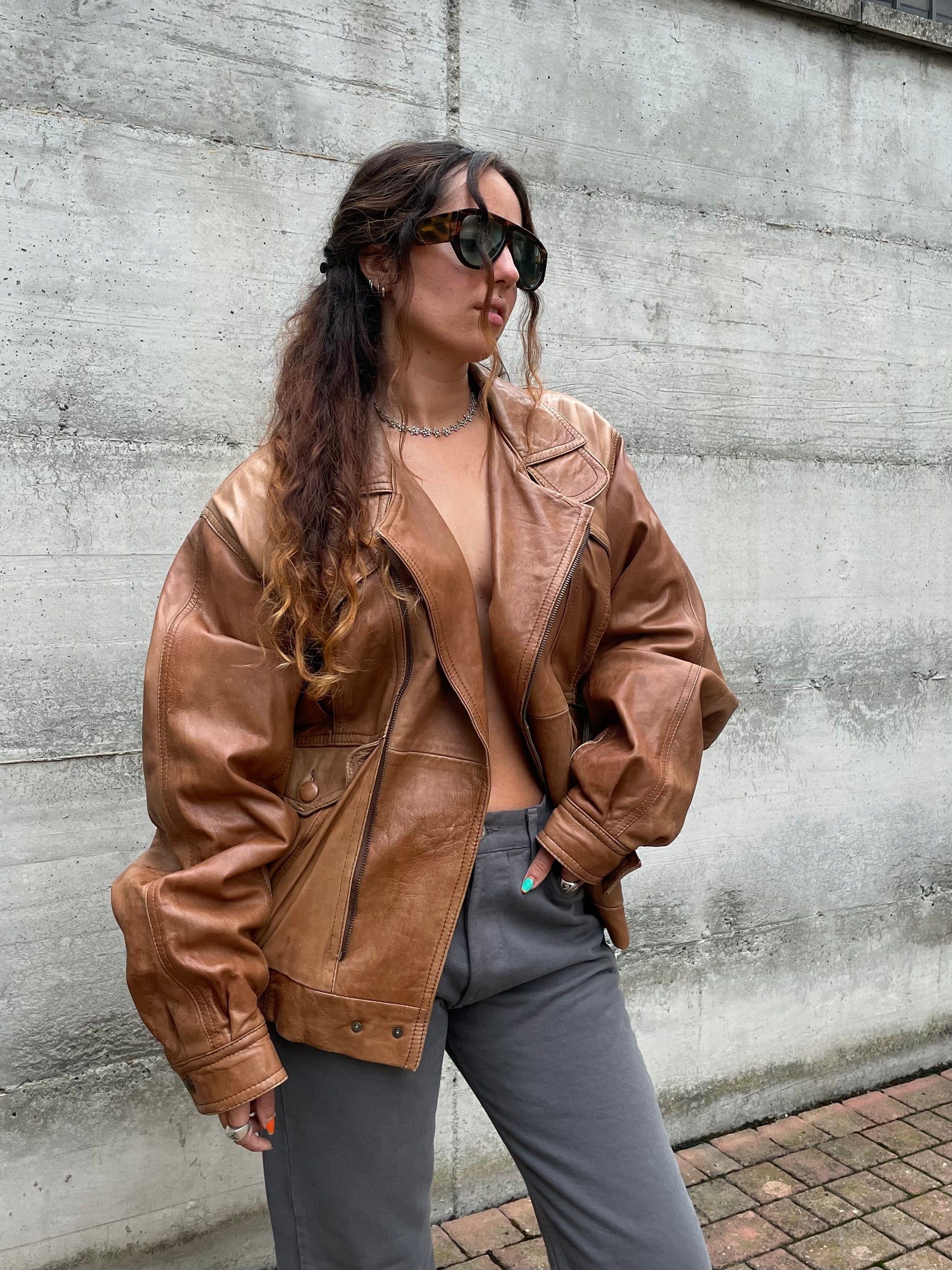 Bomber in nappa morbidissima color ruggine, foderato e leggermente imbottito.