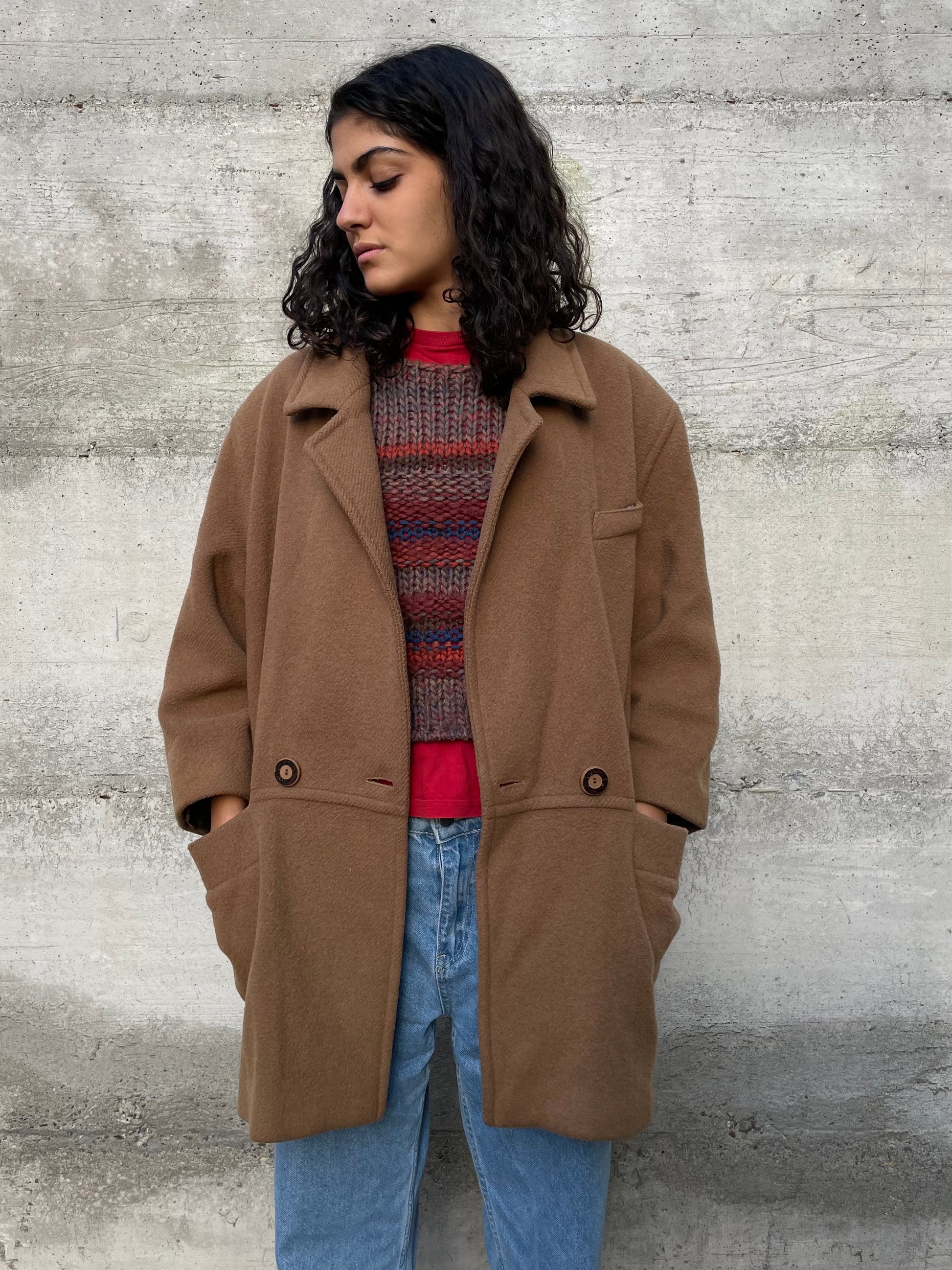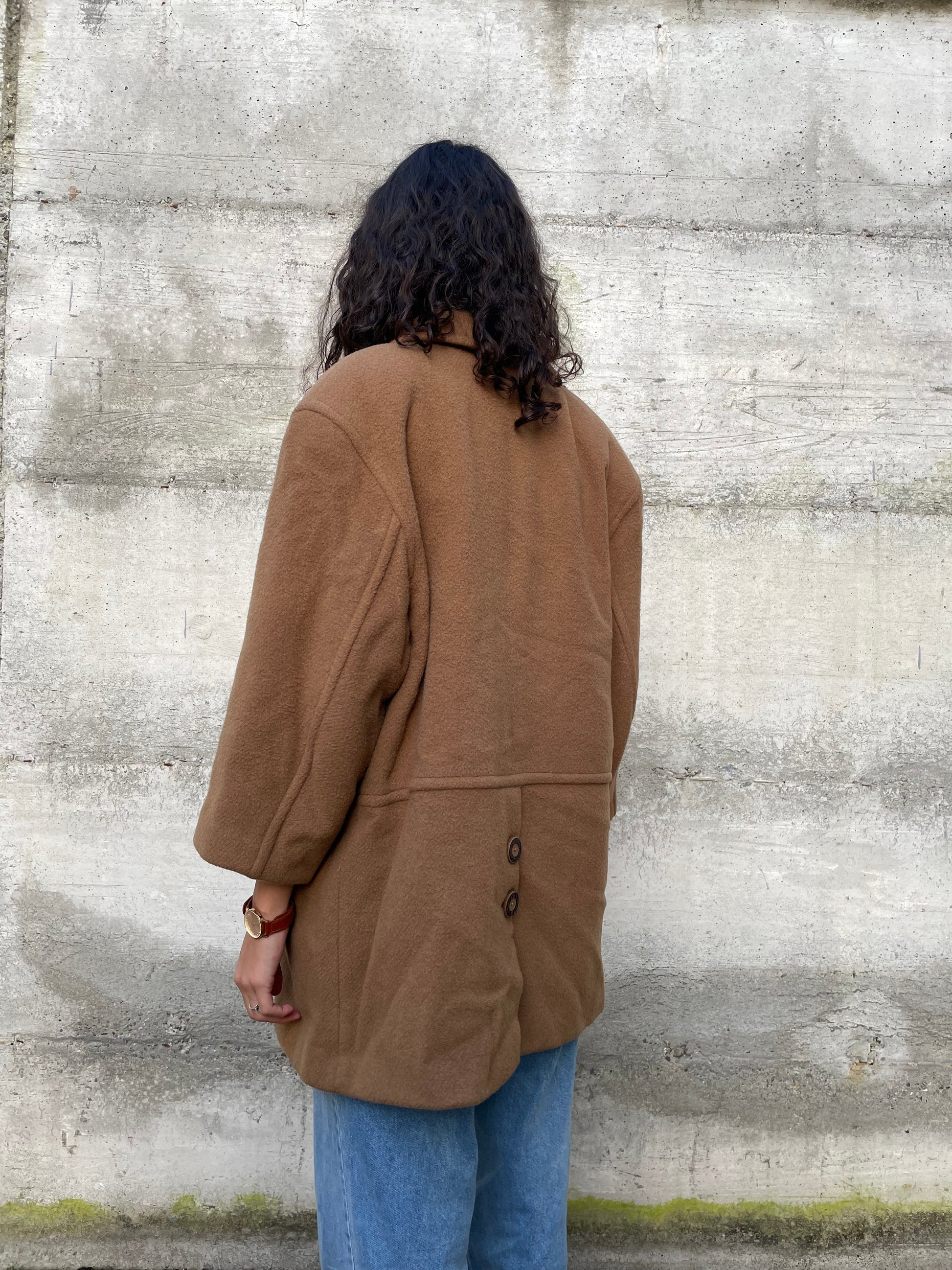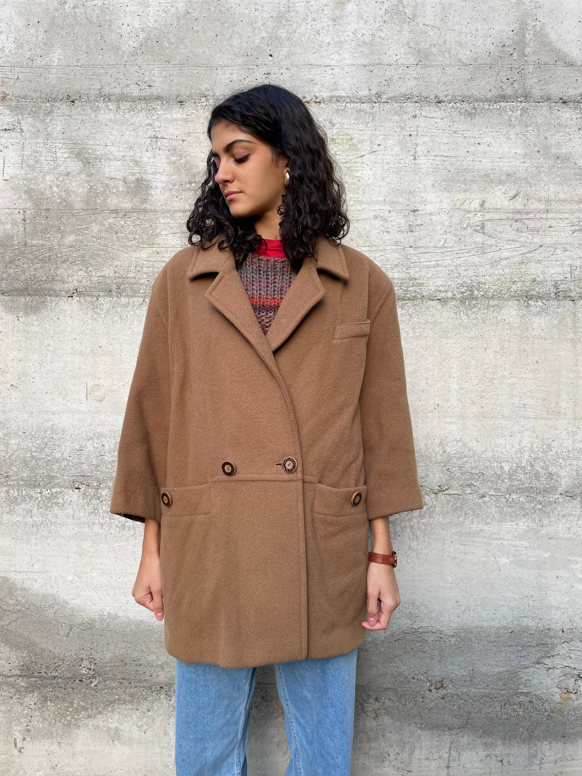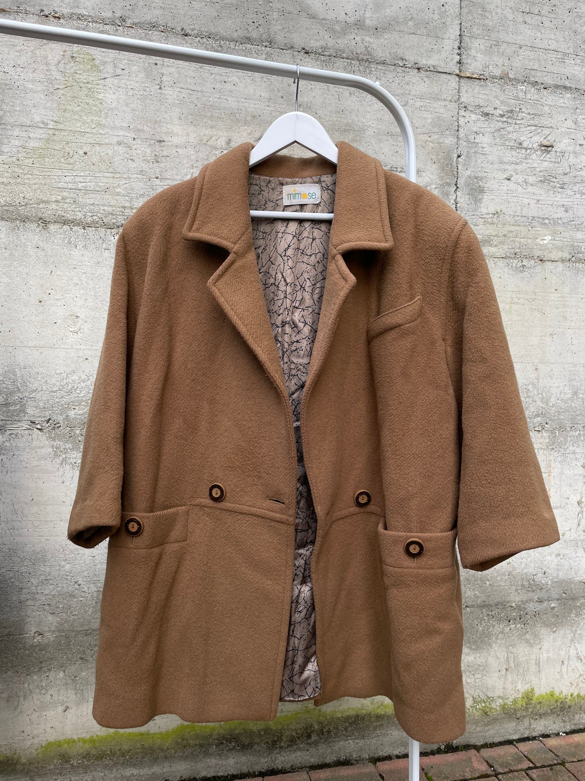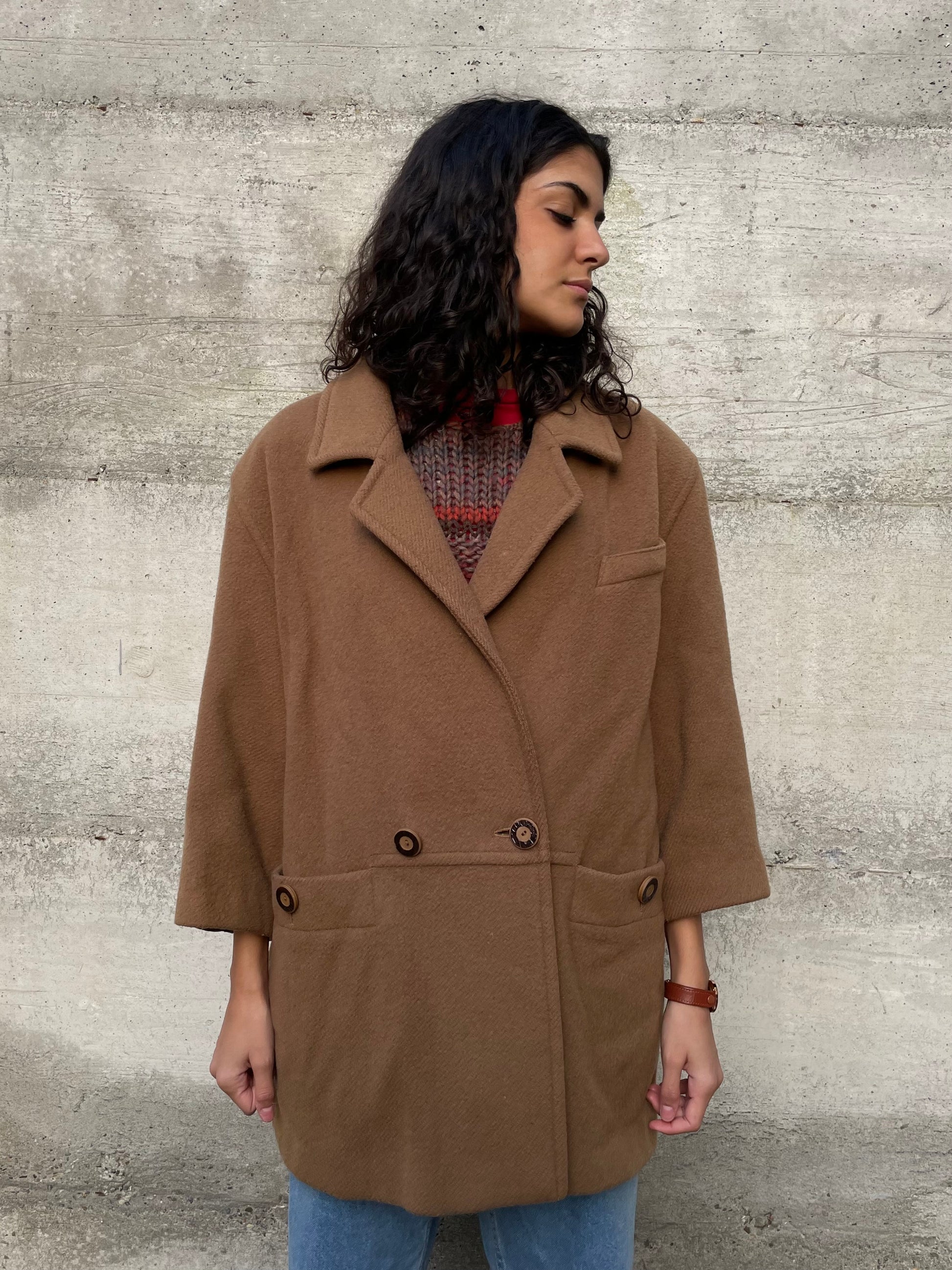 Cappottino biscotto 100% lana, doppiopetto, foderato, Made in Italy.