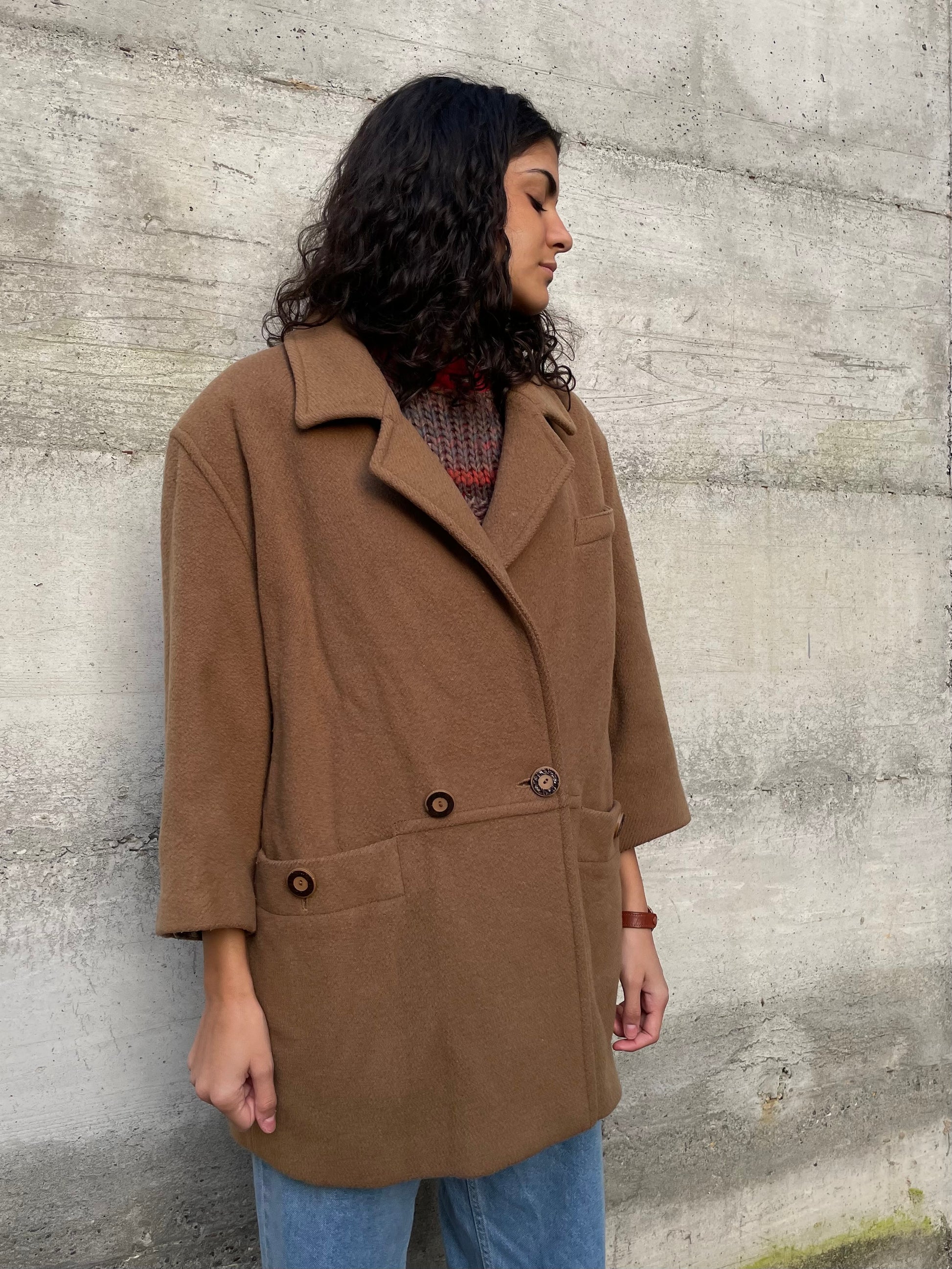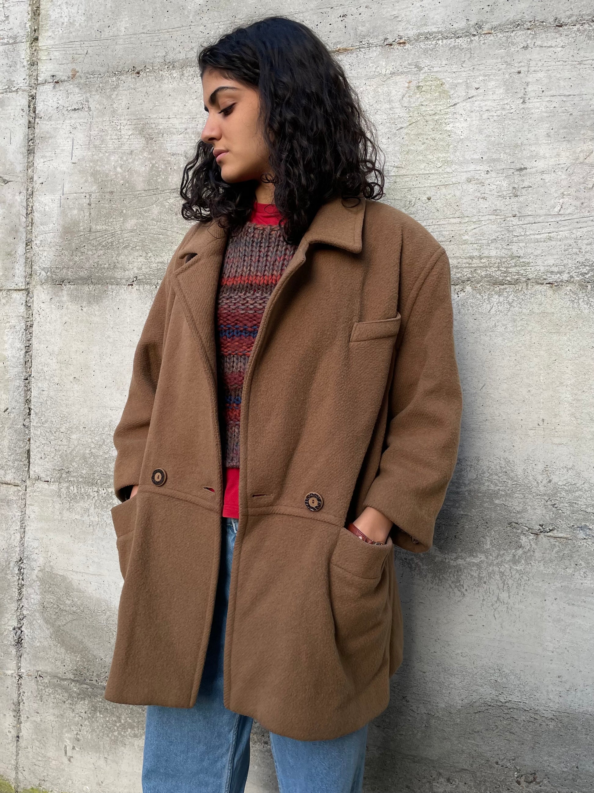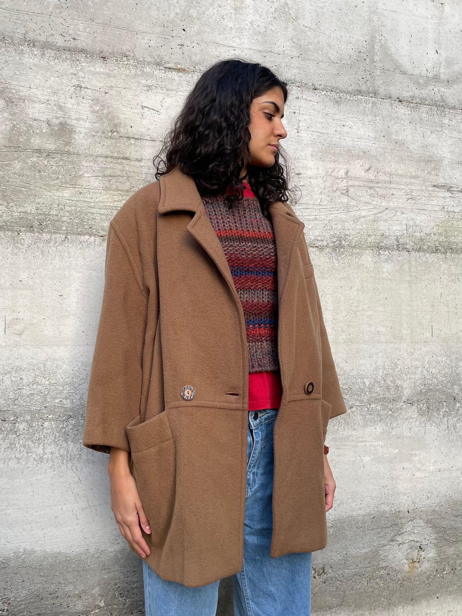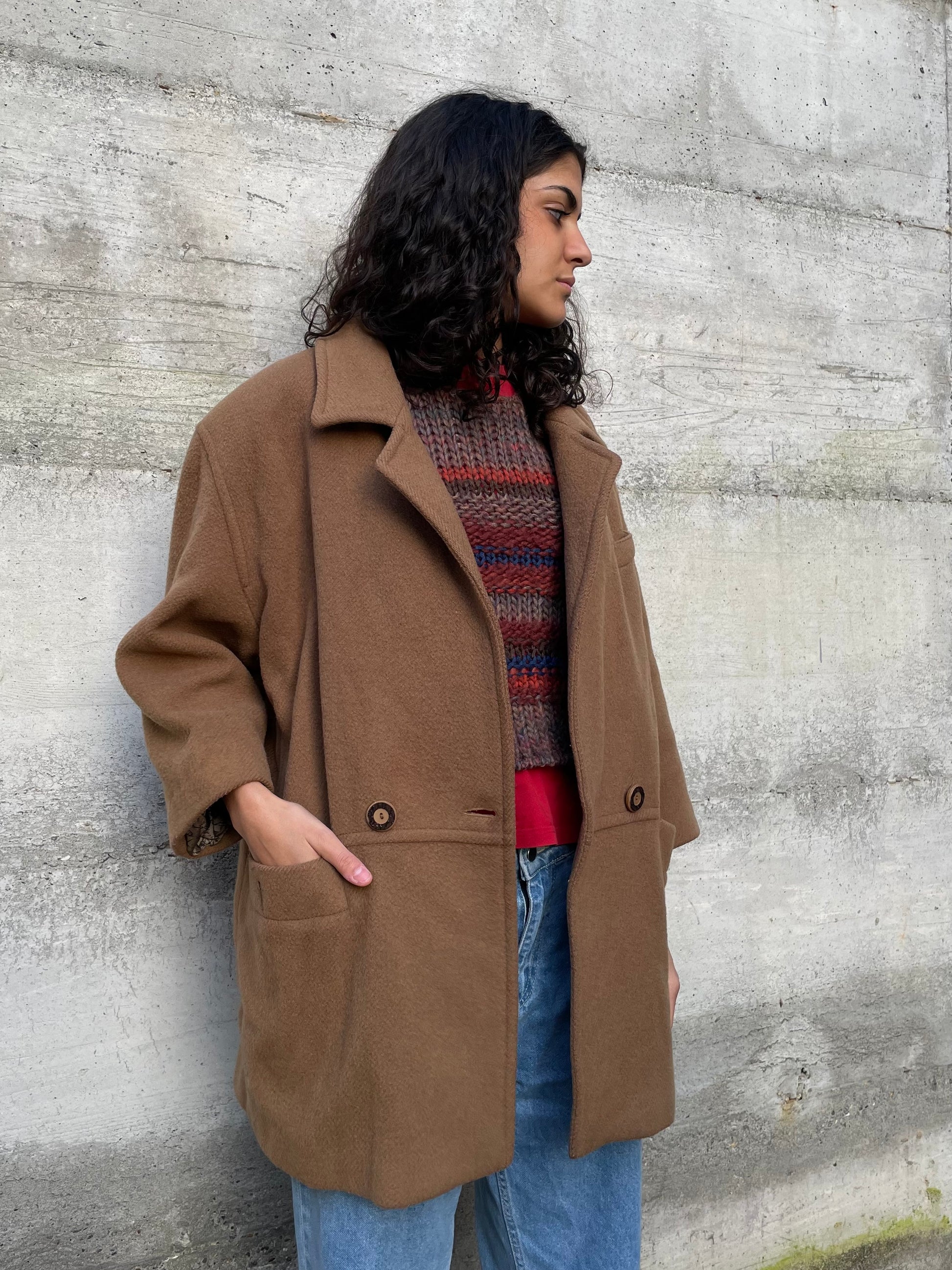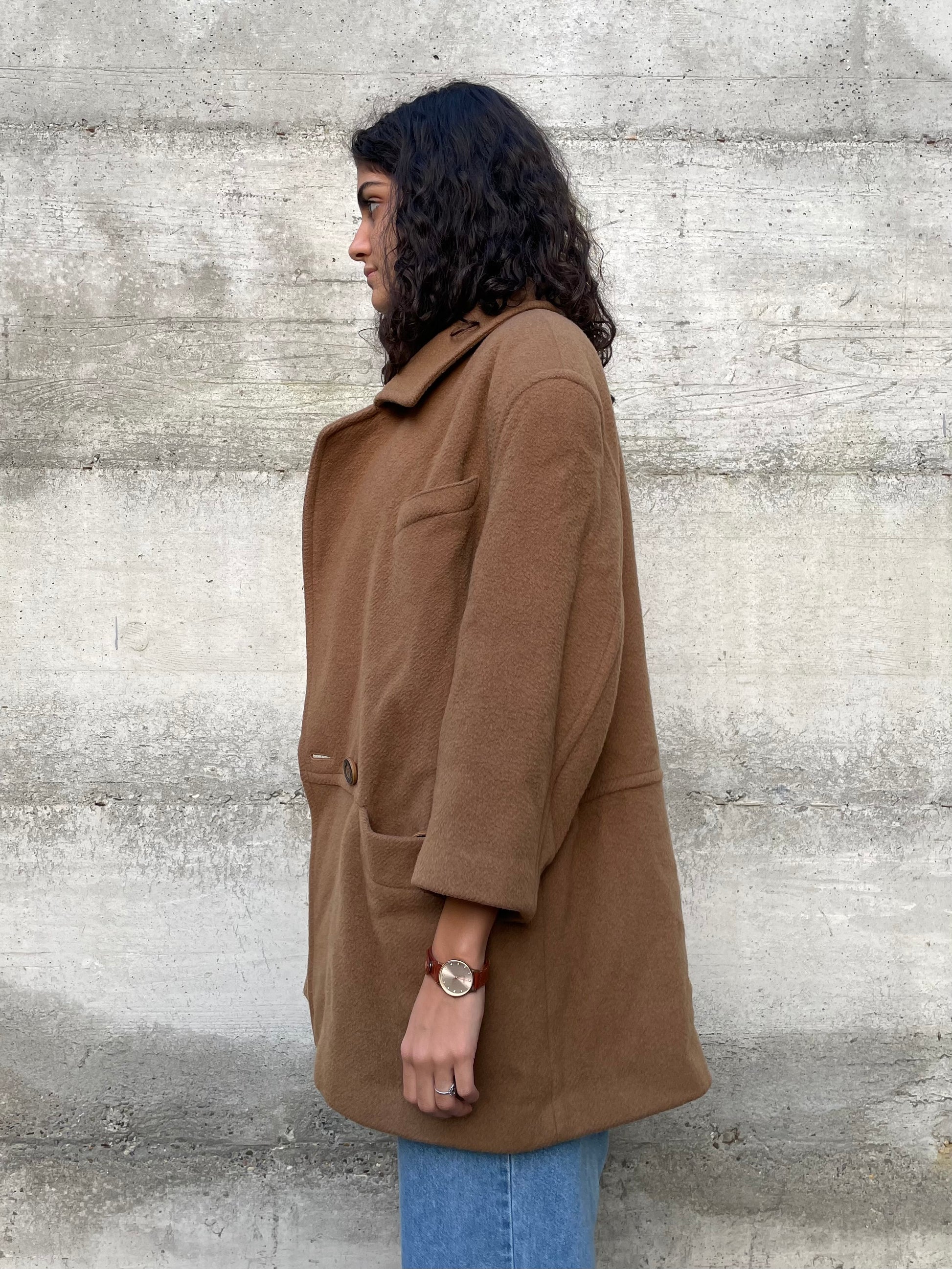 Cappottino biscotto 100% lana, doppiopetto, foderato, Made in Italy.