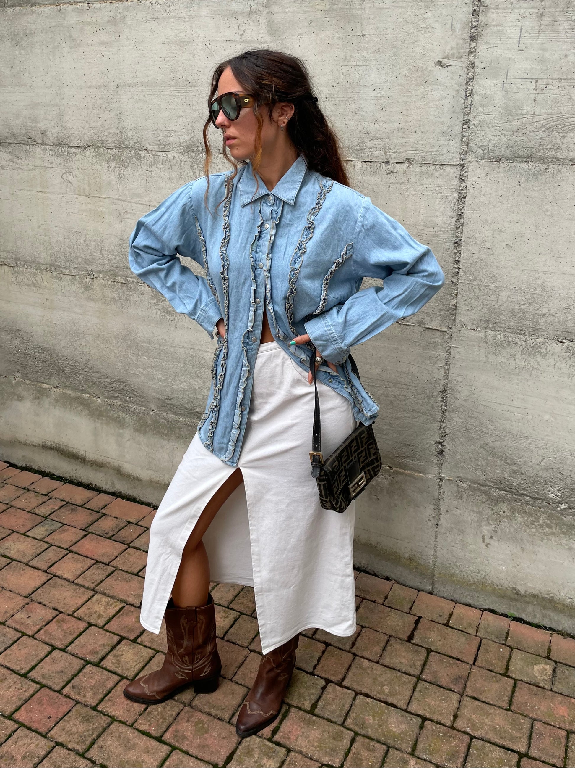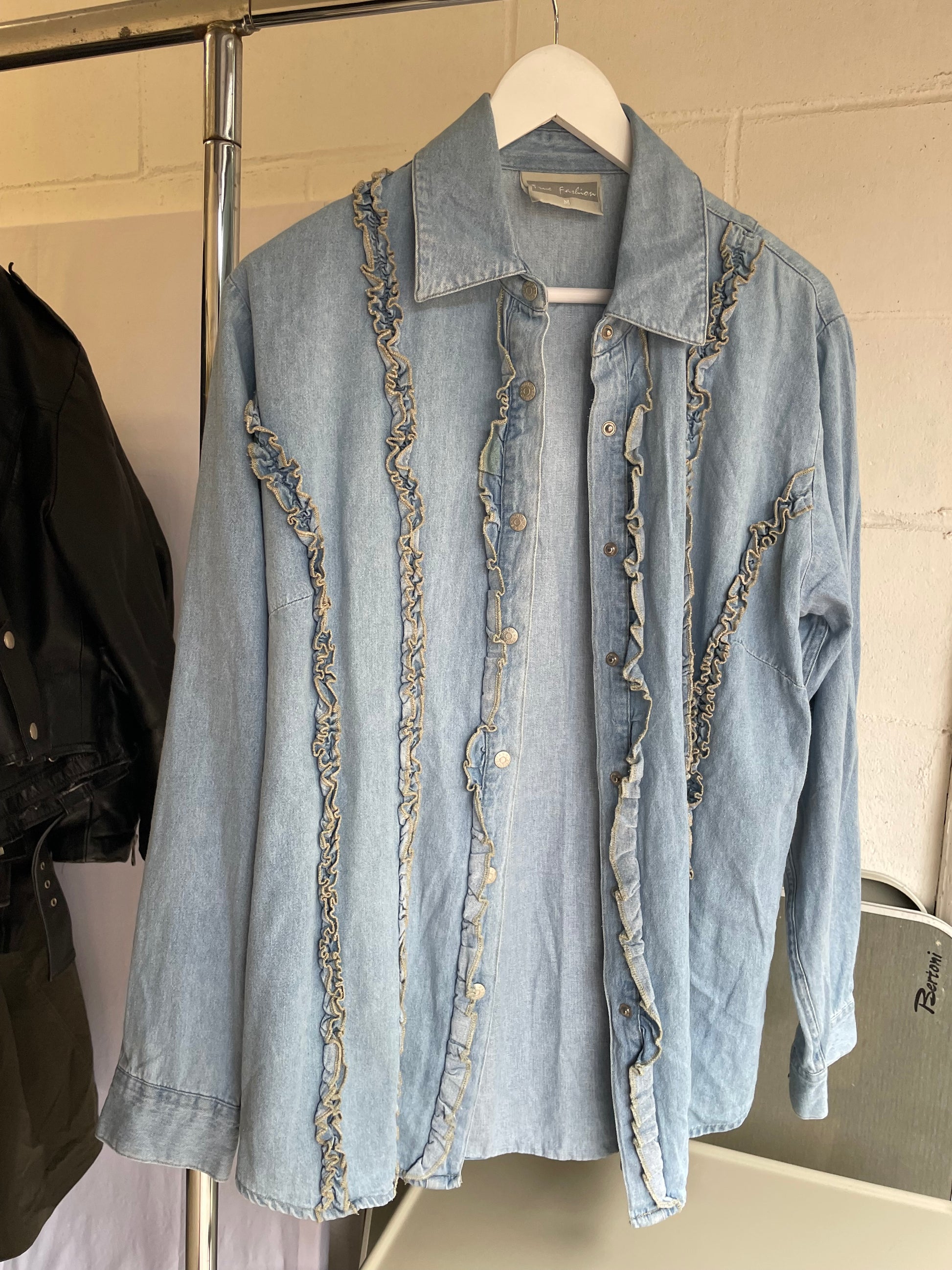 Camicia denim lavaggio chiaro, rouges frontali - taglia M