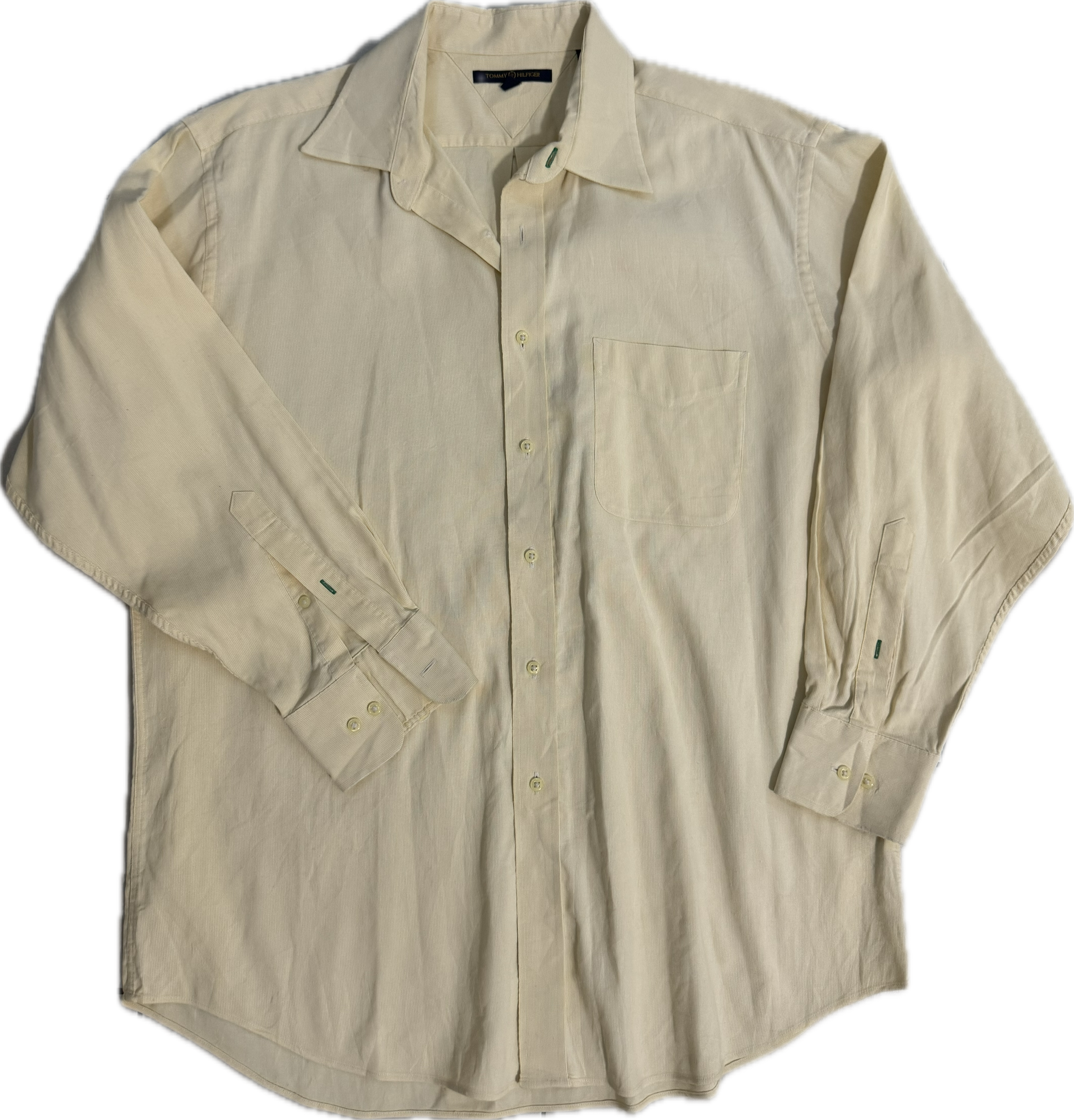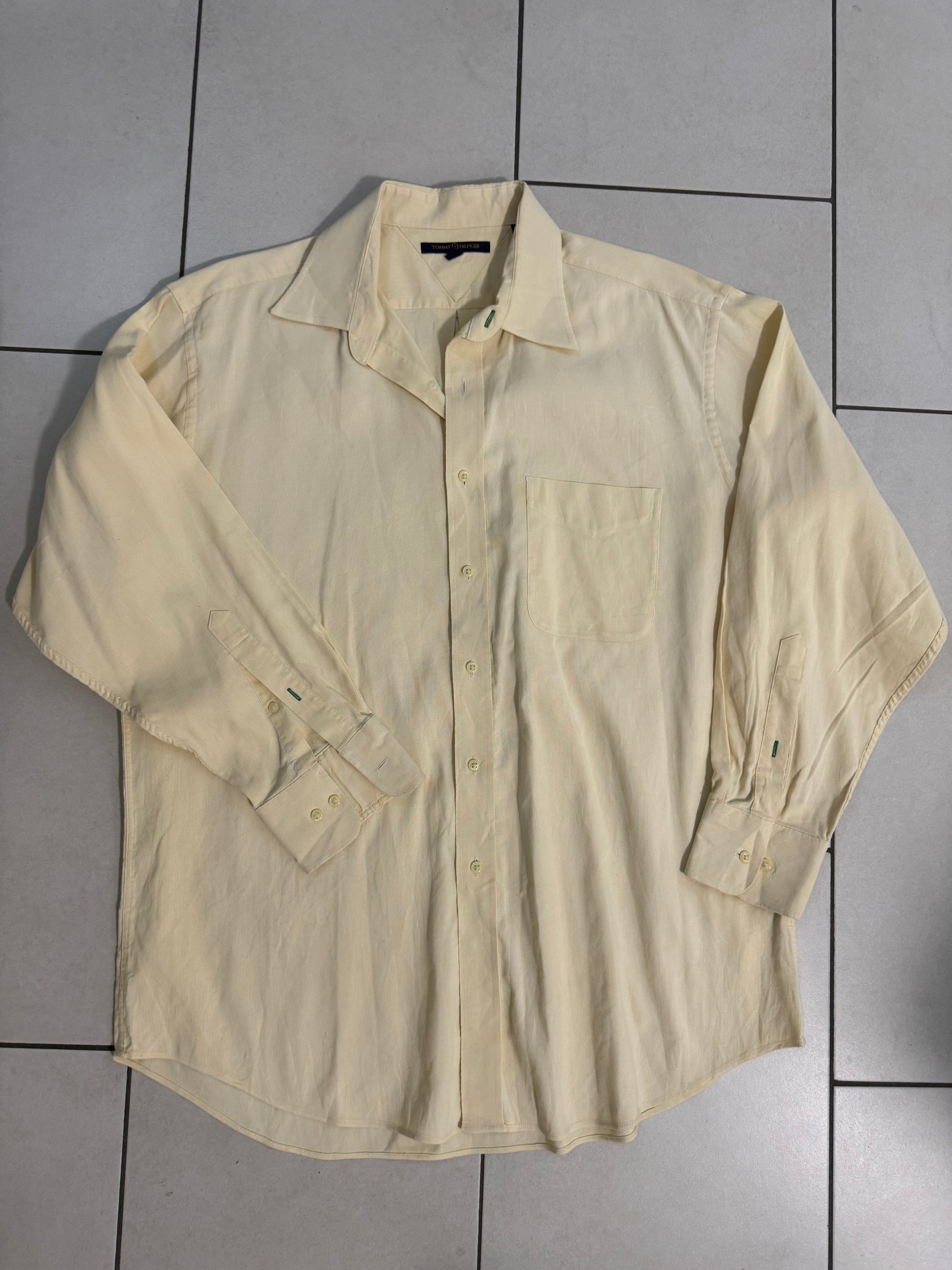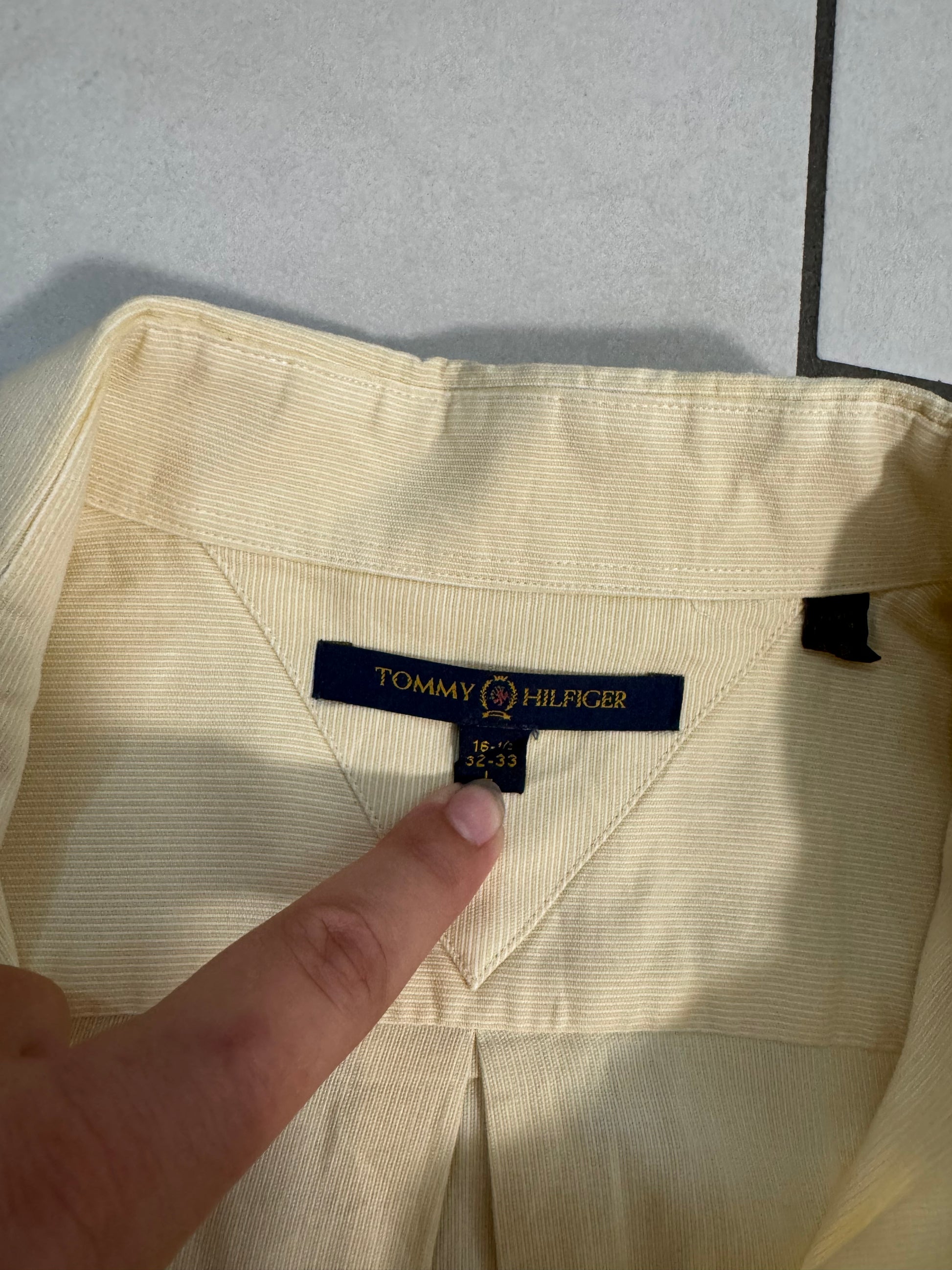Camicia Tommy Hilfiger a righina sottile bianca e gialla, taglia L