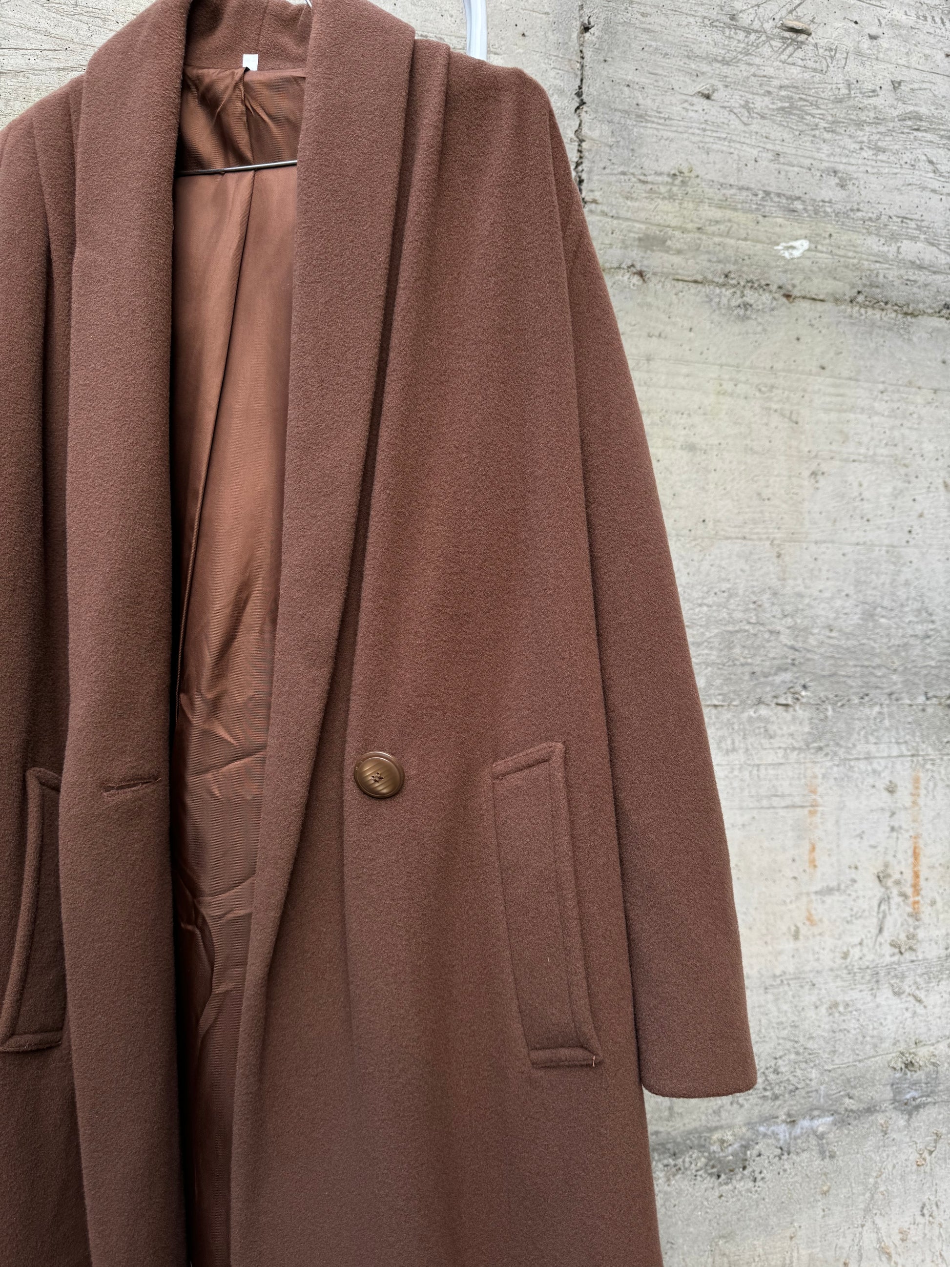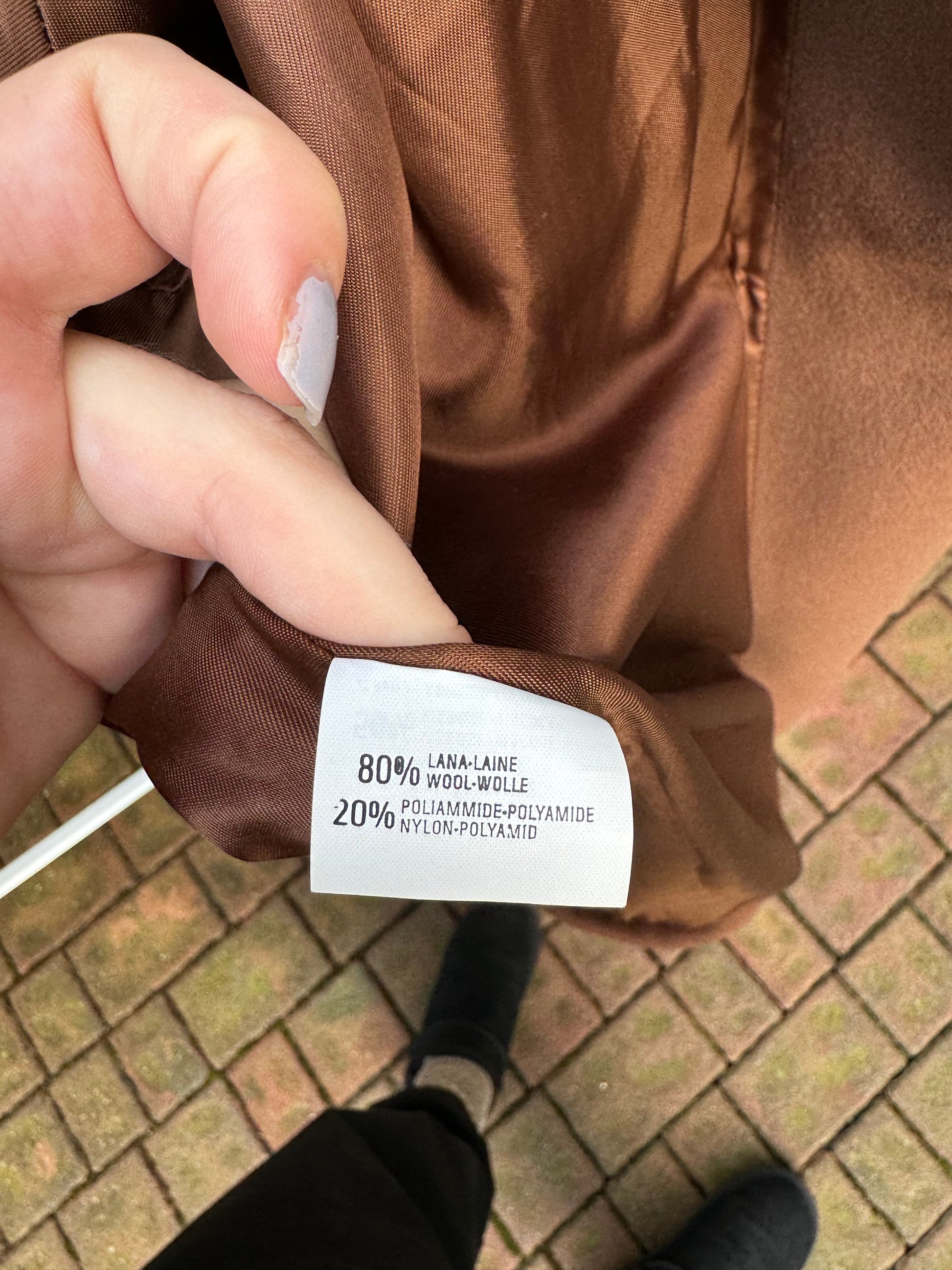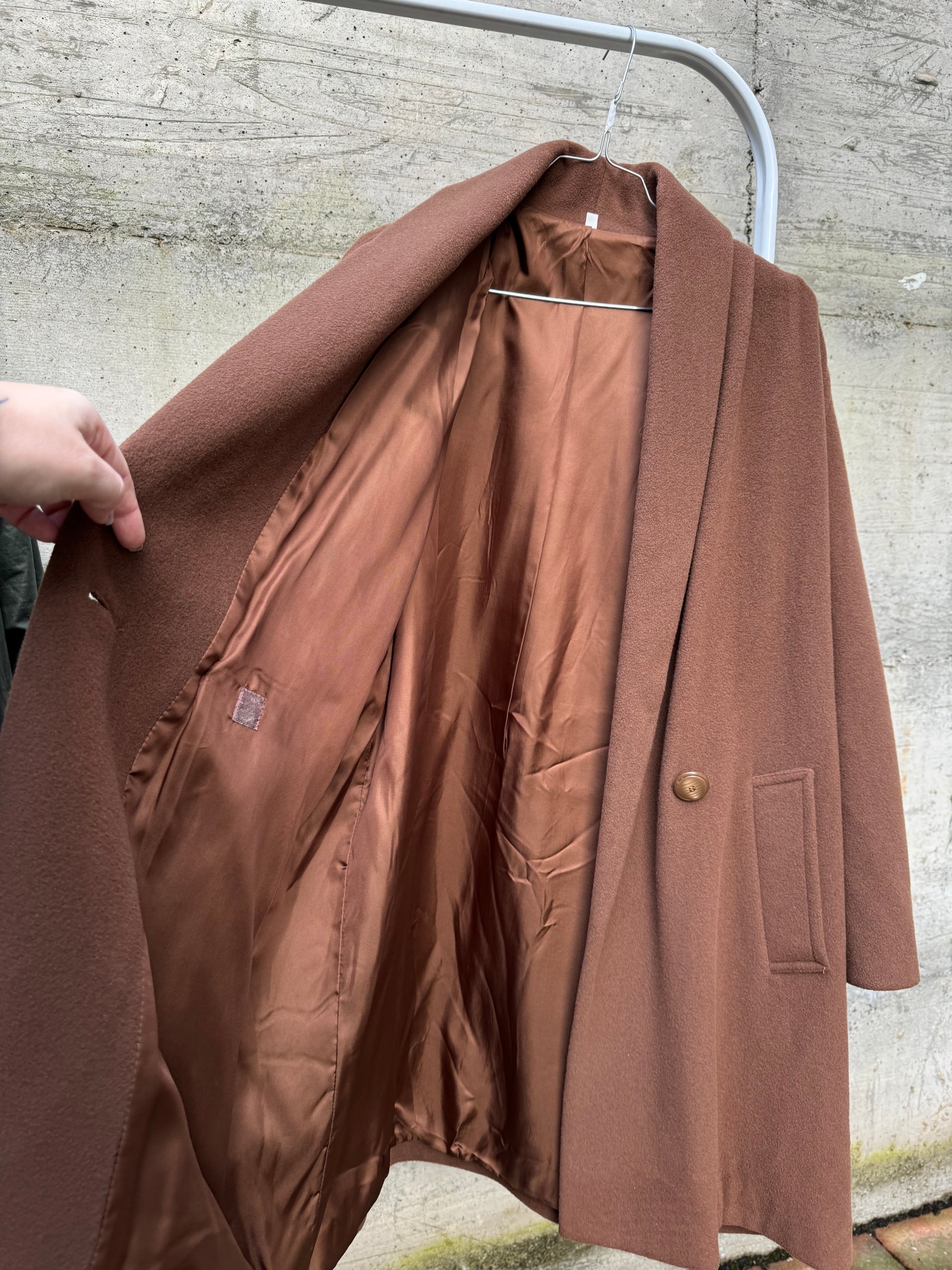 Cappotto corto doppiopetto cioccolato, 80% lana 20% poly.