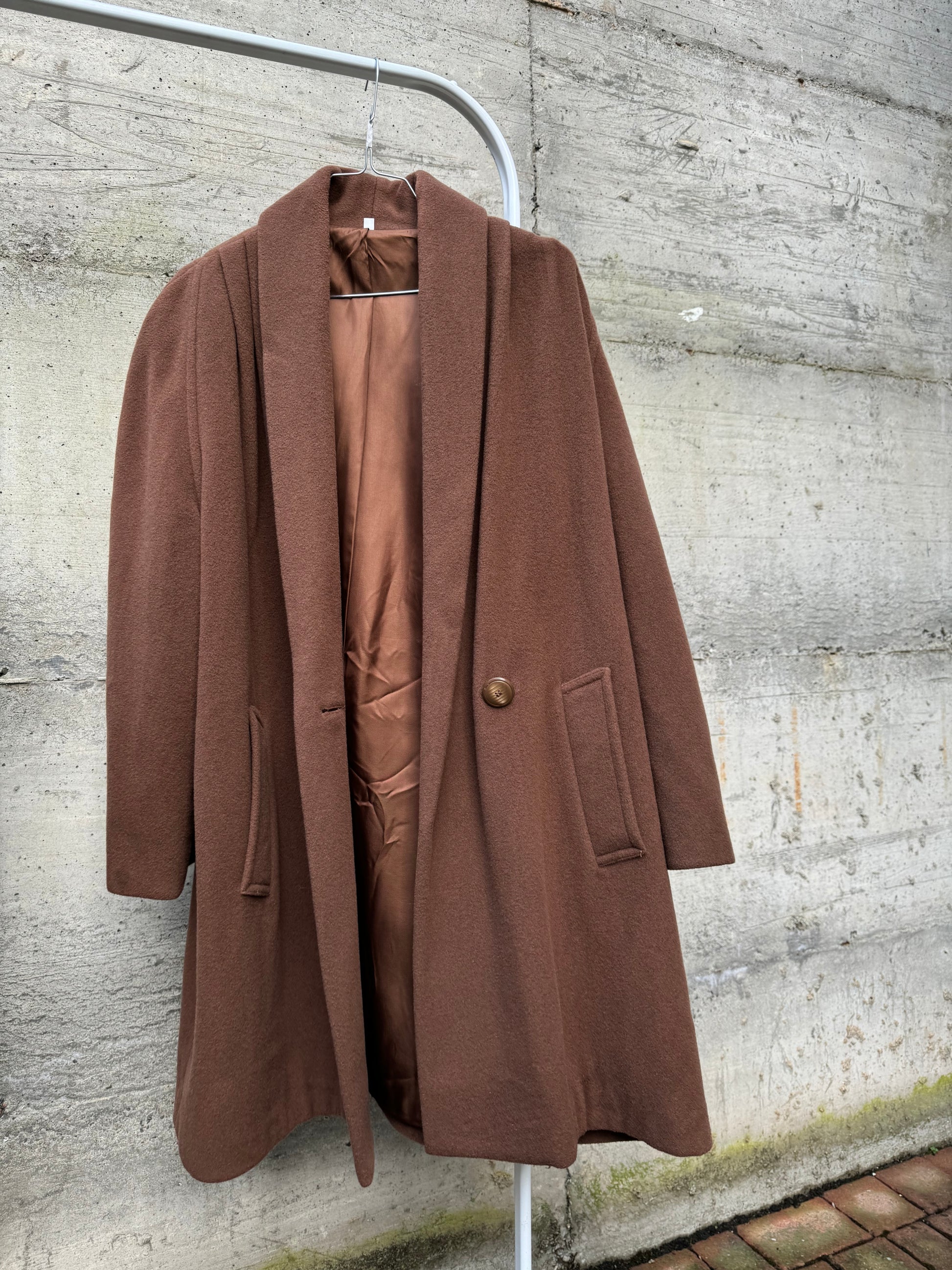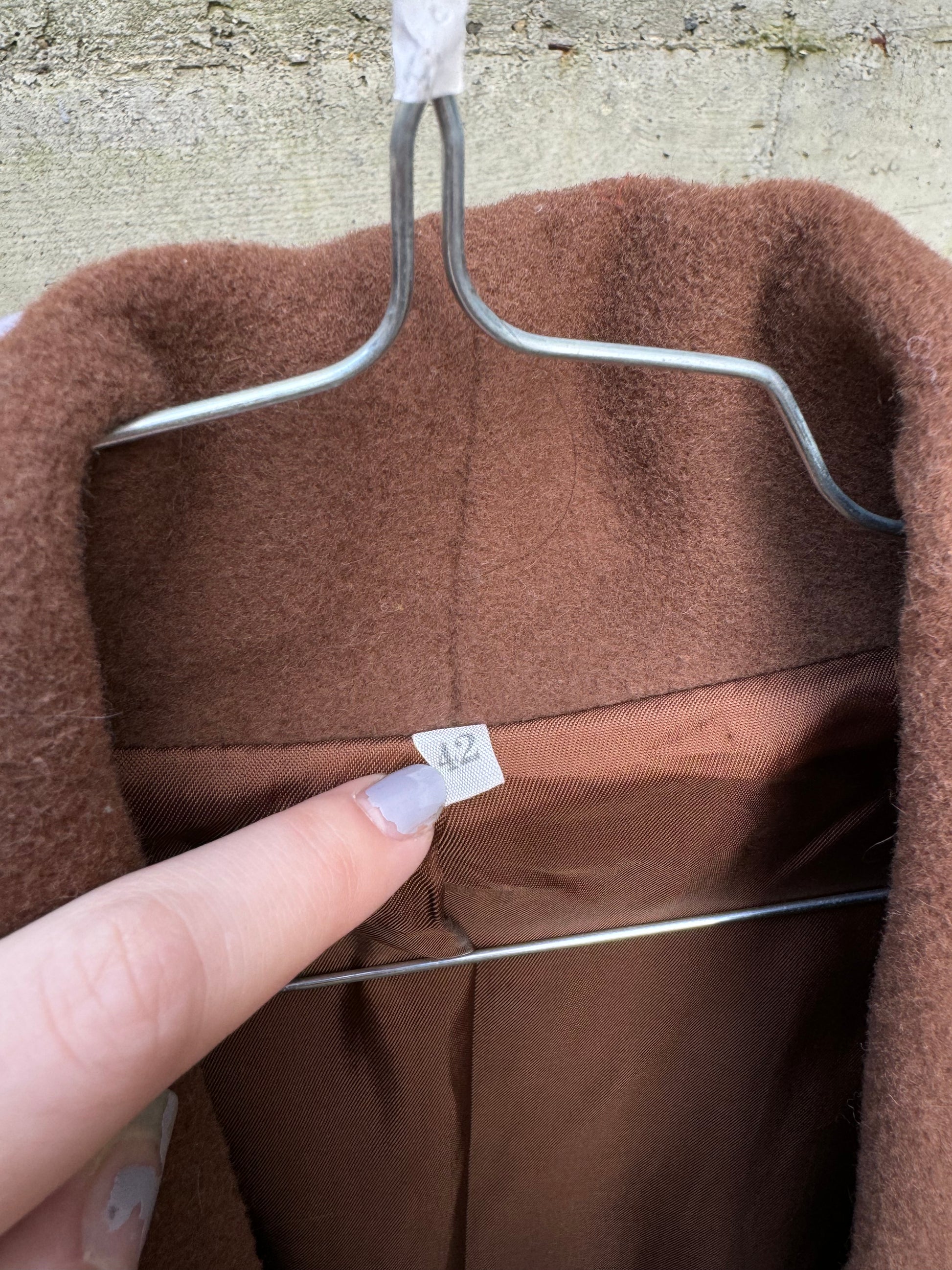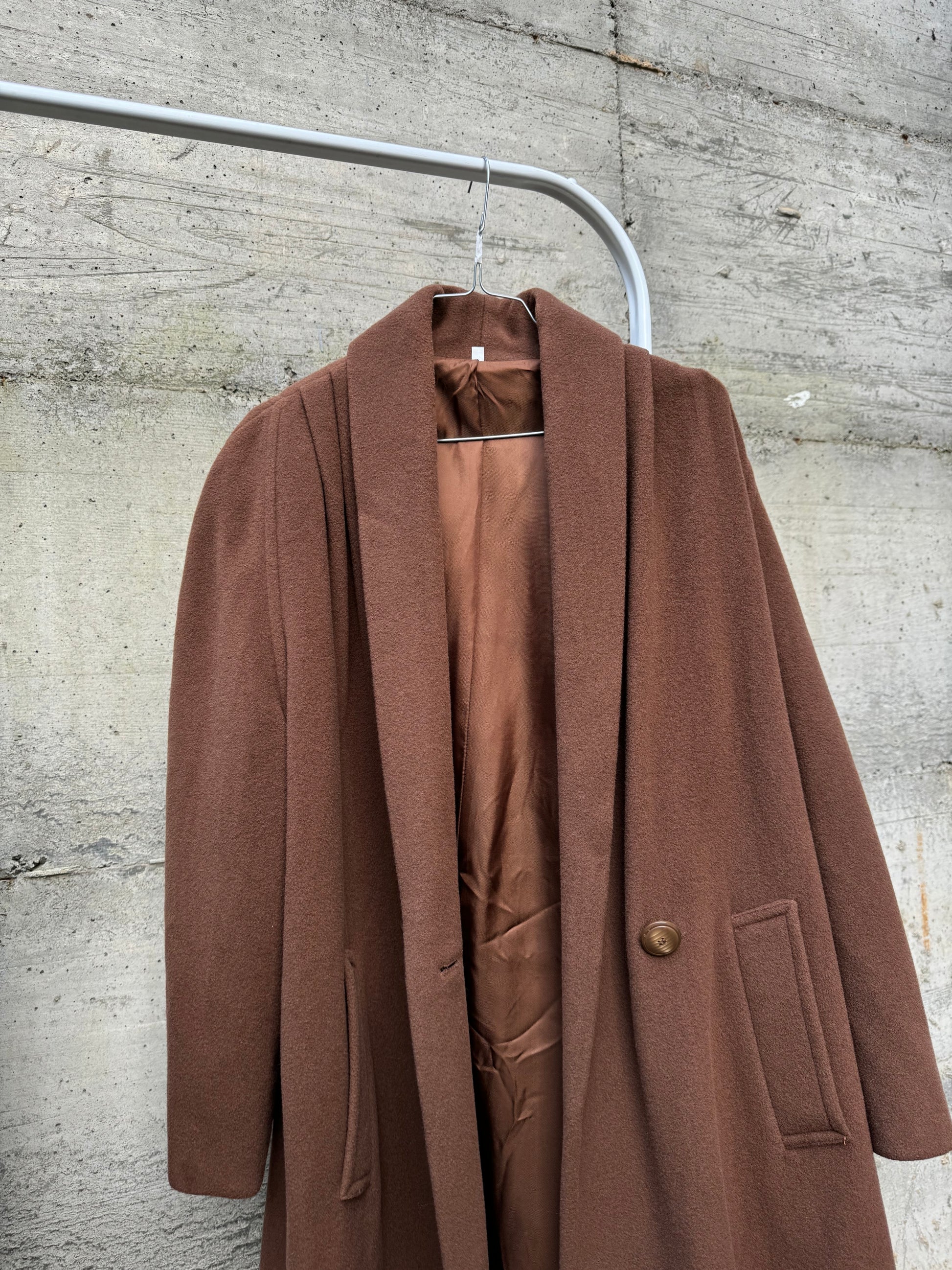 Cappotto corto doppiopetto cioccolato, 80% lana 20% poly.