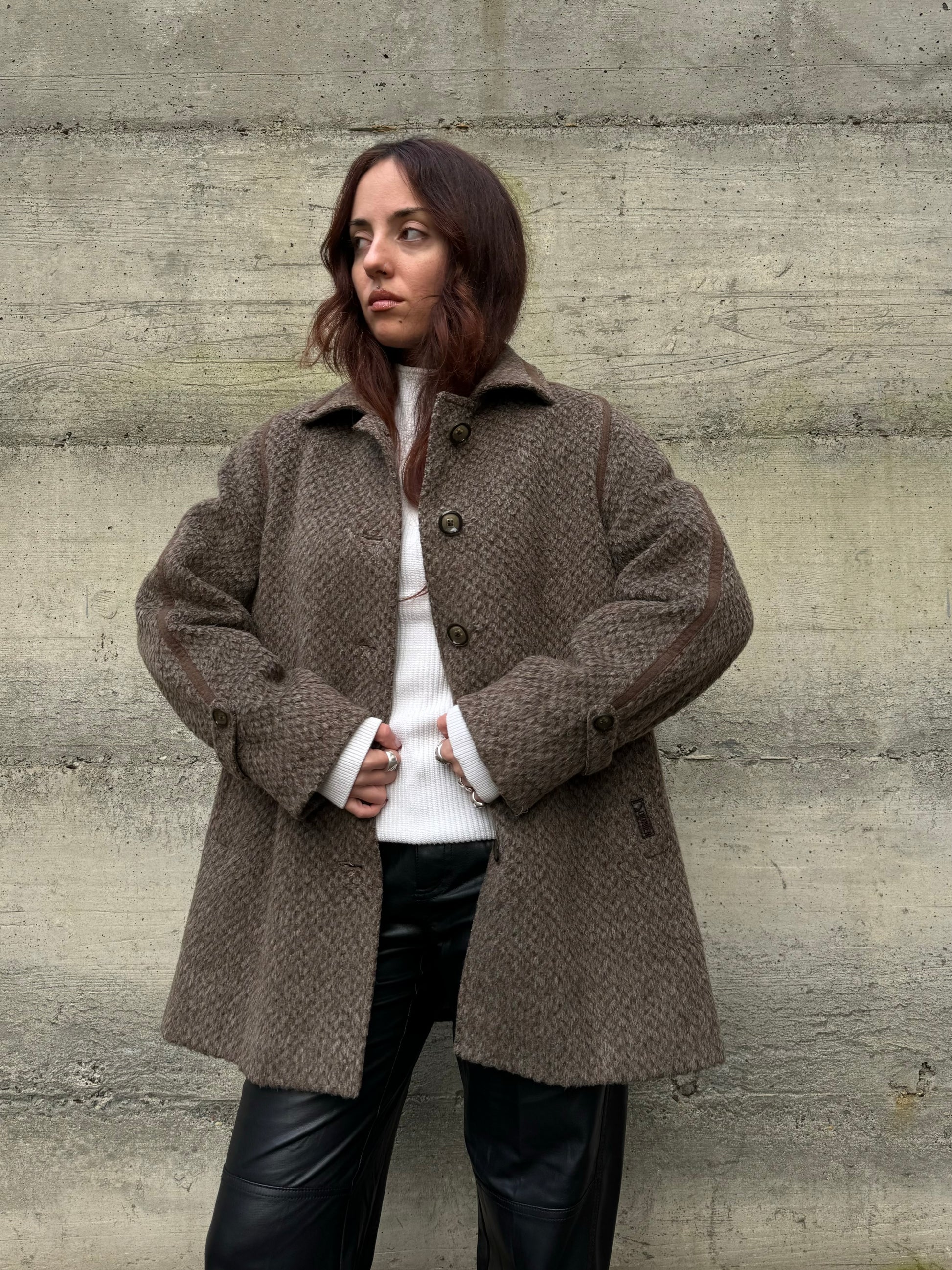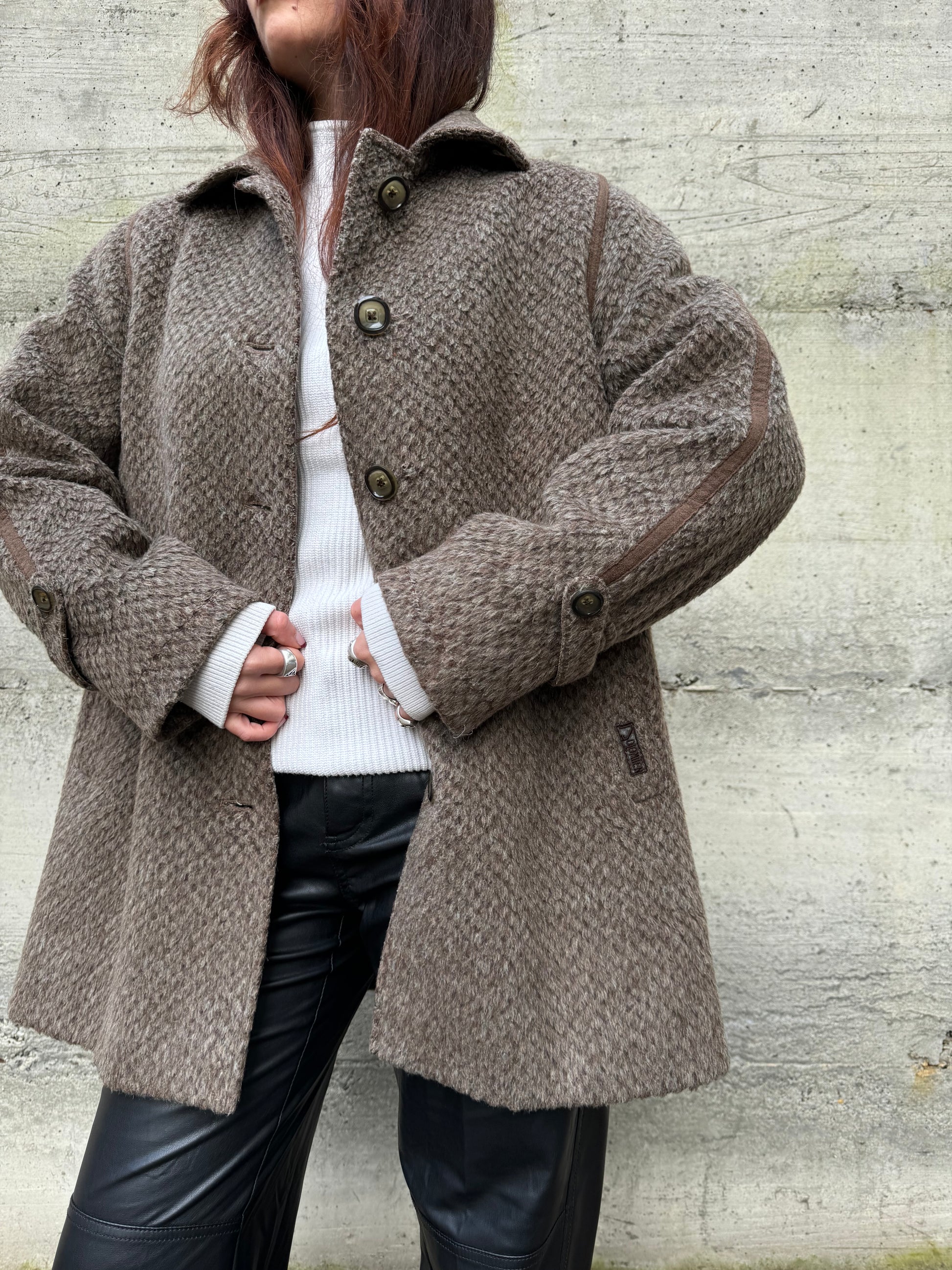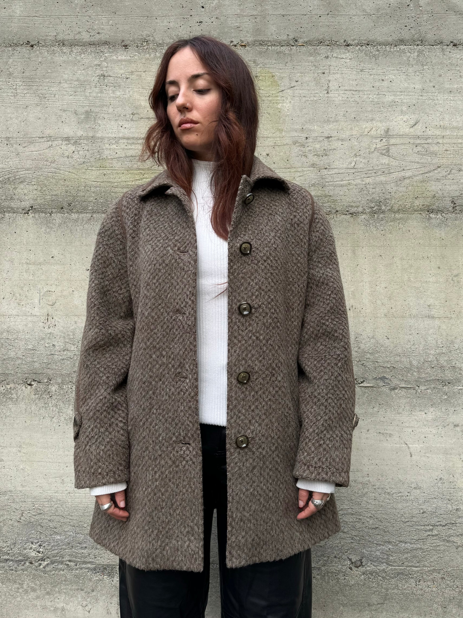 Cappottino Loden spigato color fango, misto lana e alpaca