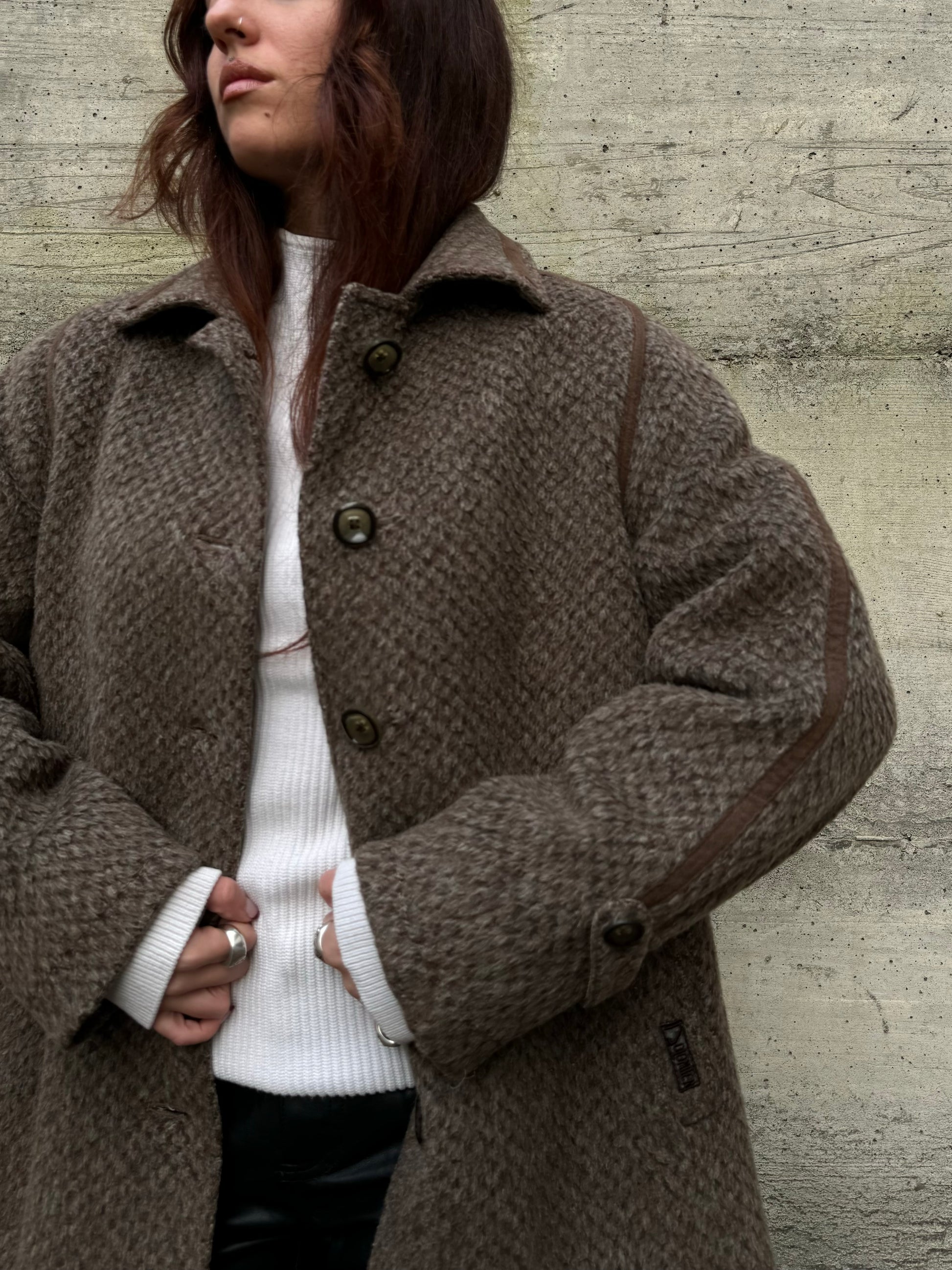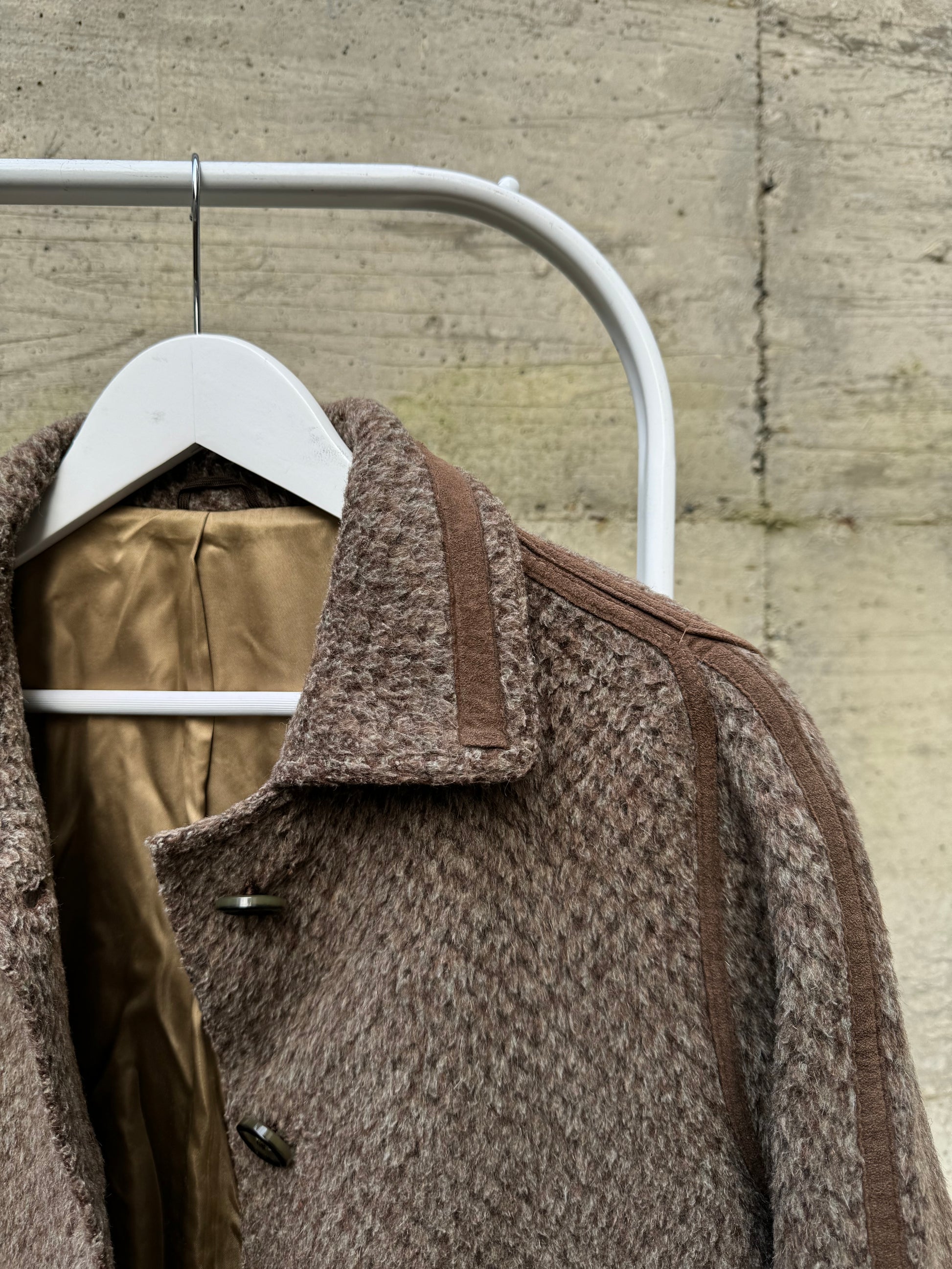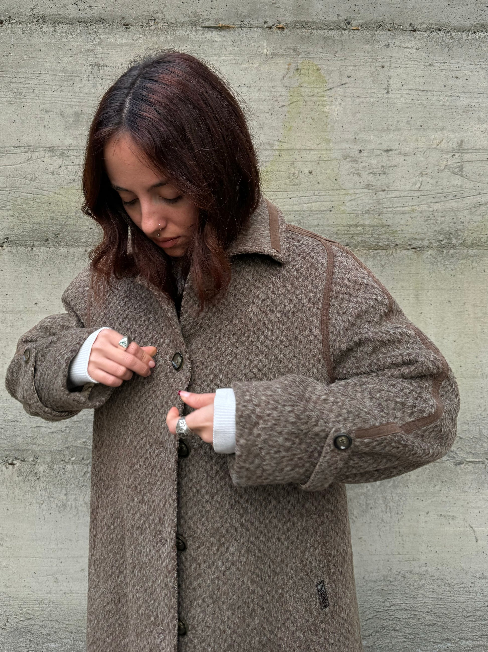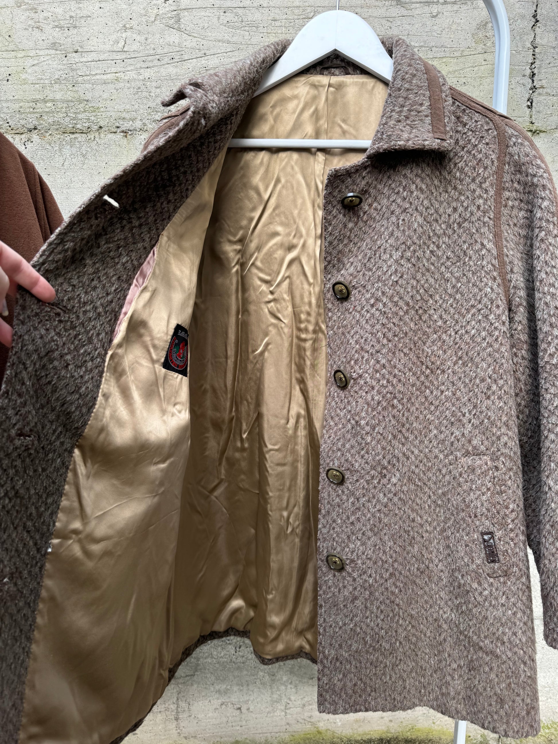 Cappottino Loden spigato color fango, misto lana e alpaca