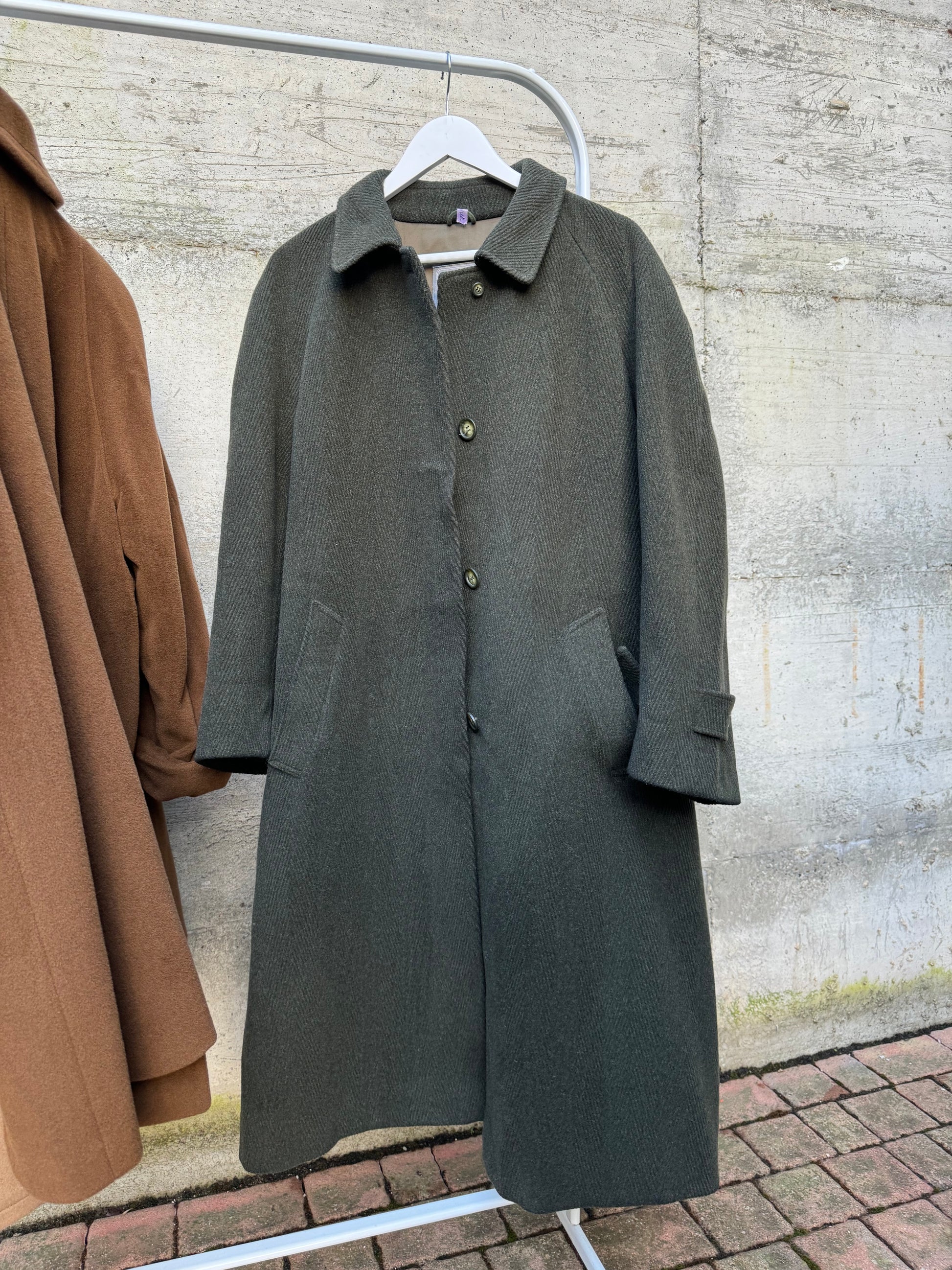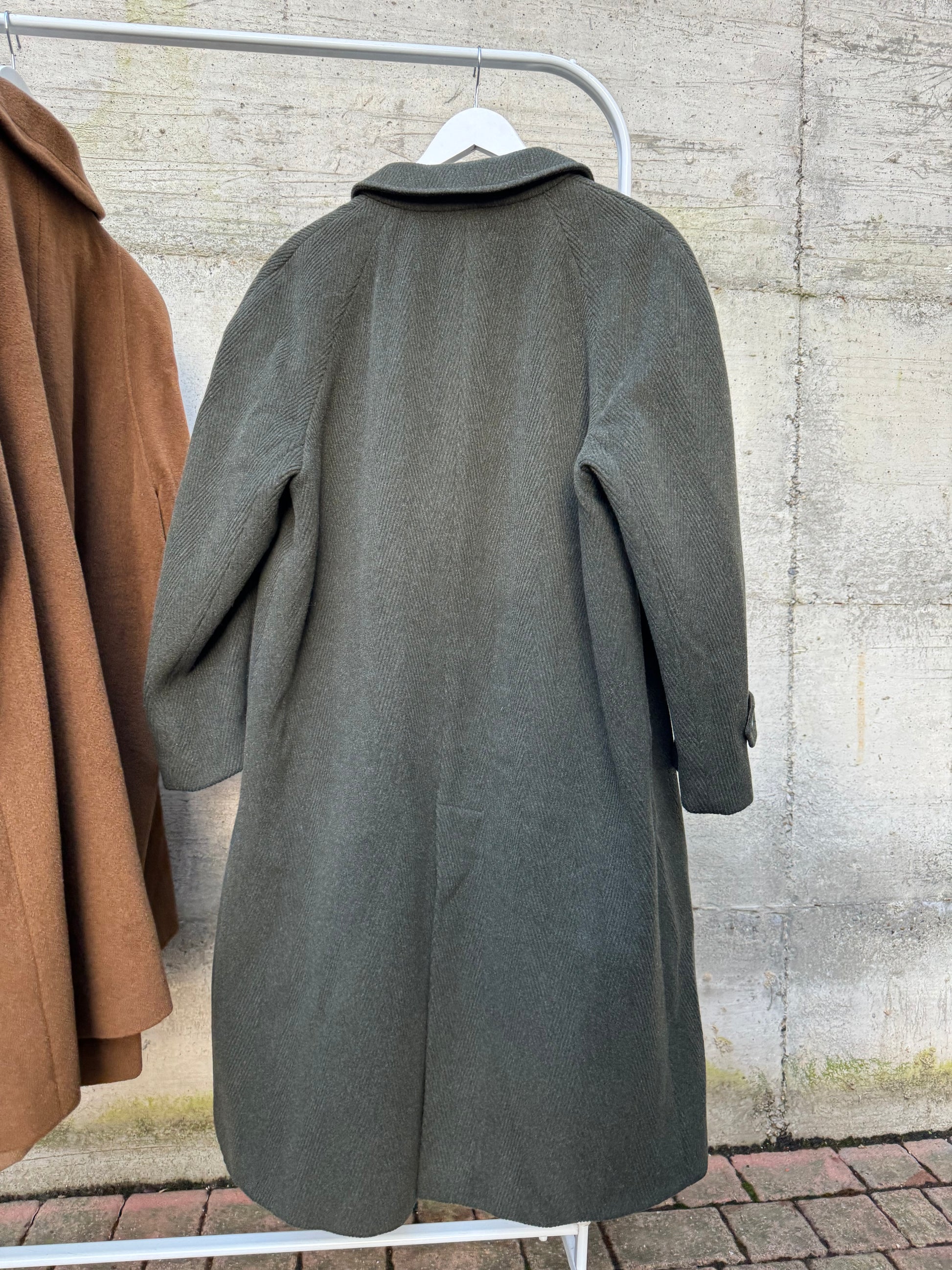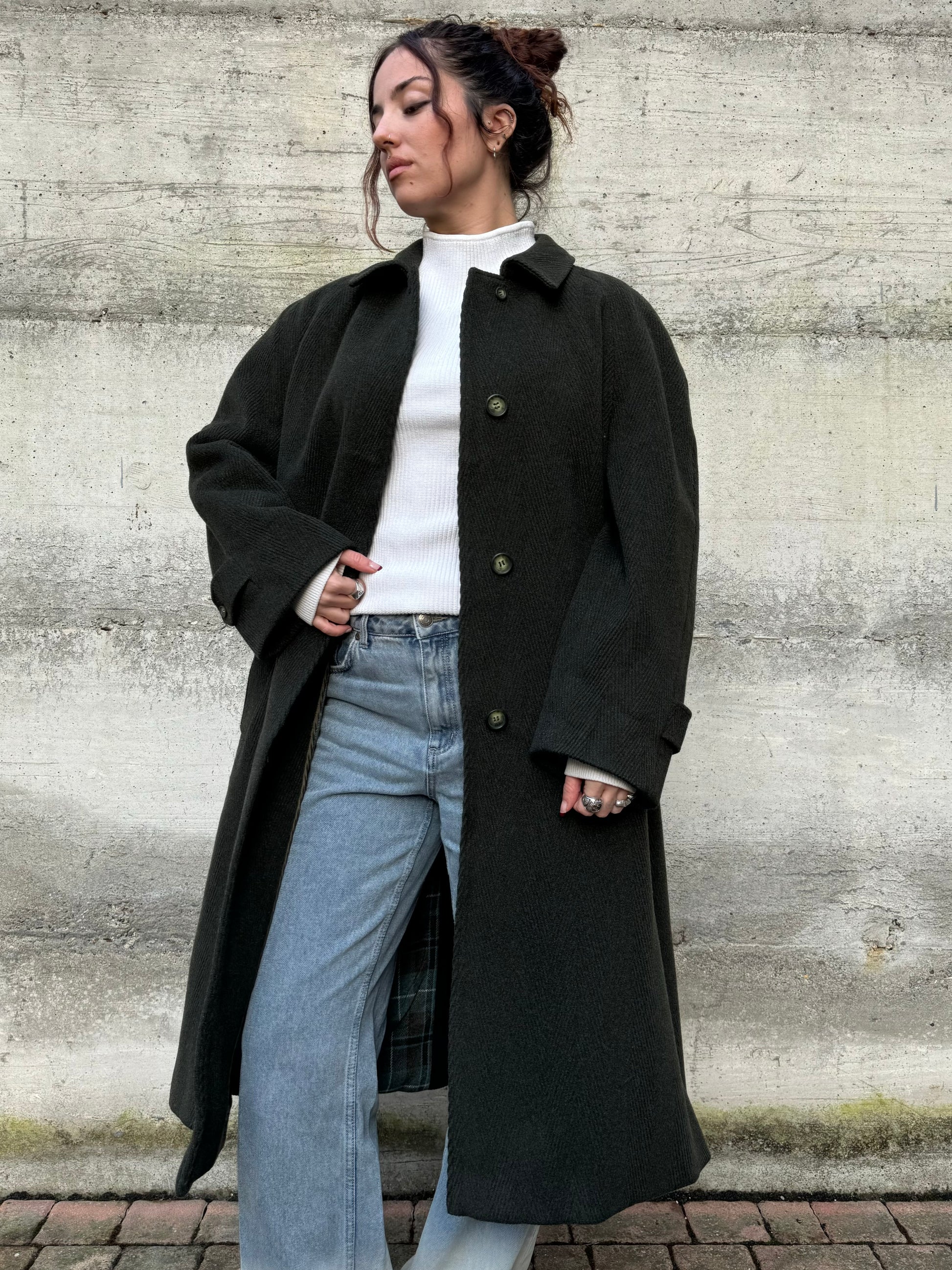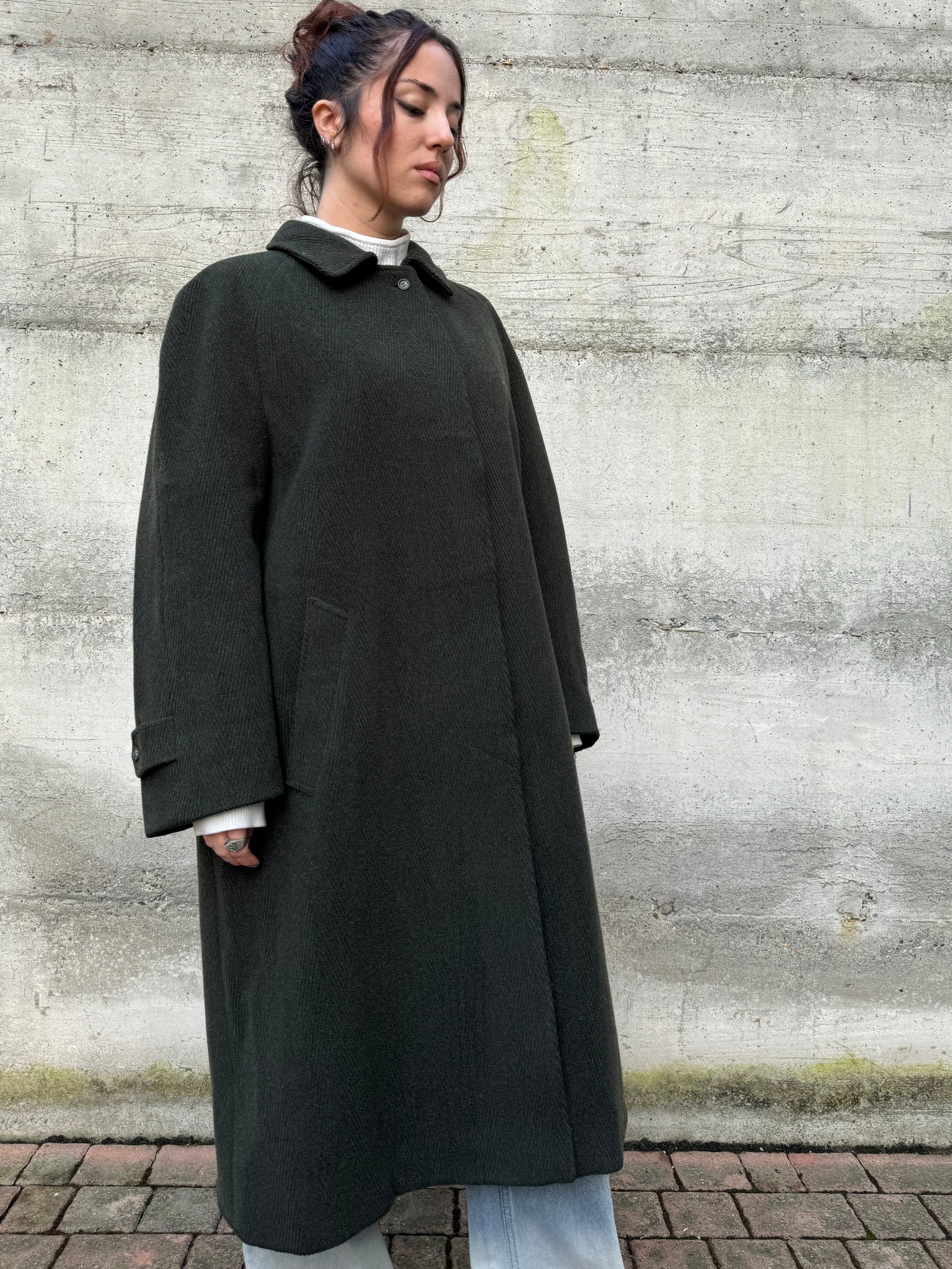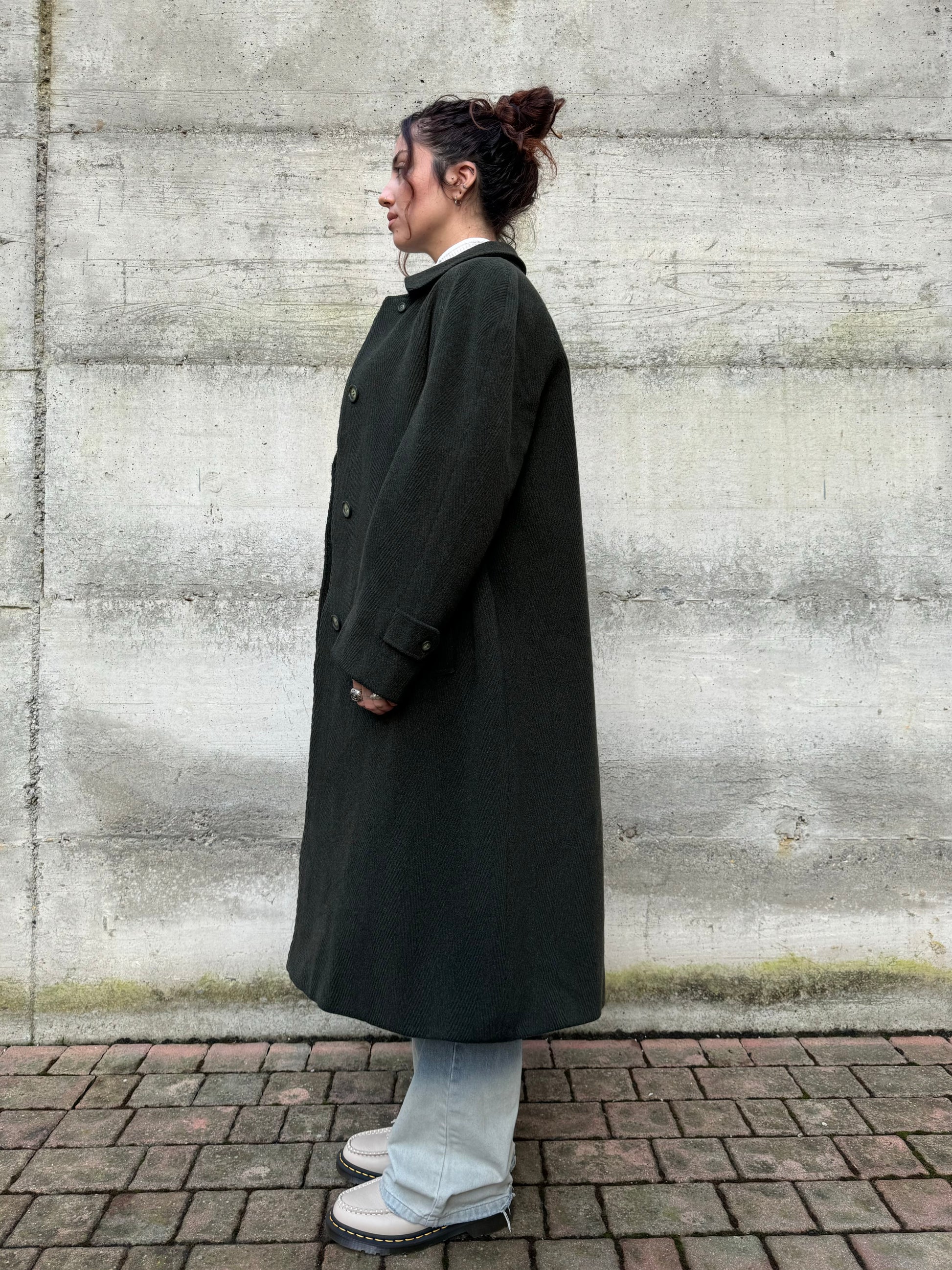 Cappotto donna sartoria Valstar verde scuro spigato, con cintura
