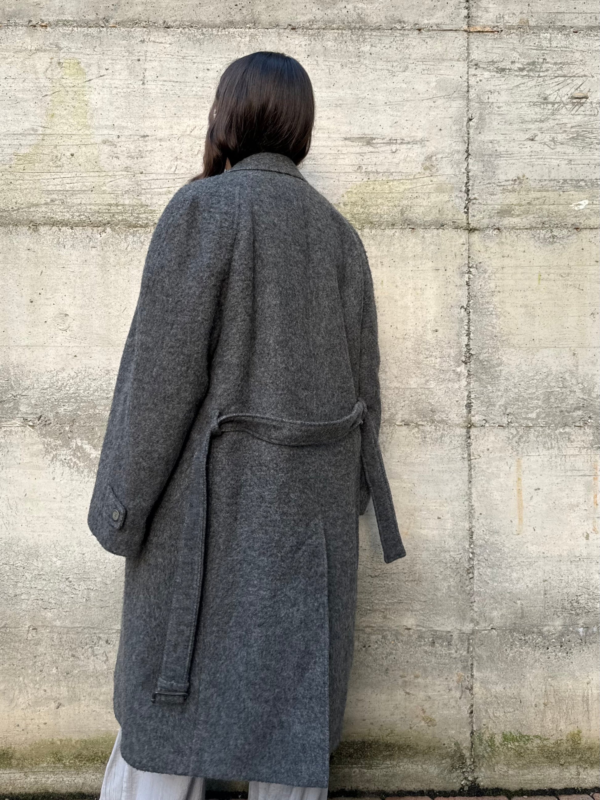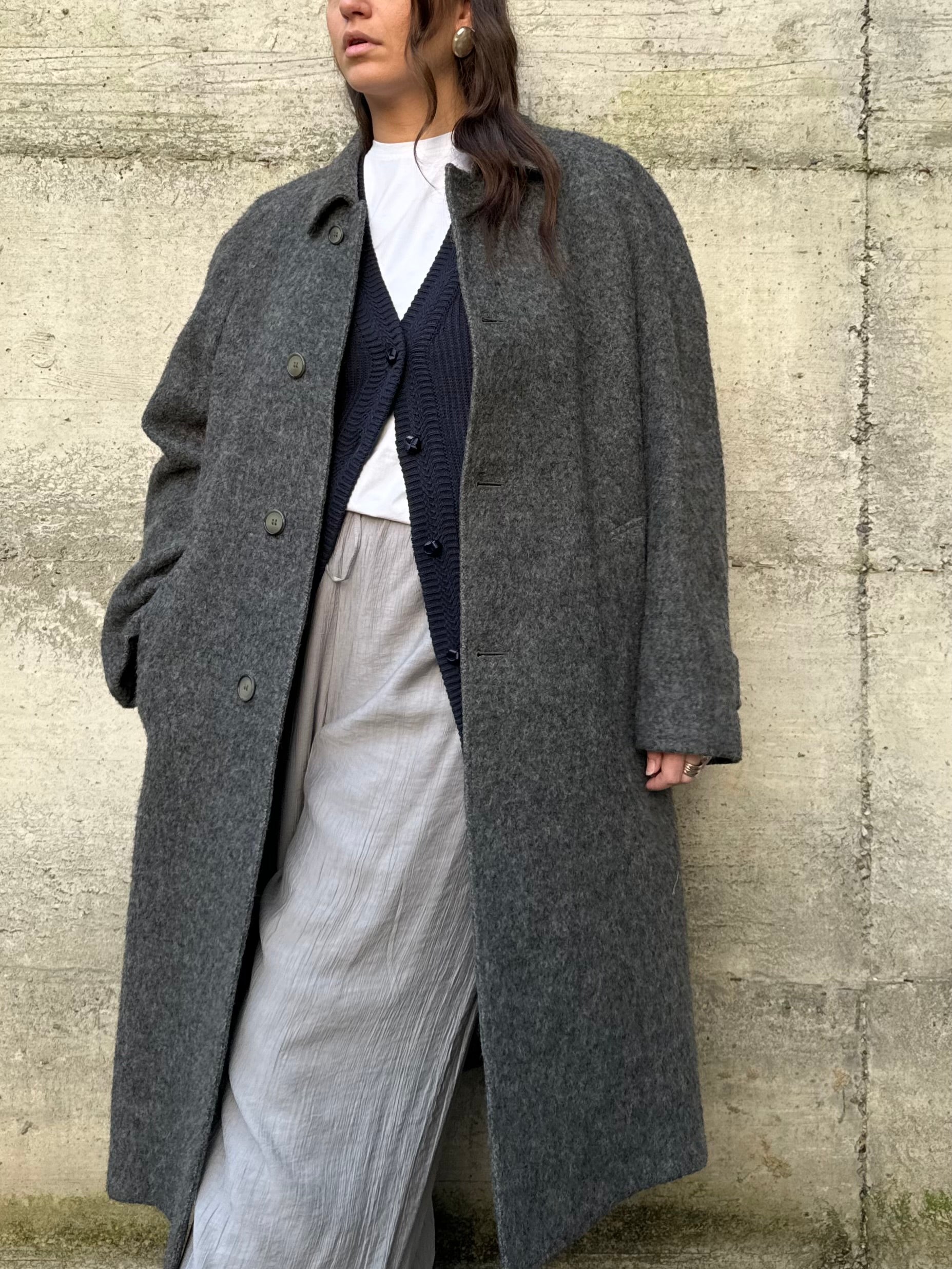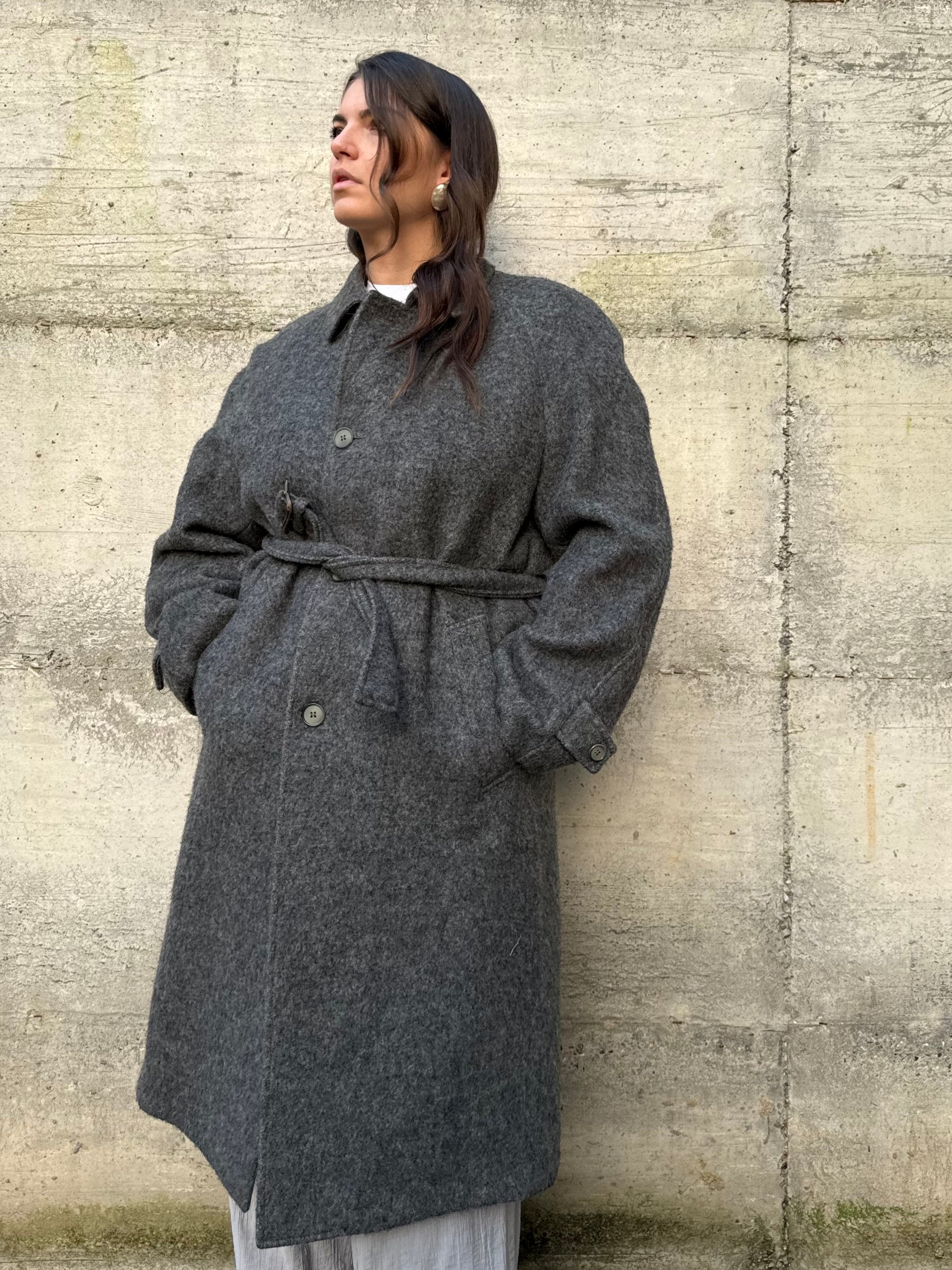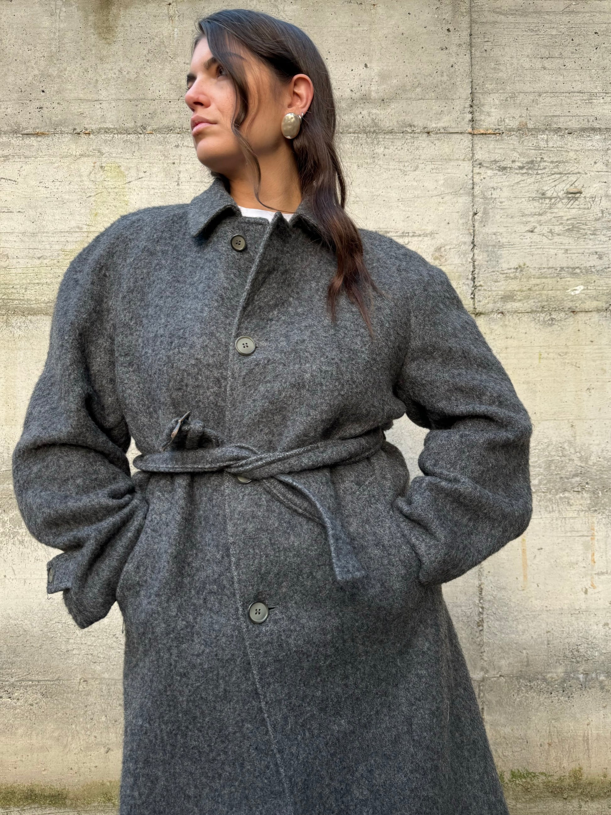 Cappotto lungo sartoriale grigio in misto lana e alpaca