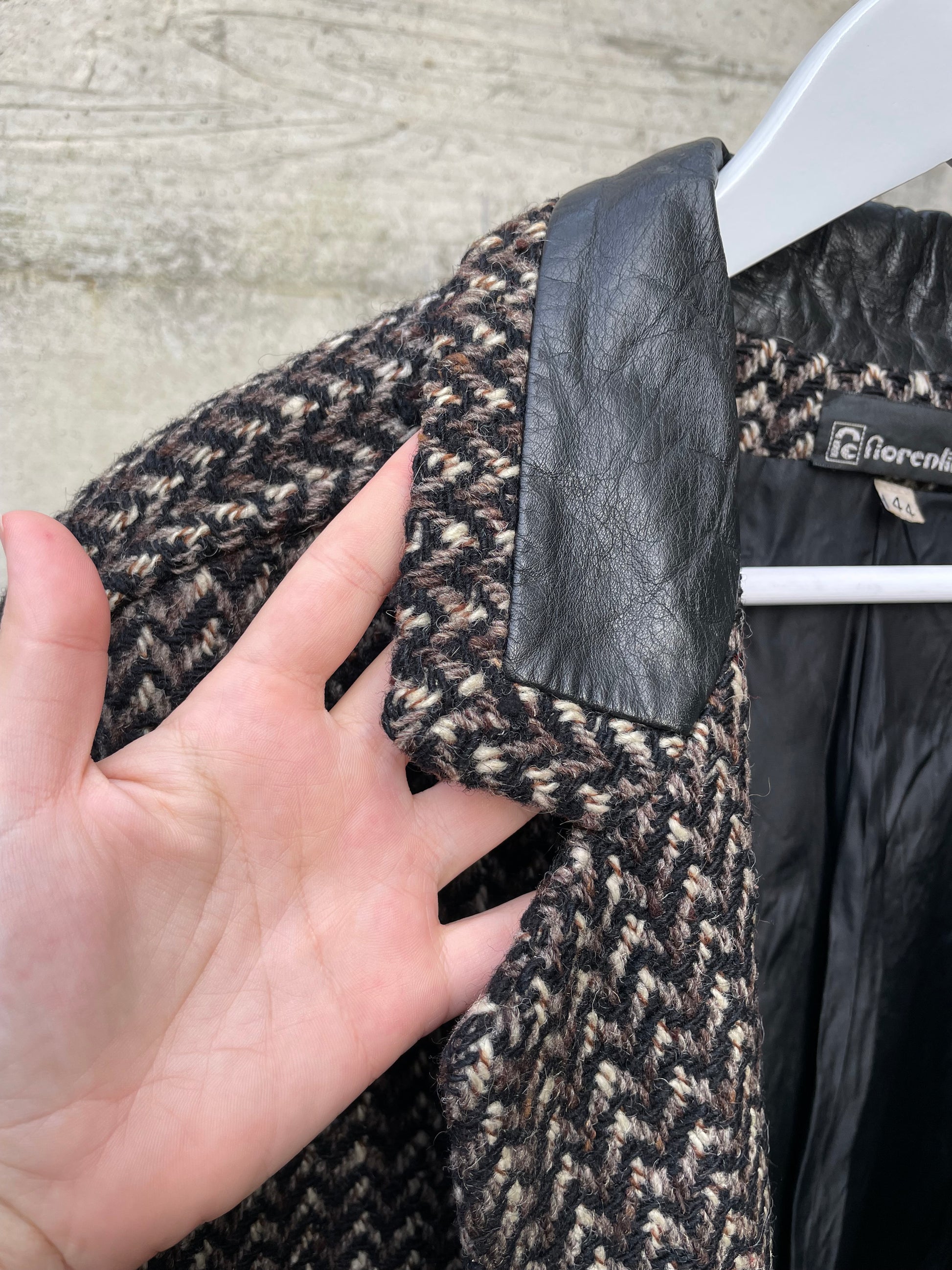 Cappotto sartoriale in lana spigato, con inserti in vera pelle