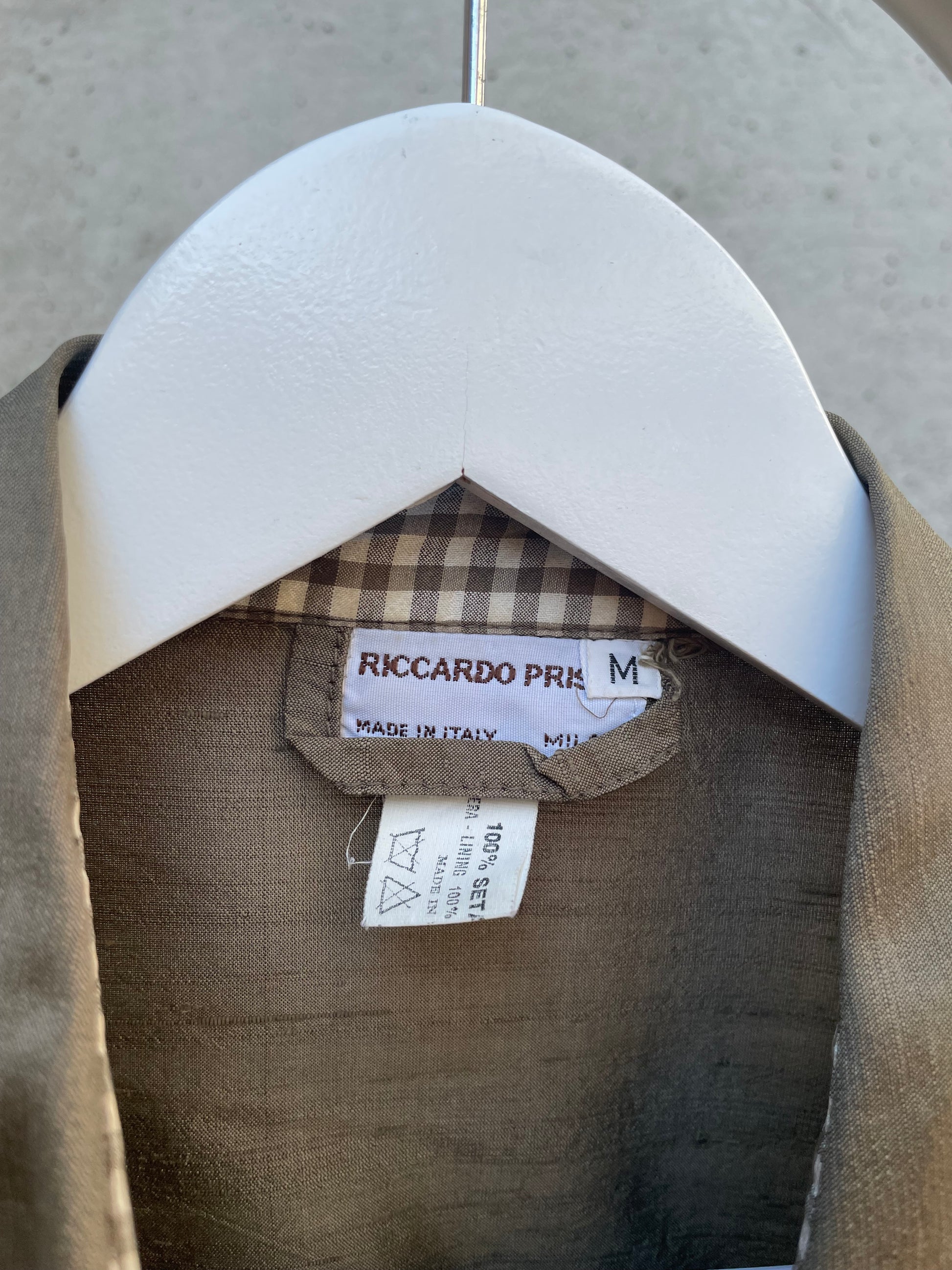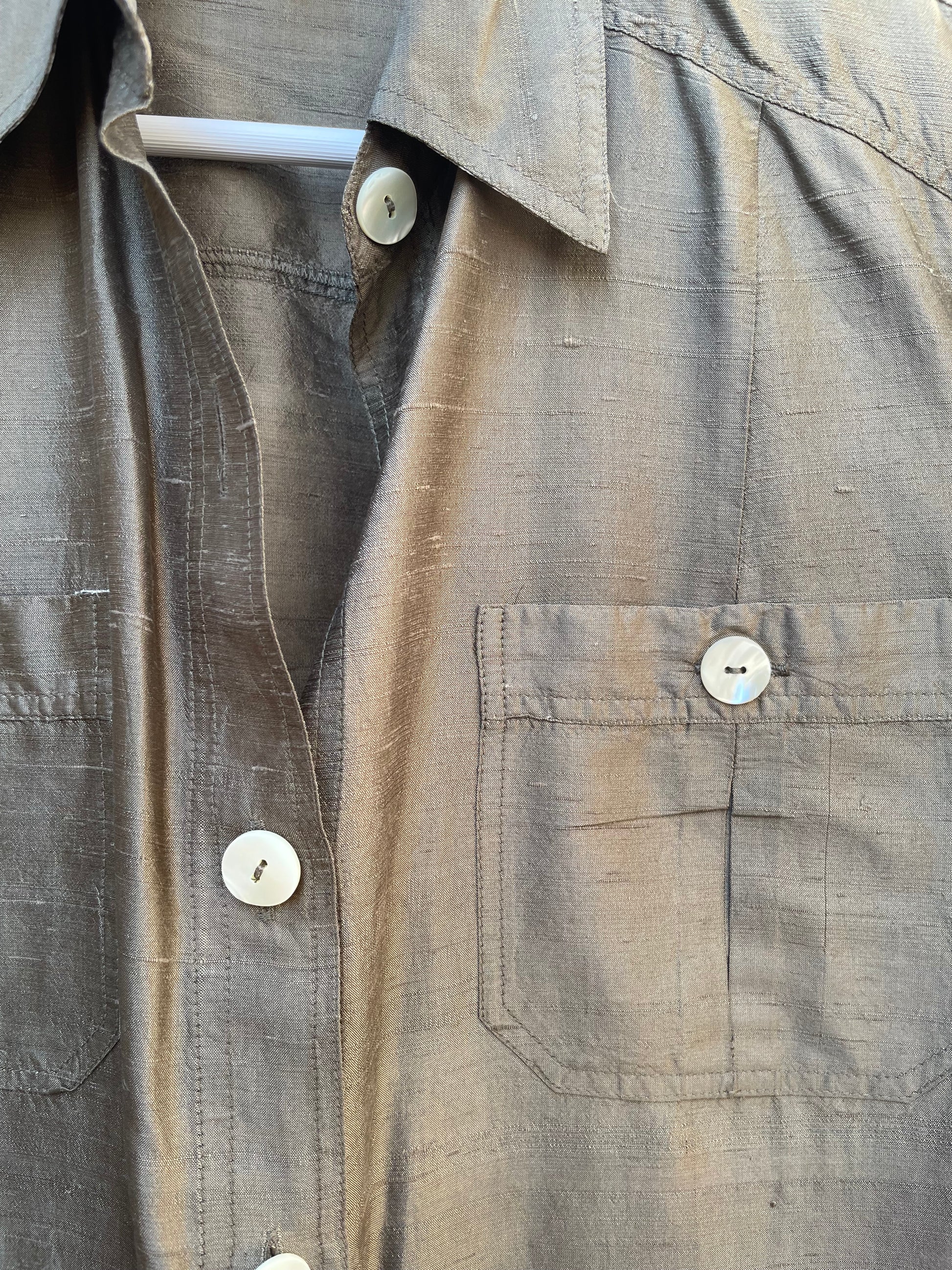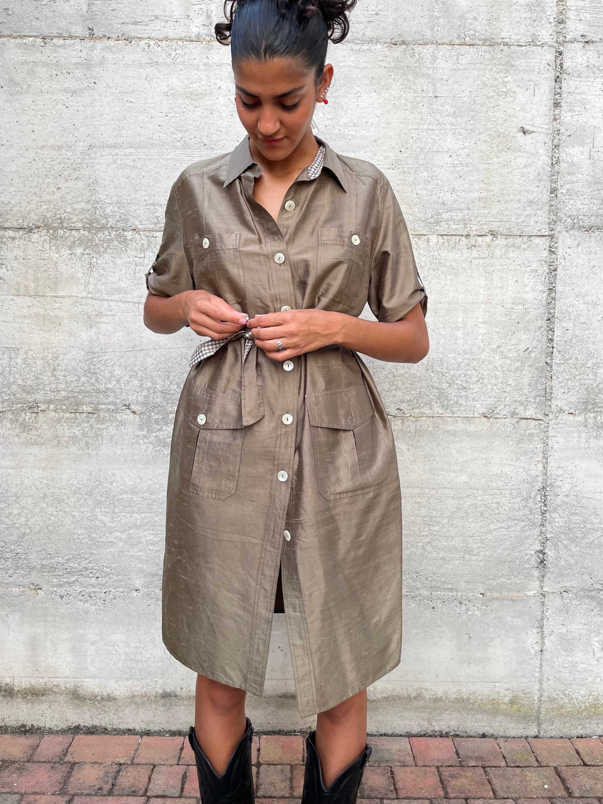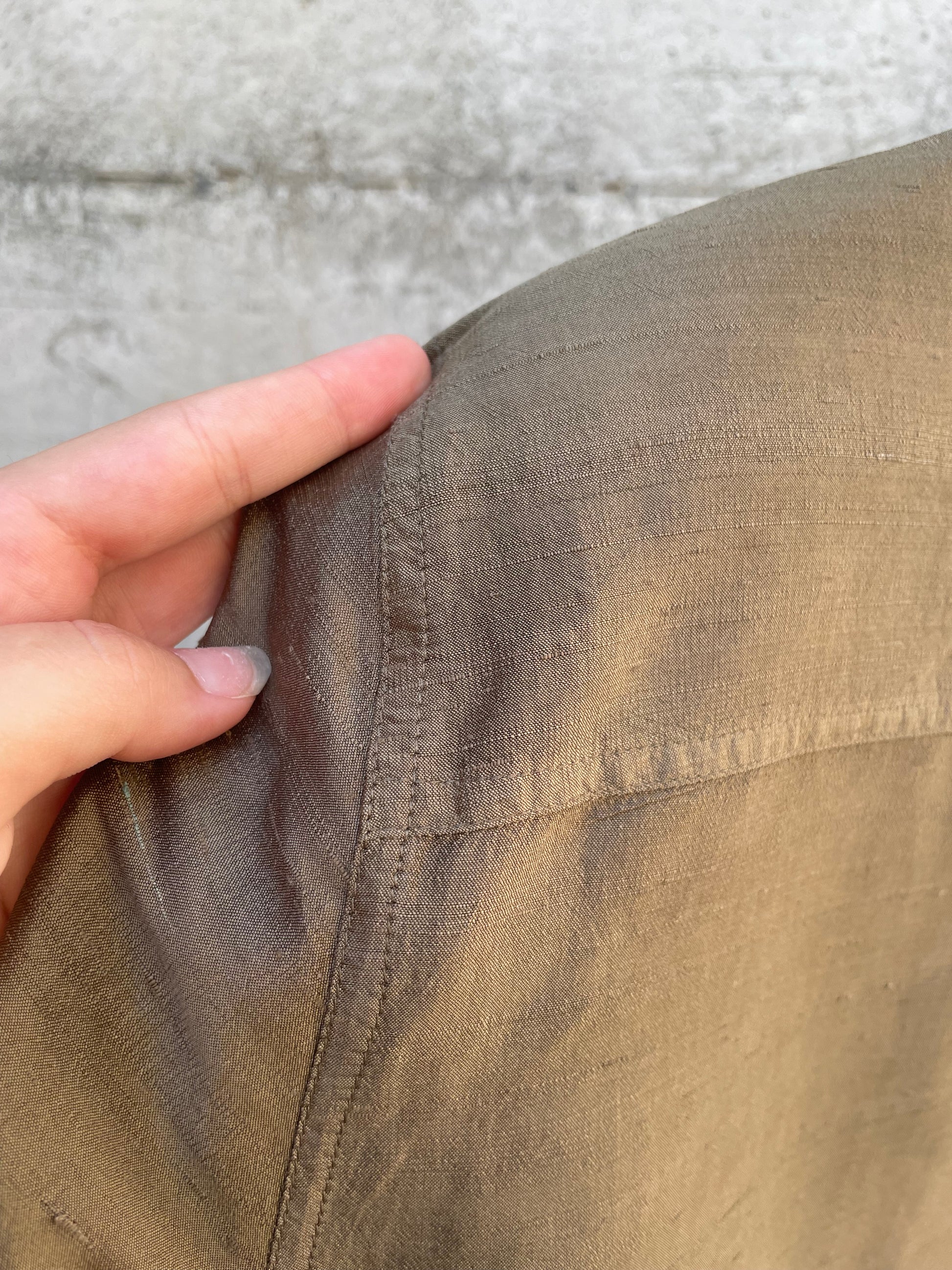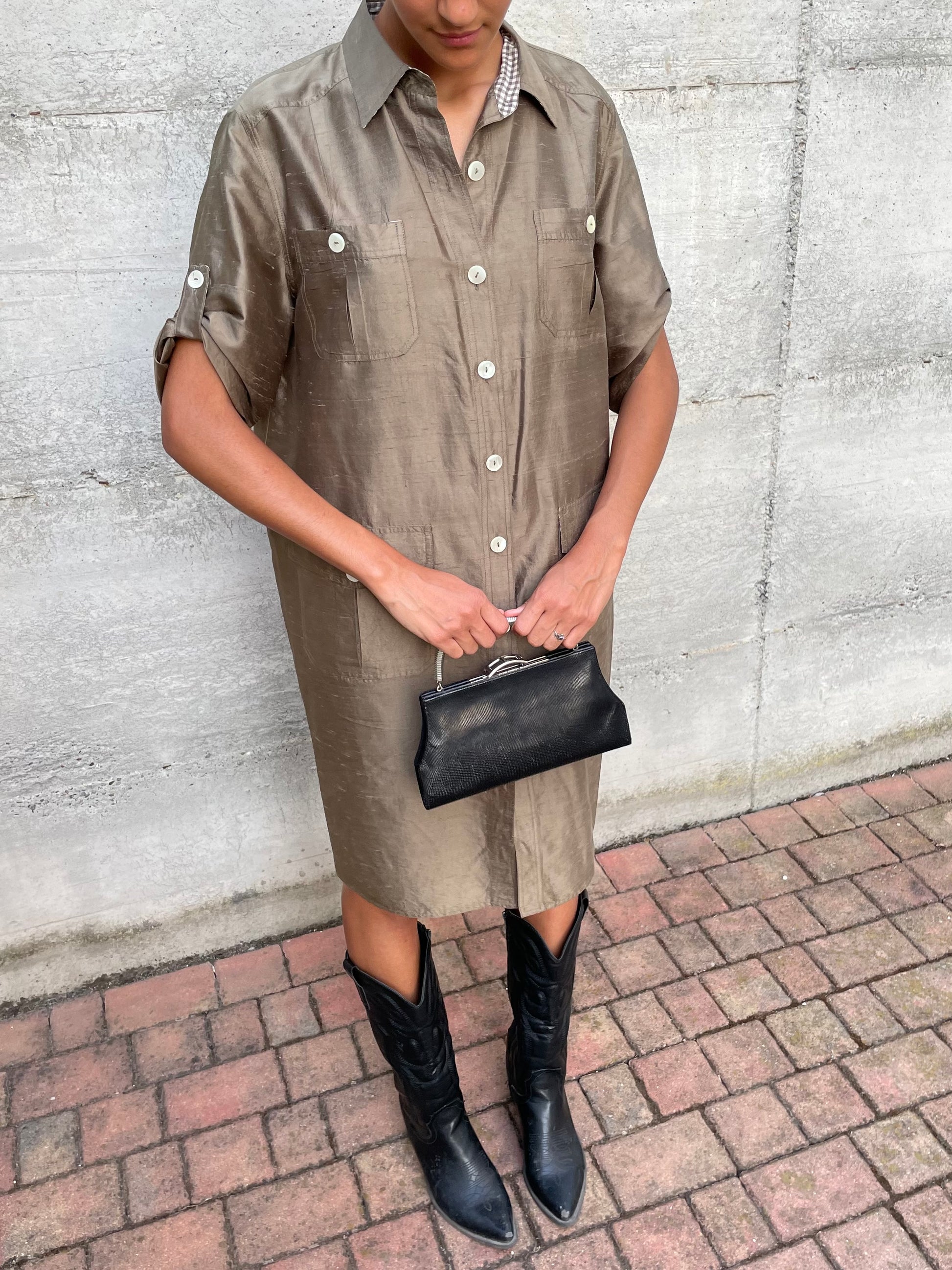 Chemisier midi 100% shantung di seta verde oliva - taglia M
