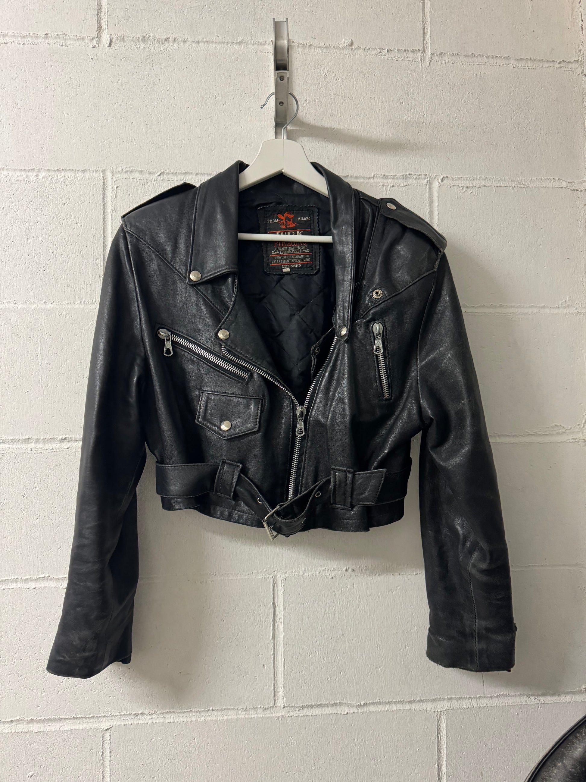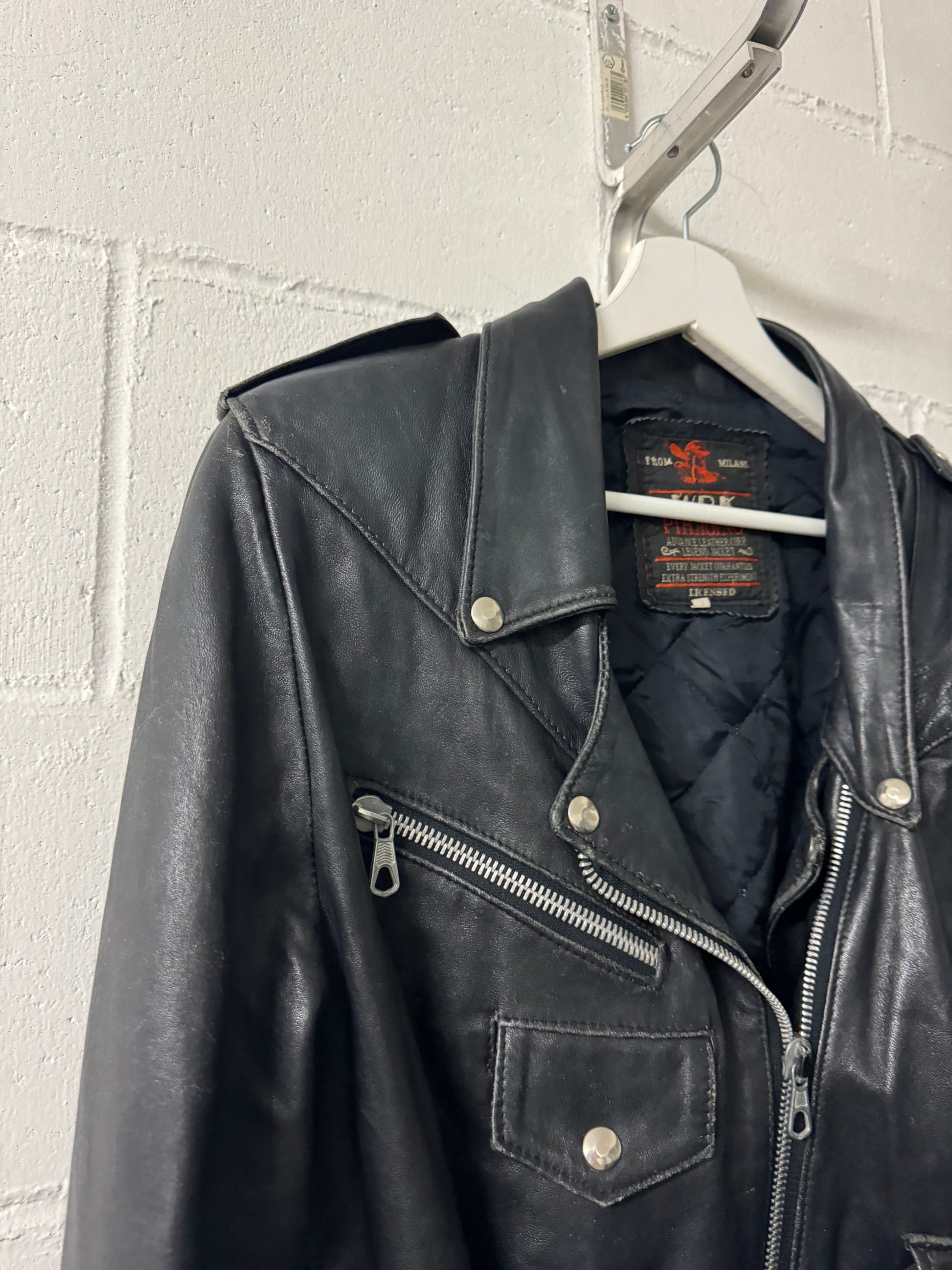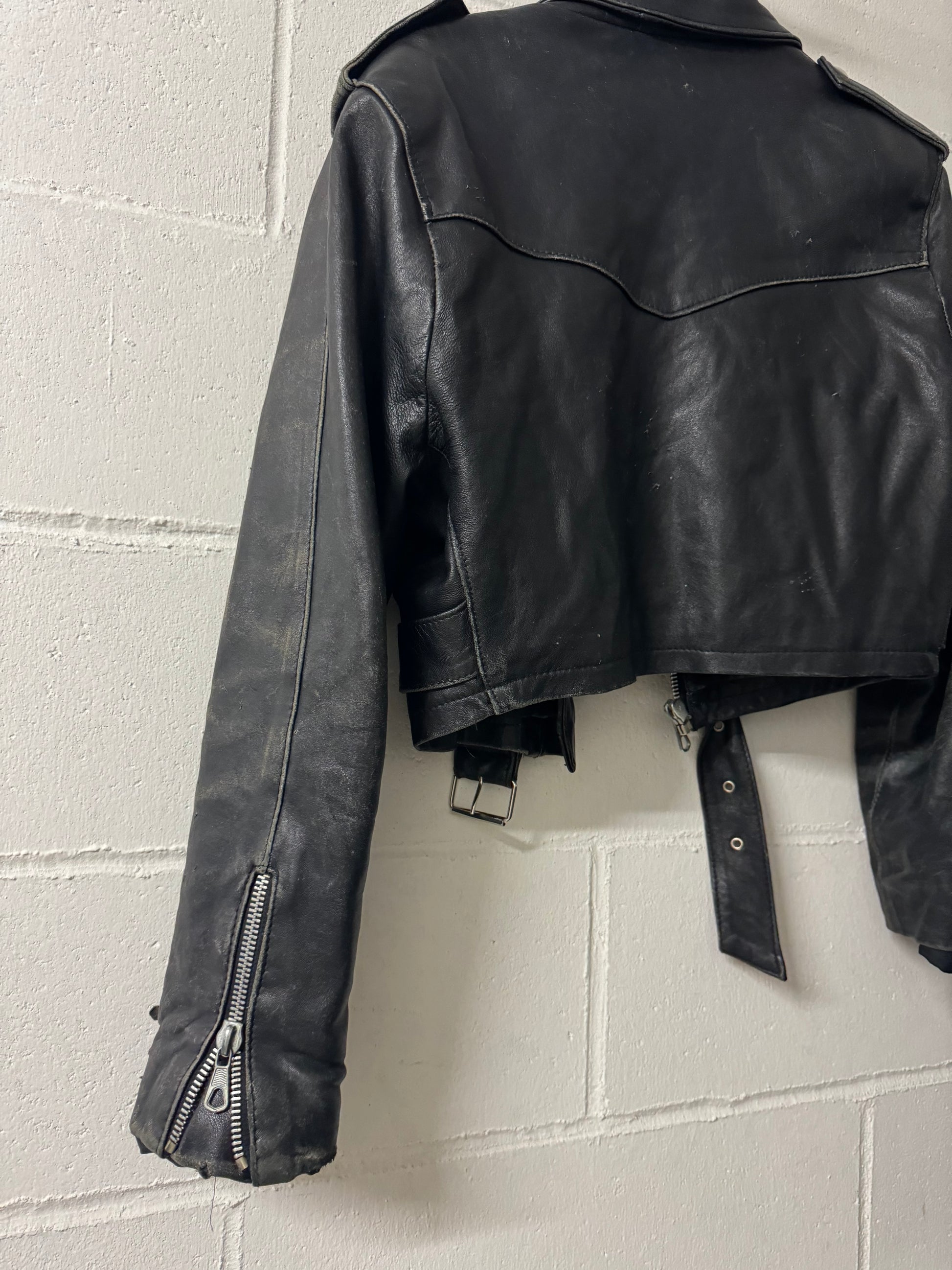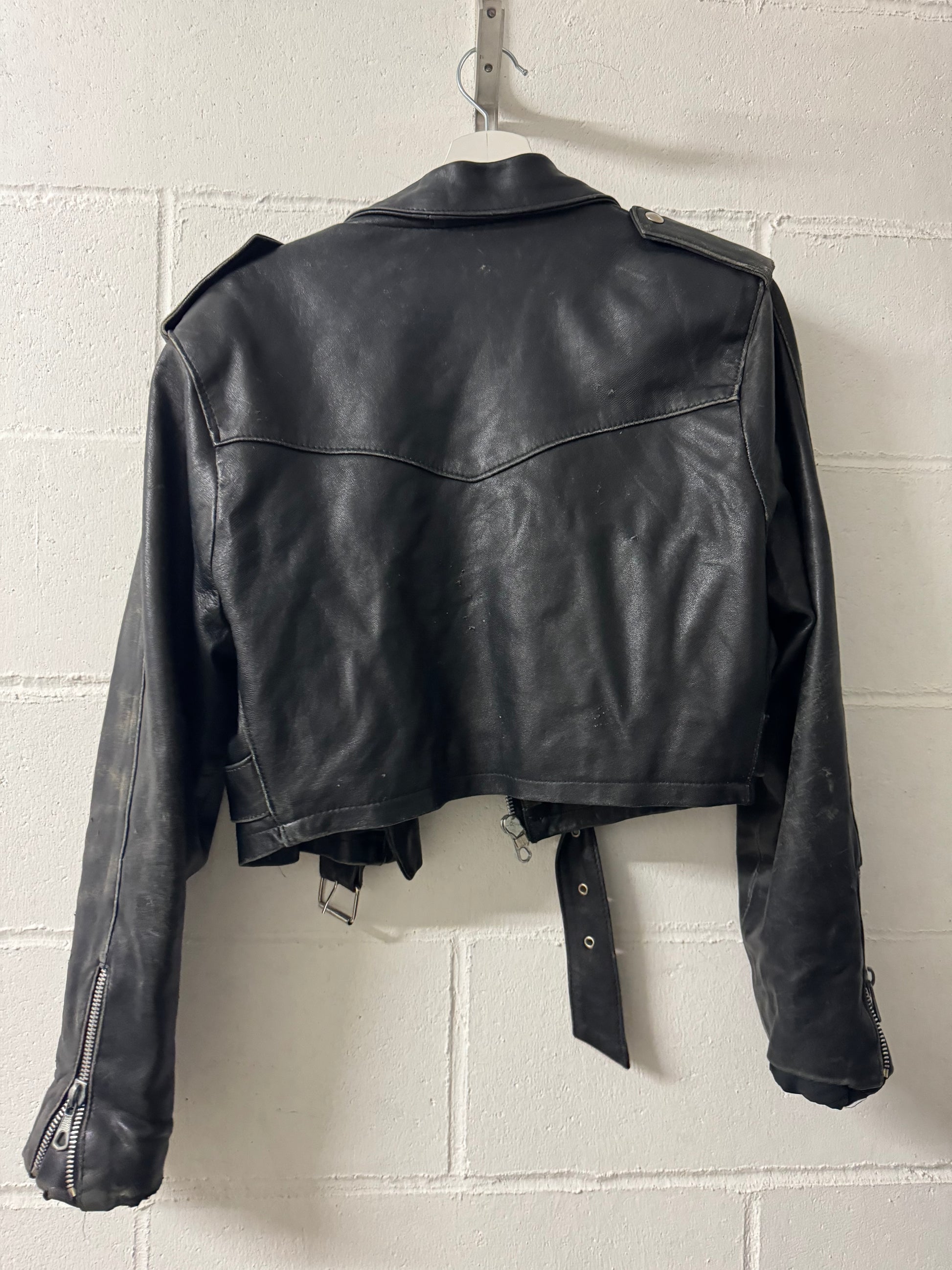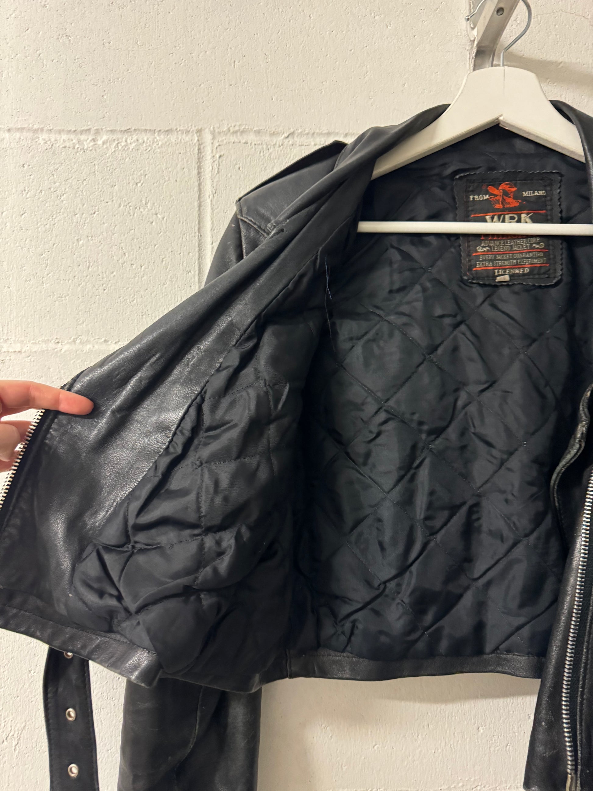 Chiodo nero crop in vera pelle nappata (morbida e leggera).