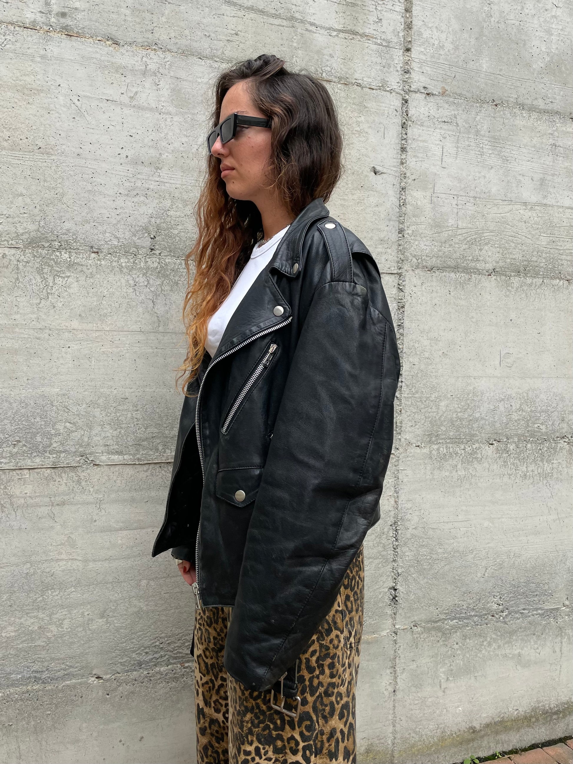 Chiodo vintage vera pelle nero, in nappa leggera, taglia XL