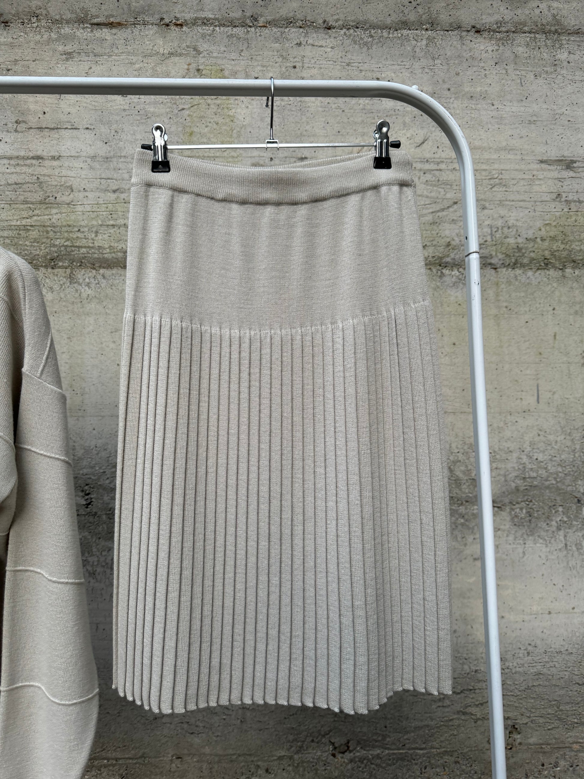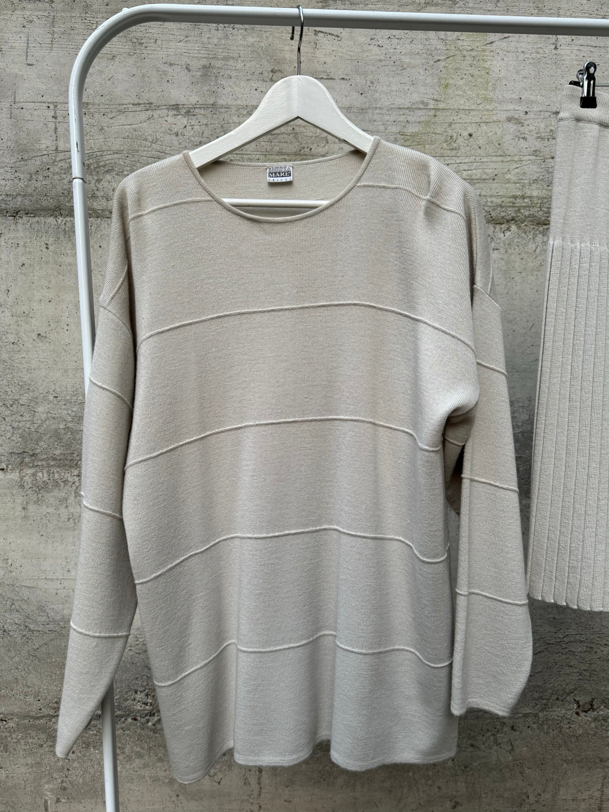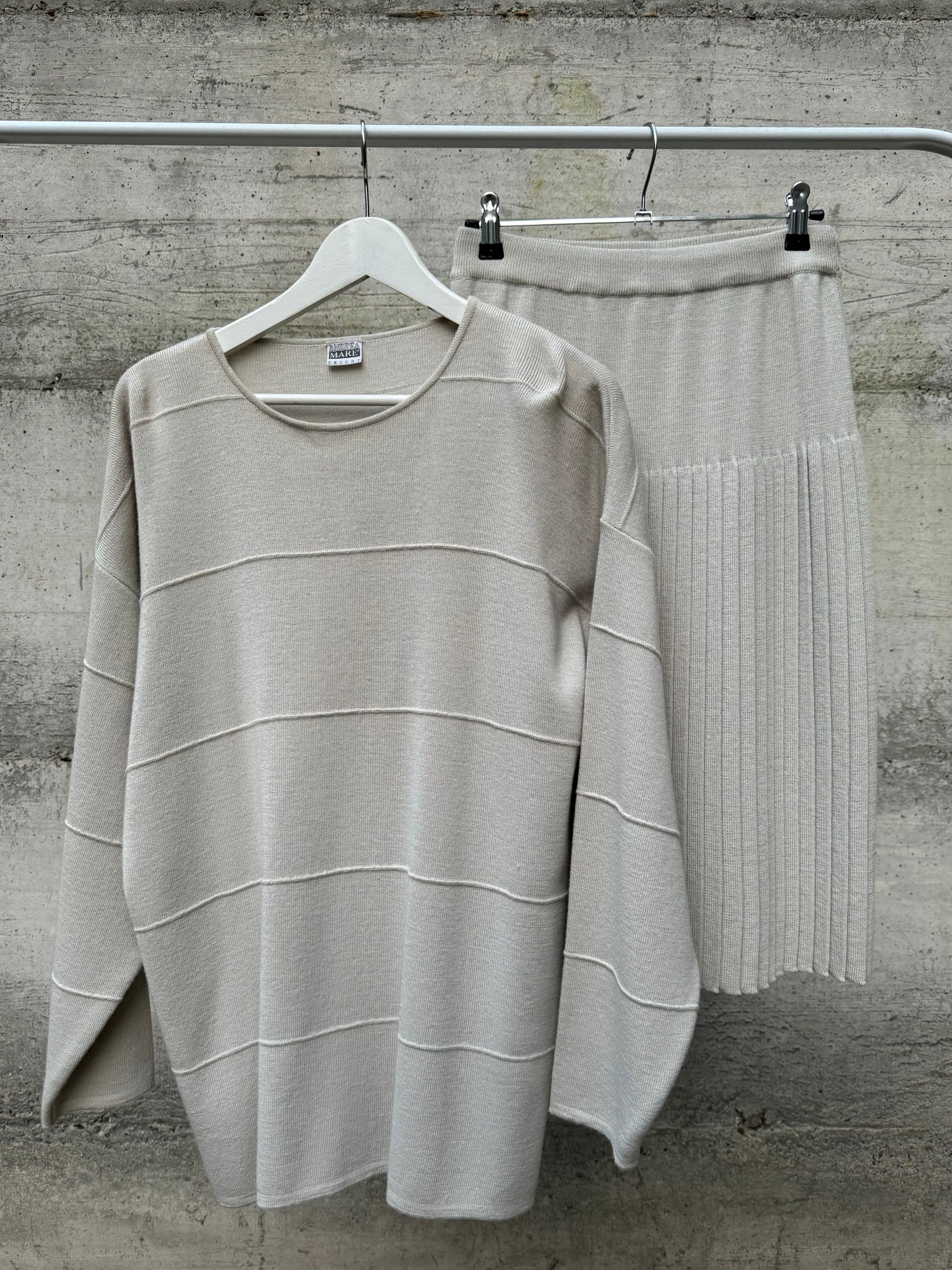 Completo in maglia sabbia, 50% lana merino, taglia M