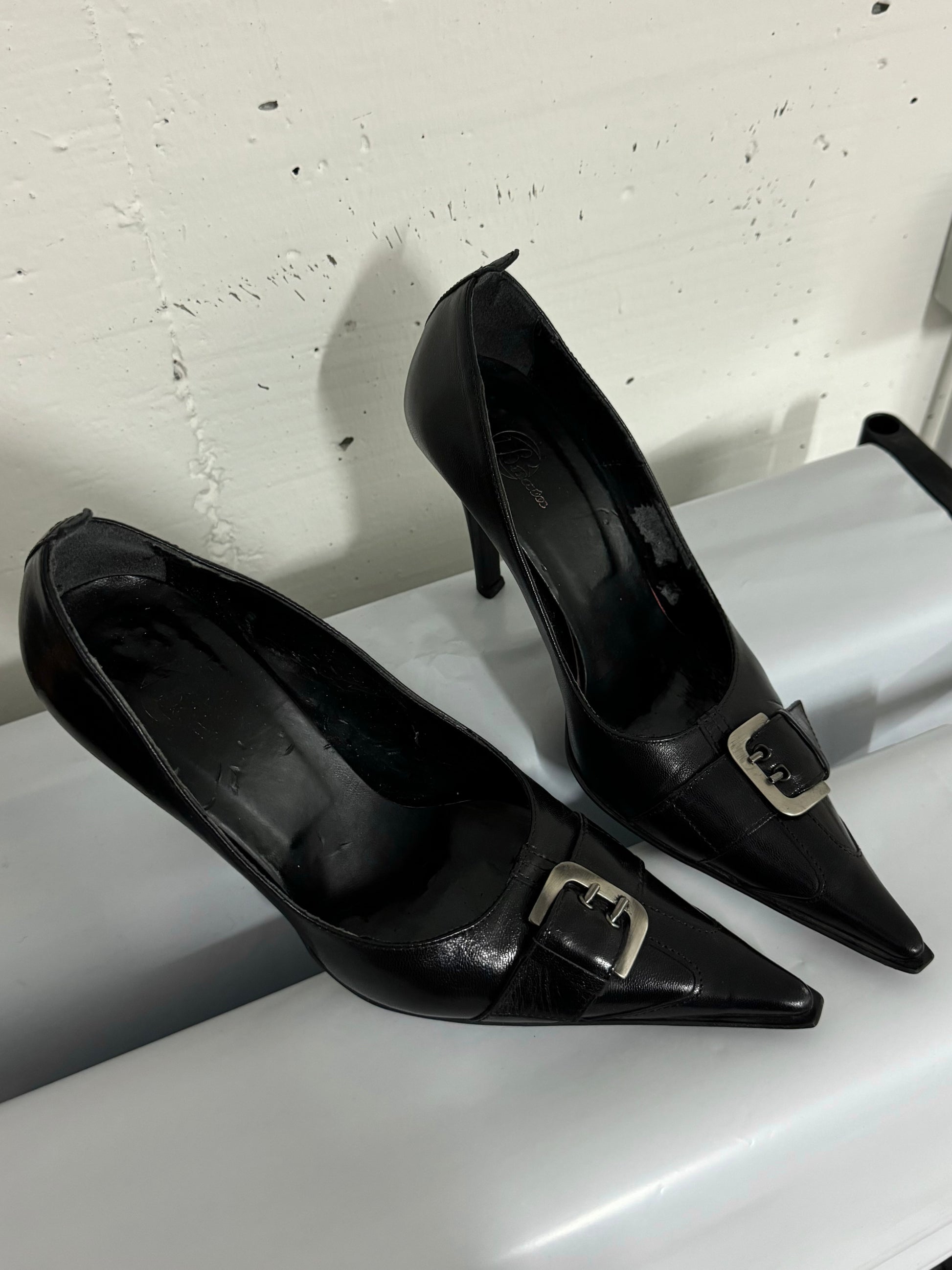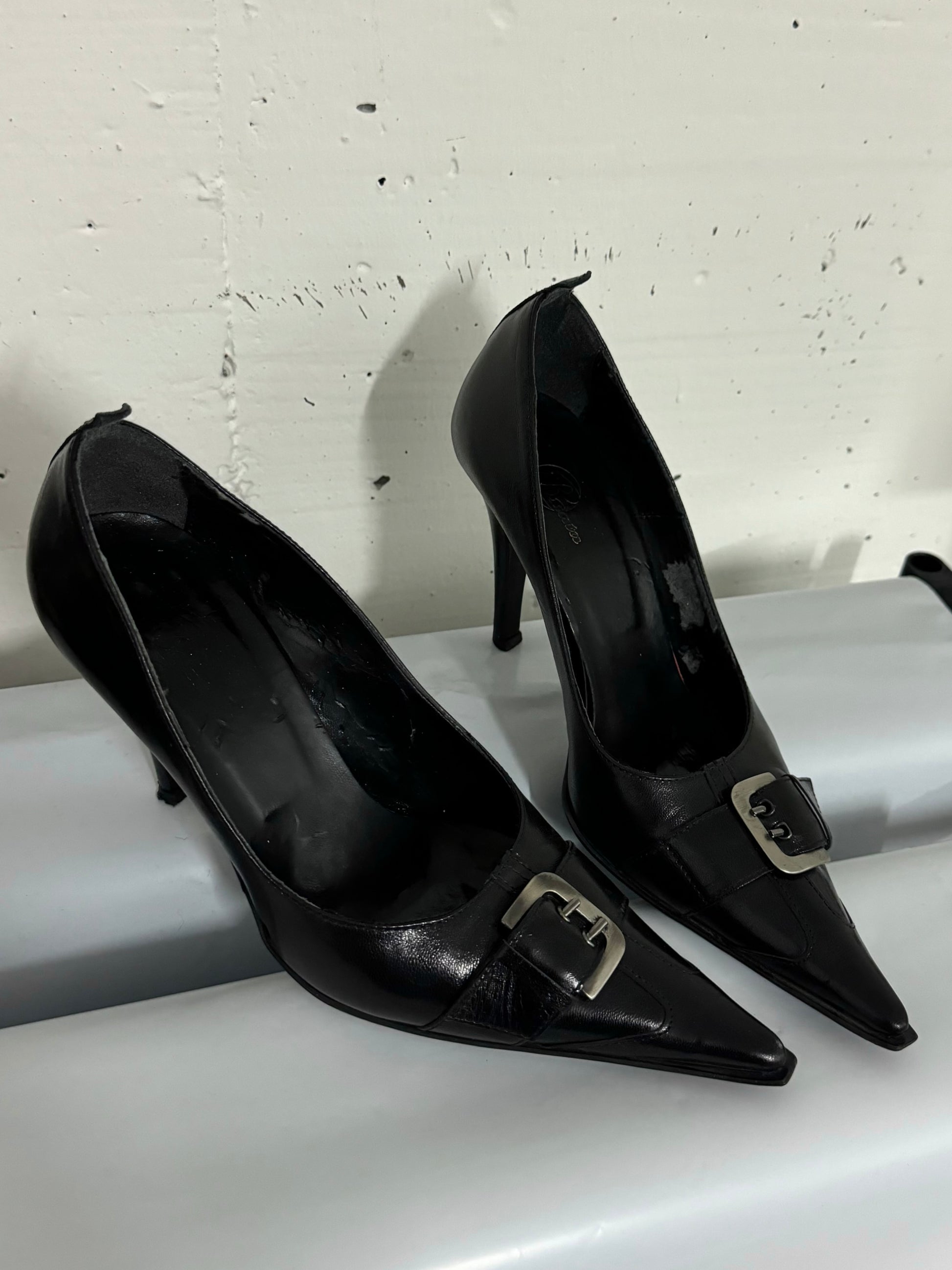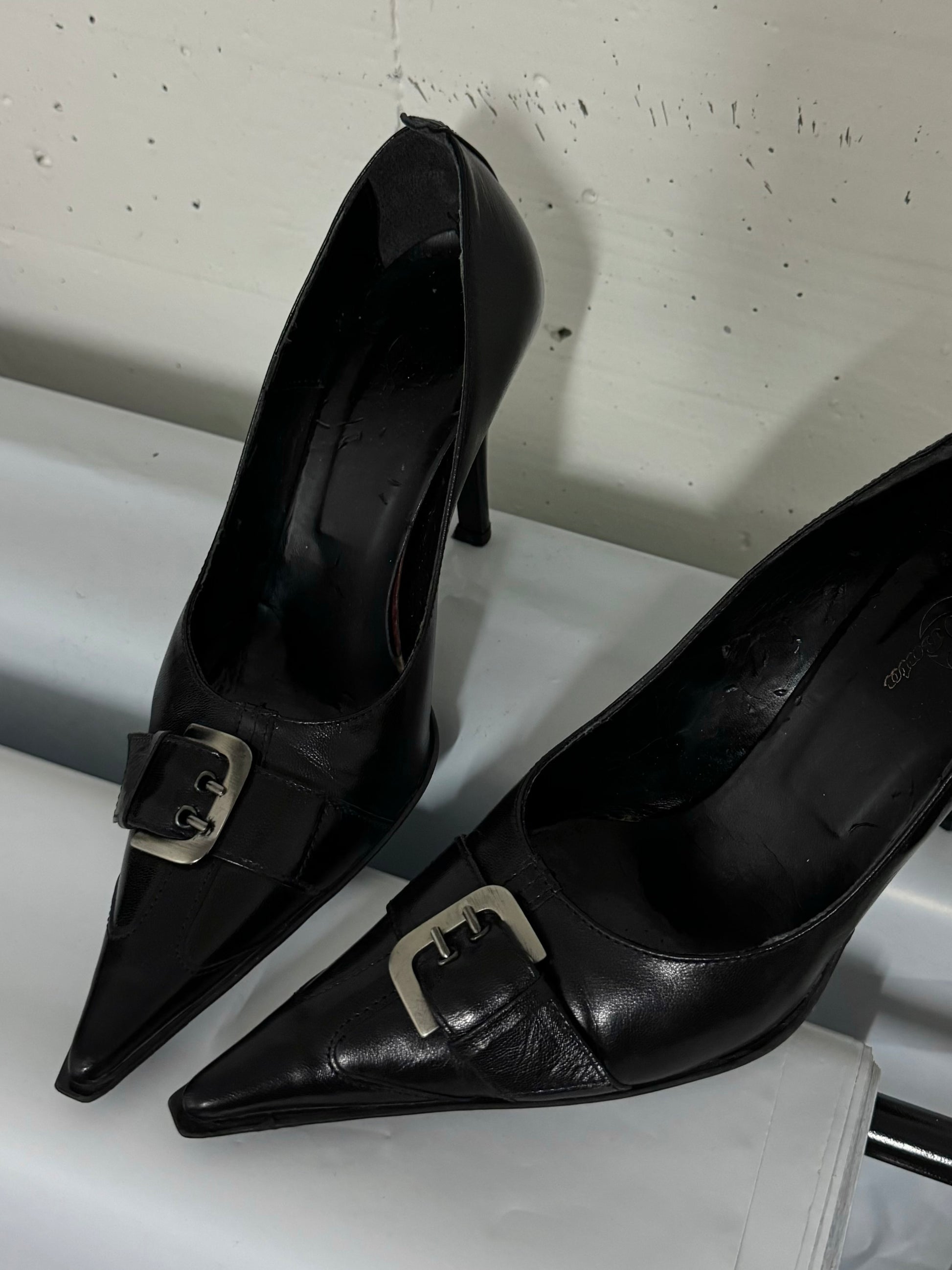 Decolletè vintage in vera pelle nere con fibbia, eu37
