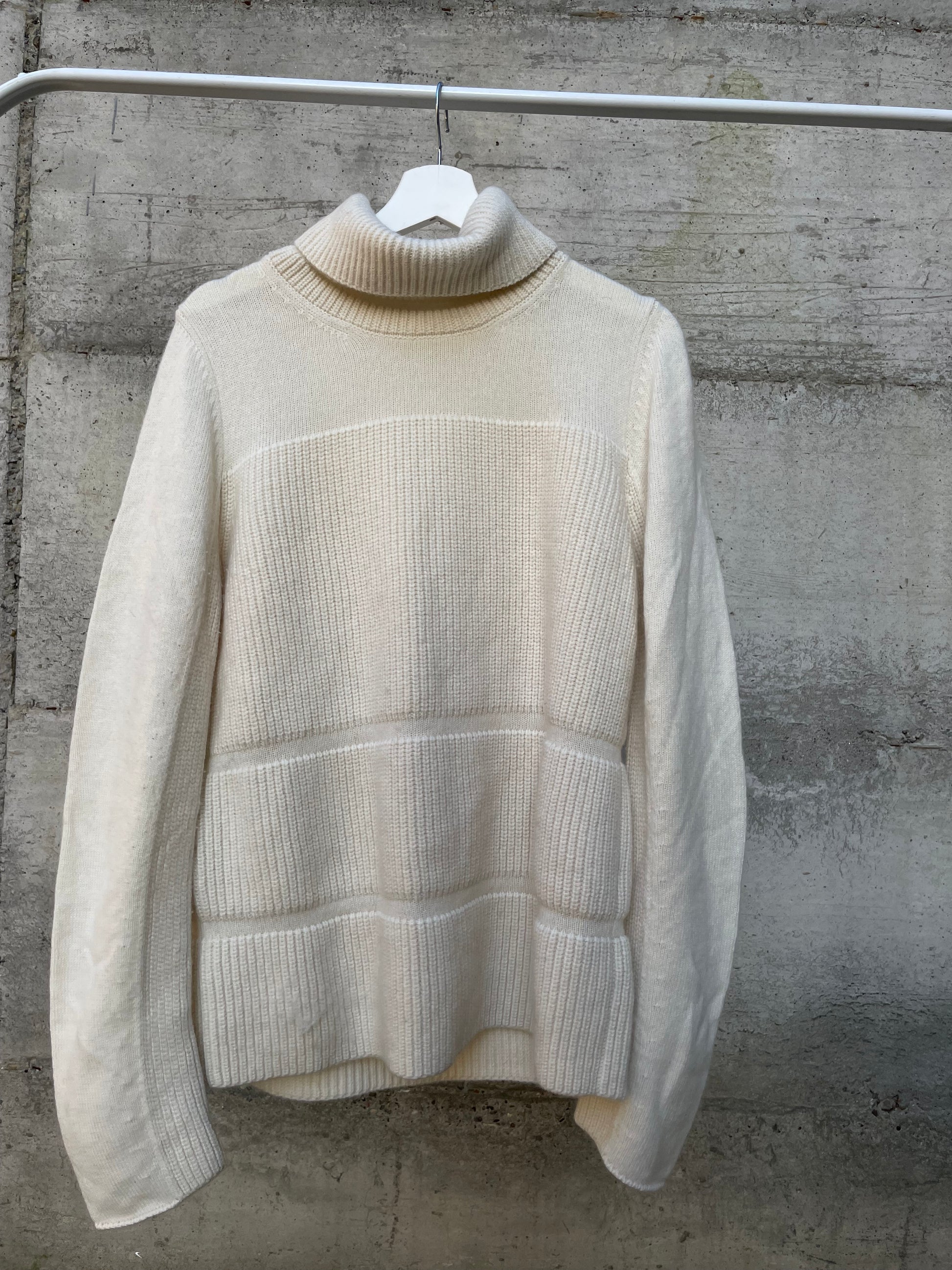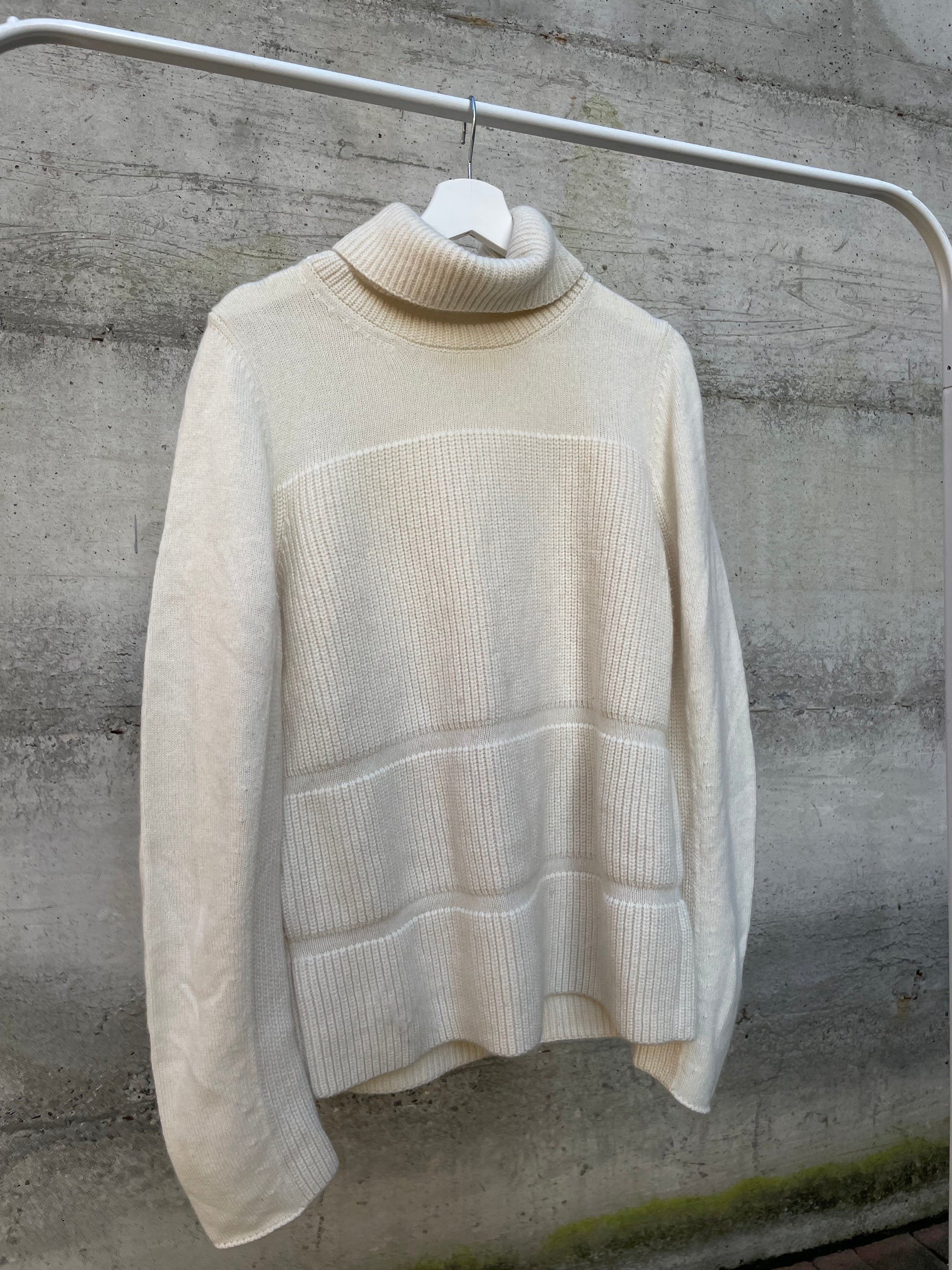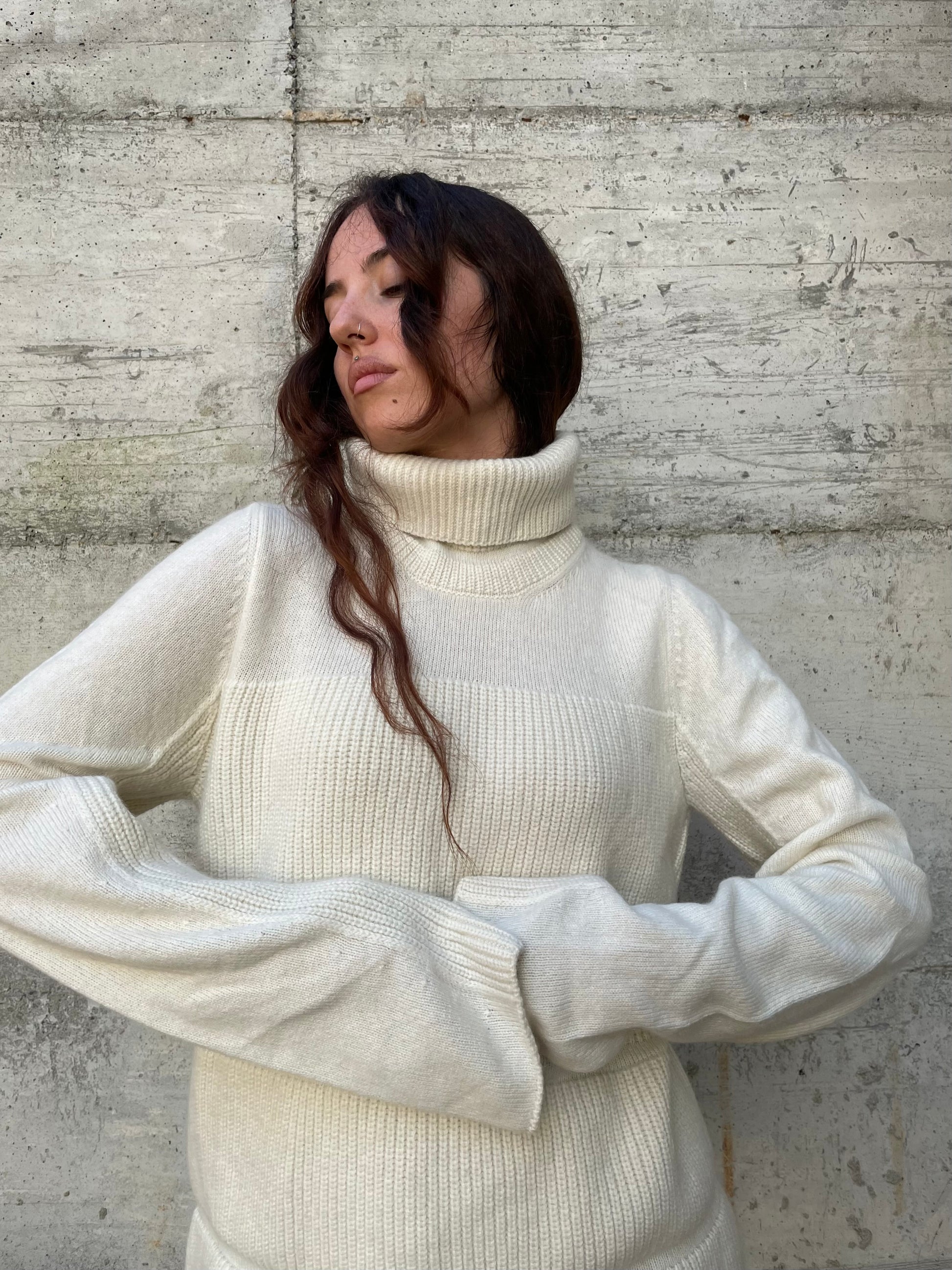 Pullover collo alto panna Liviana Conti, in pura lana vergine.