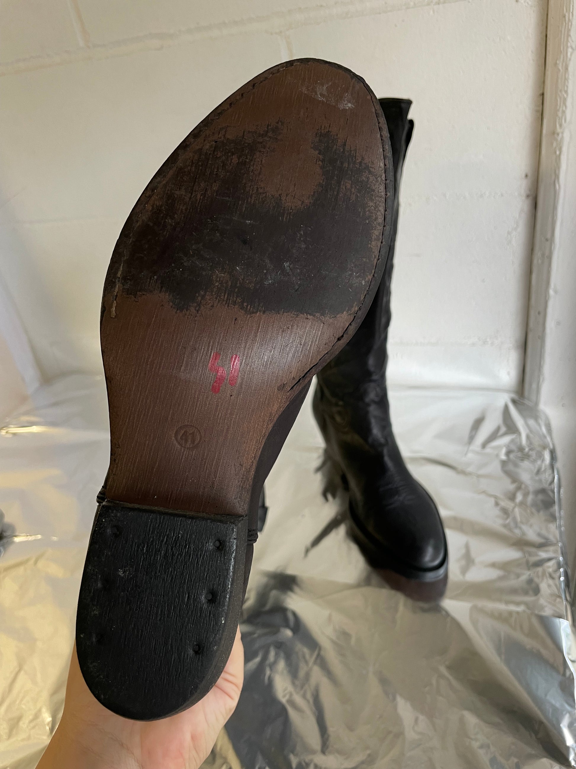 EU 41 - Texano vintage alto, vera pelle, punta arrotondata, tacco basso