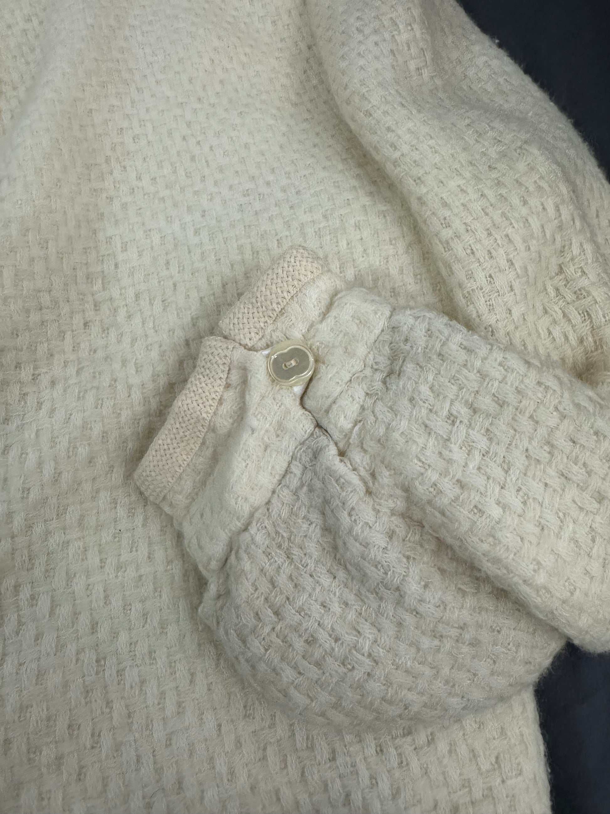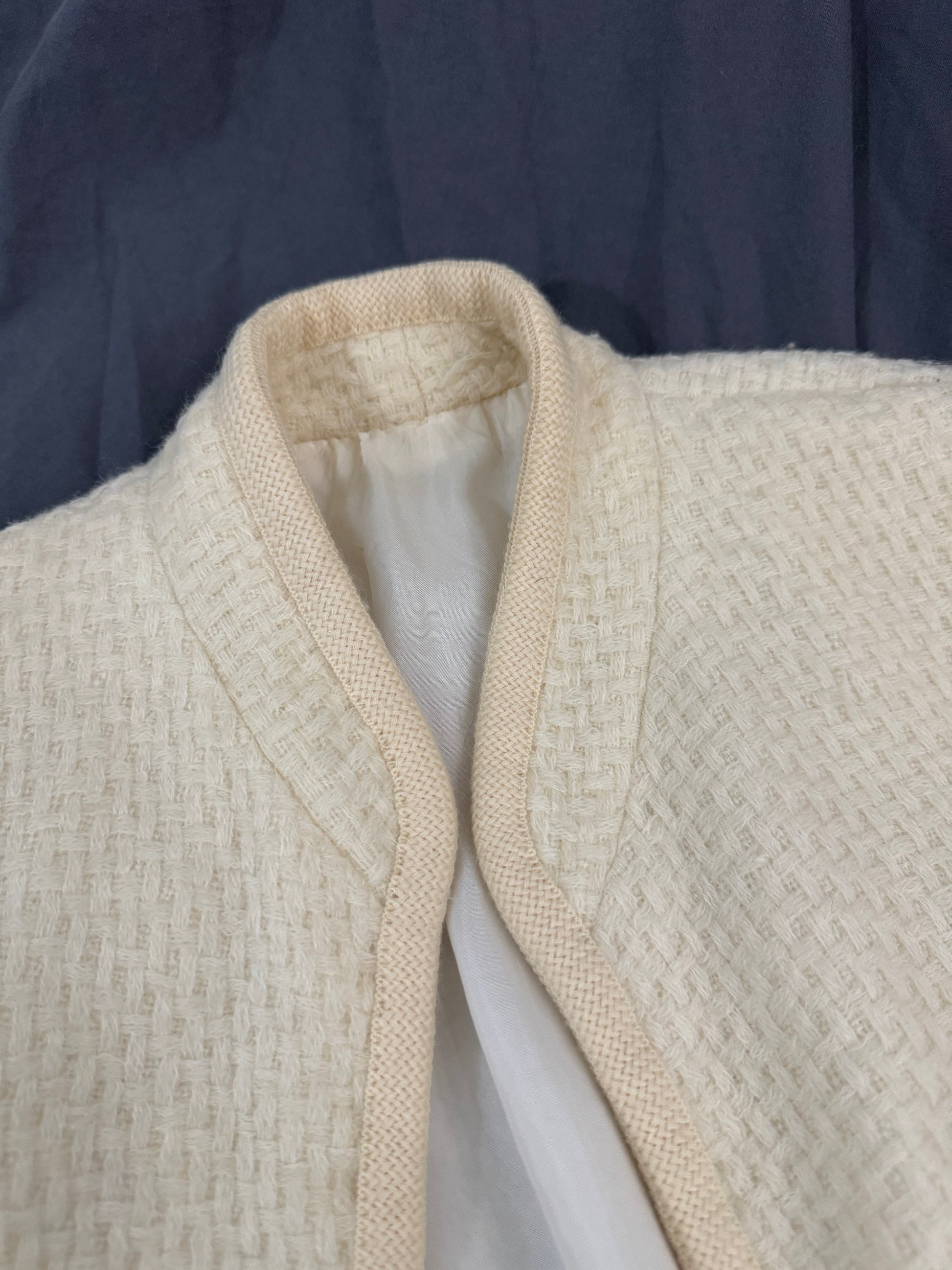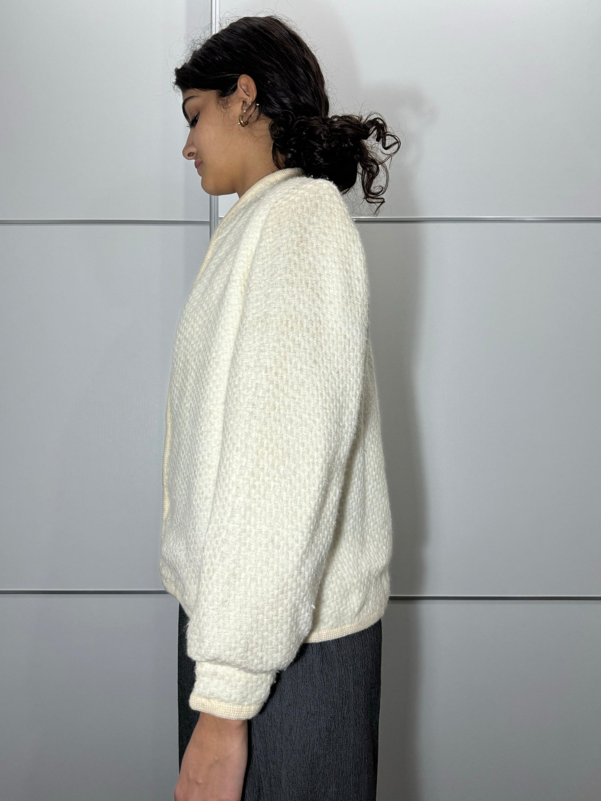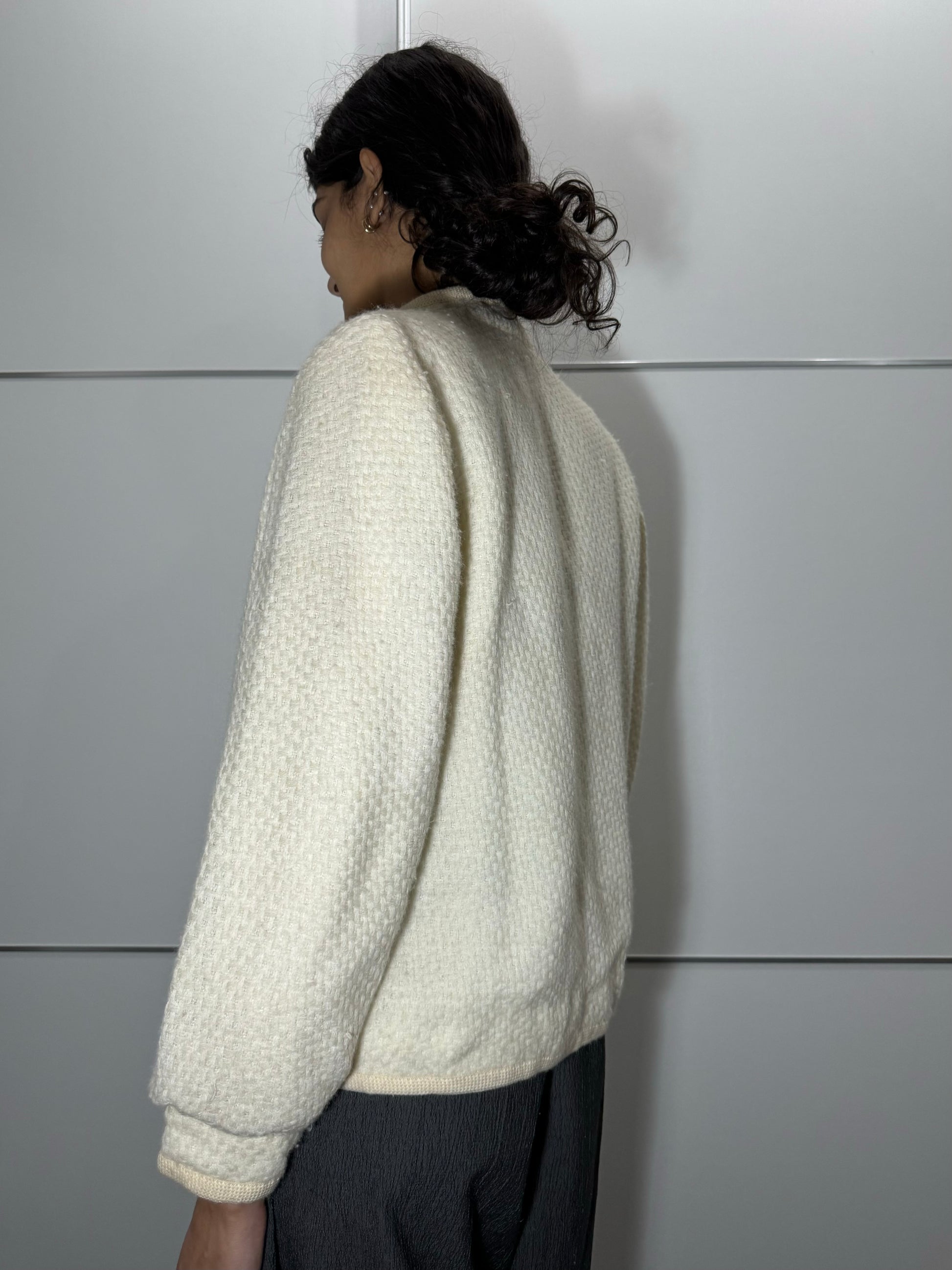 Giacchina bolero color burro lavorata e con bordino strutturato.