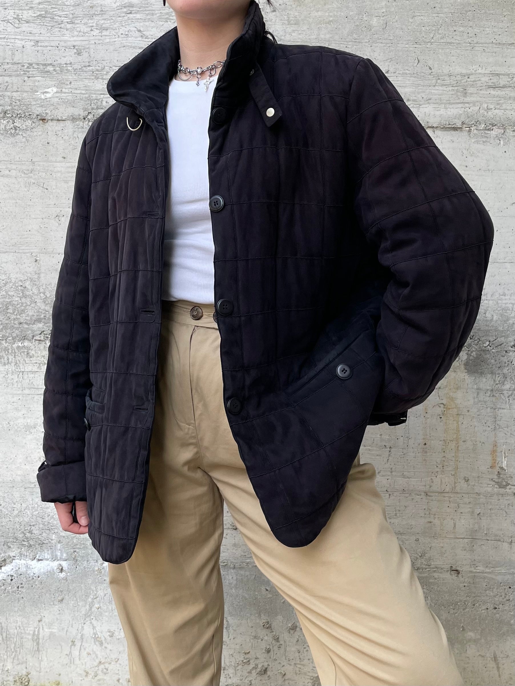 Giaccone nero trapuntato sintetico, mezza stagione.