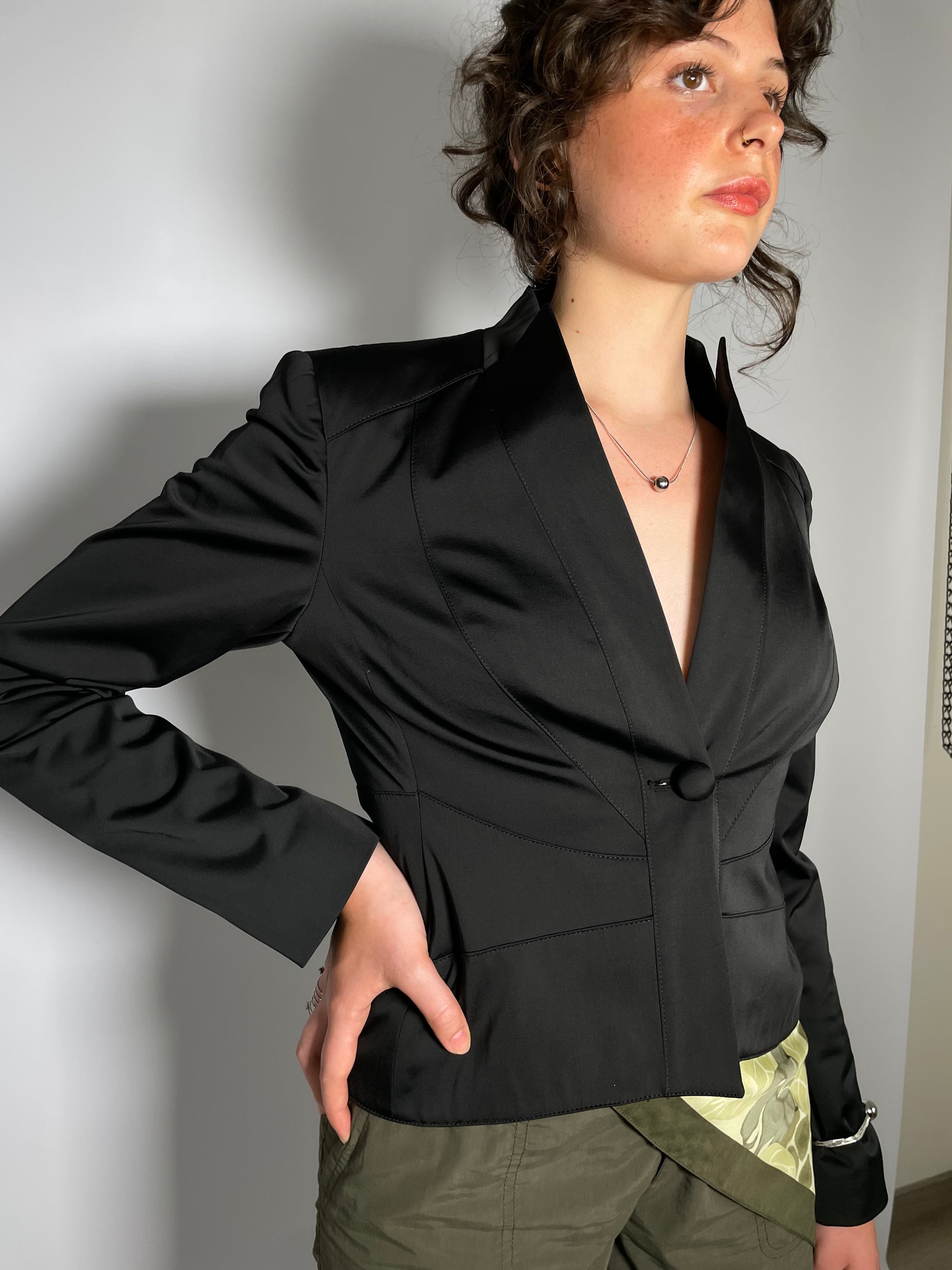 Giacchina raso nera Conbipel anni 90 - taglia S