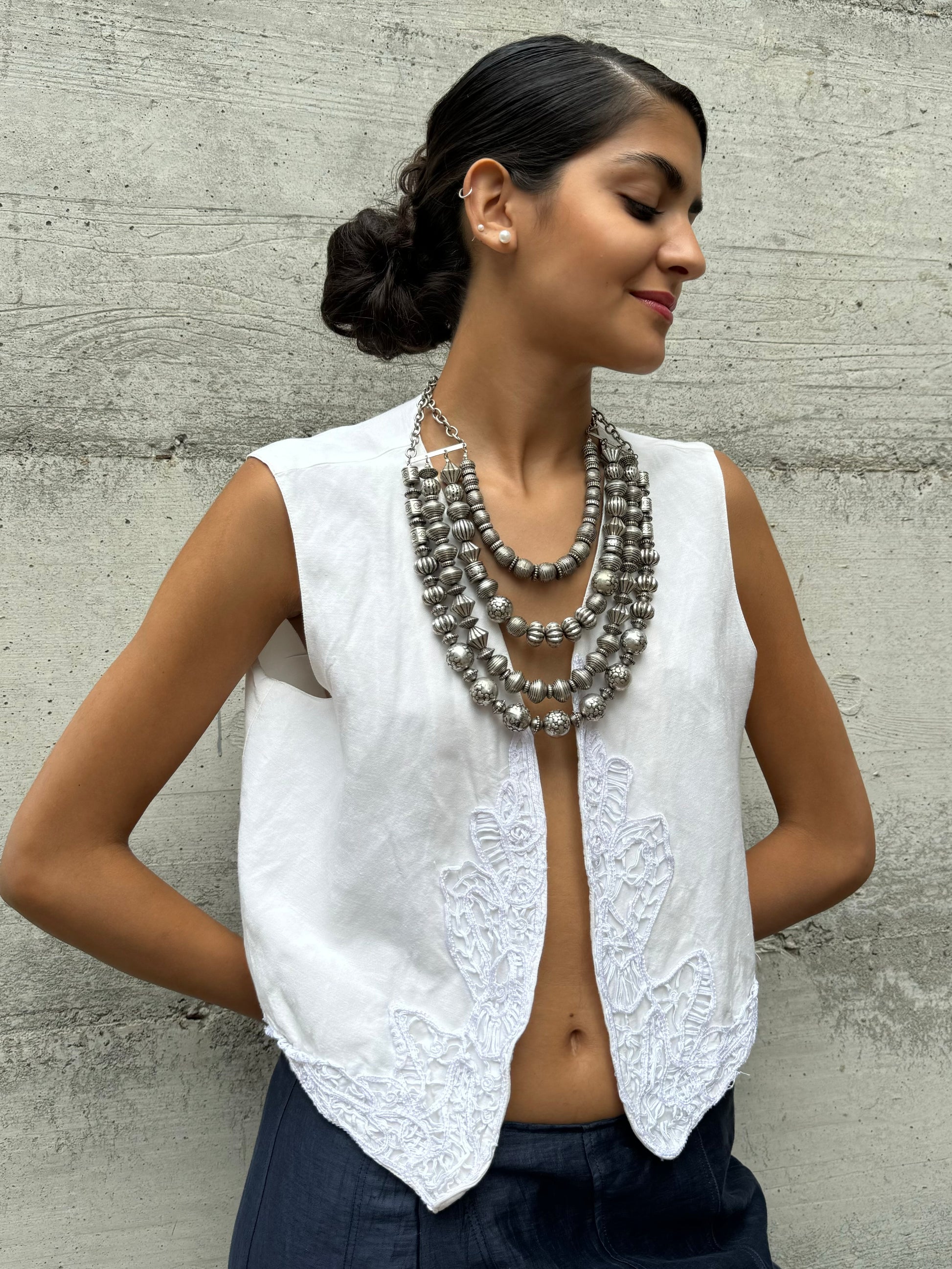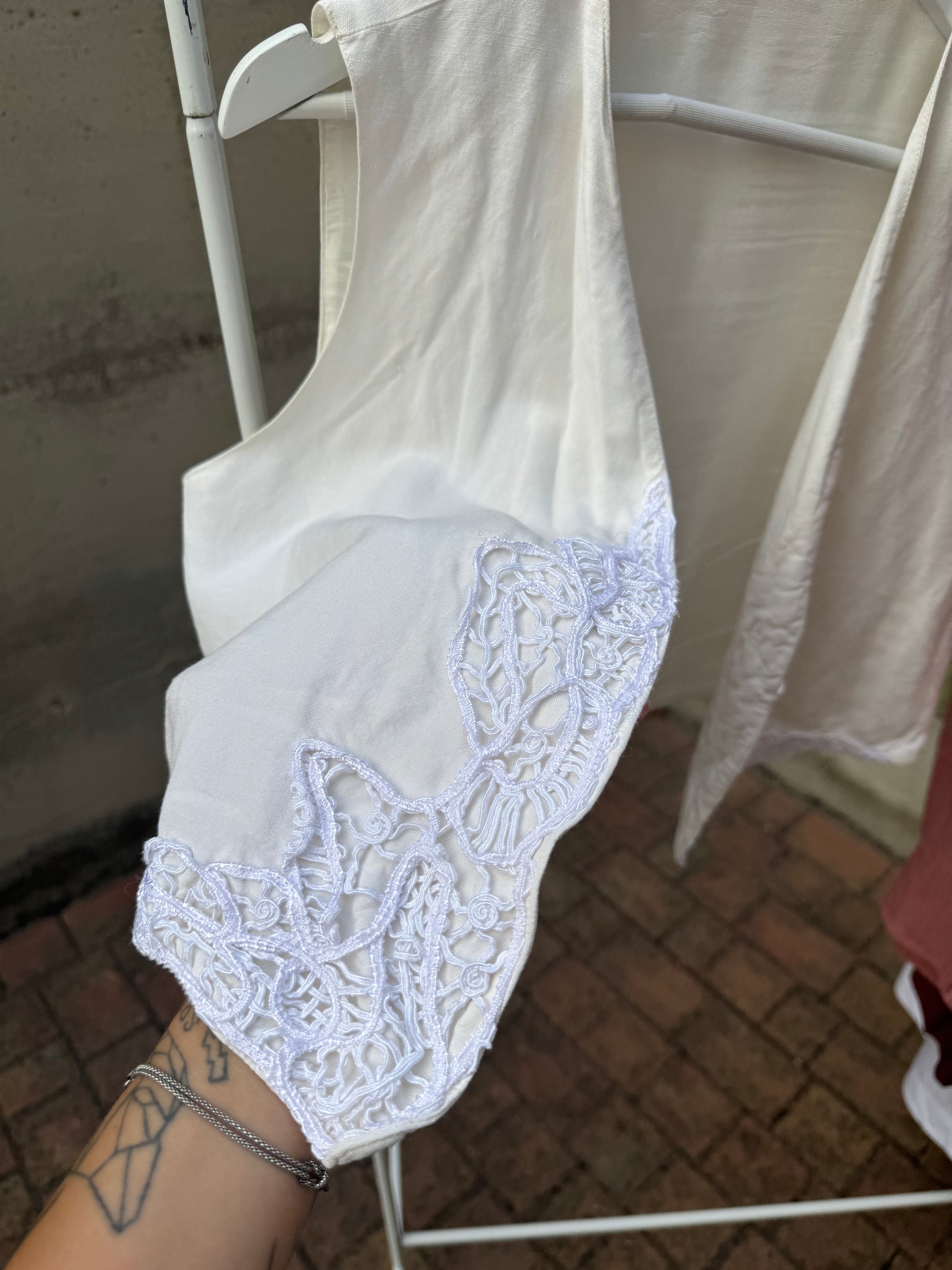 Gilet sartoriale in lino ricamato a mano, taglia M