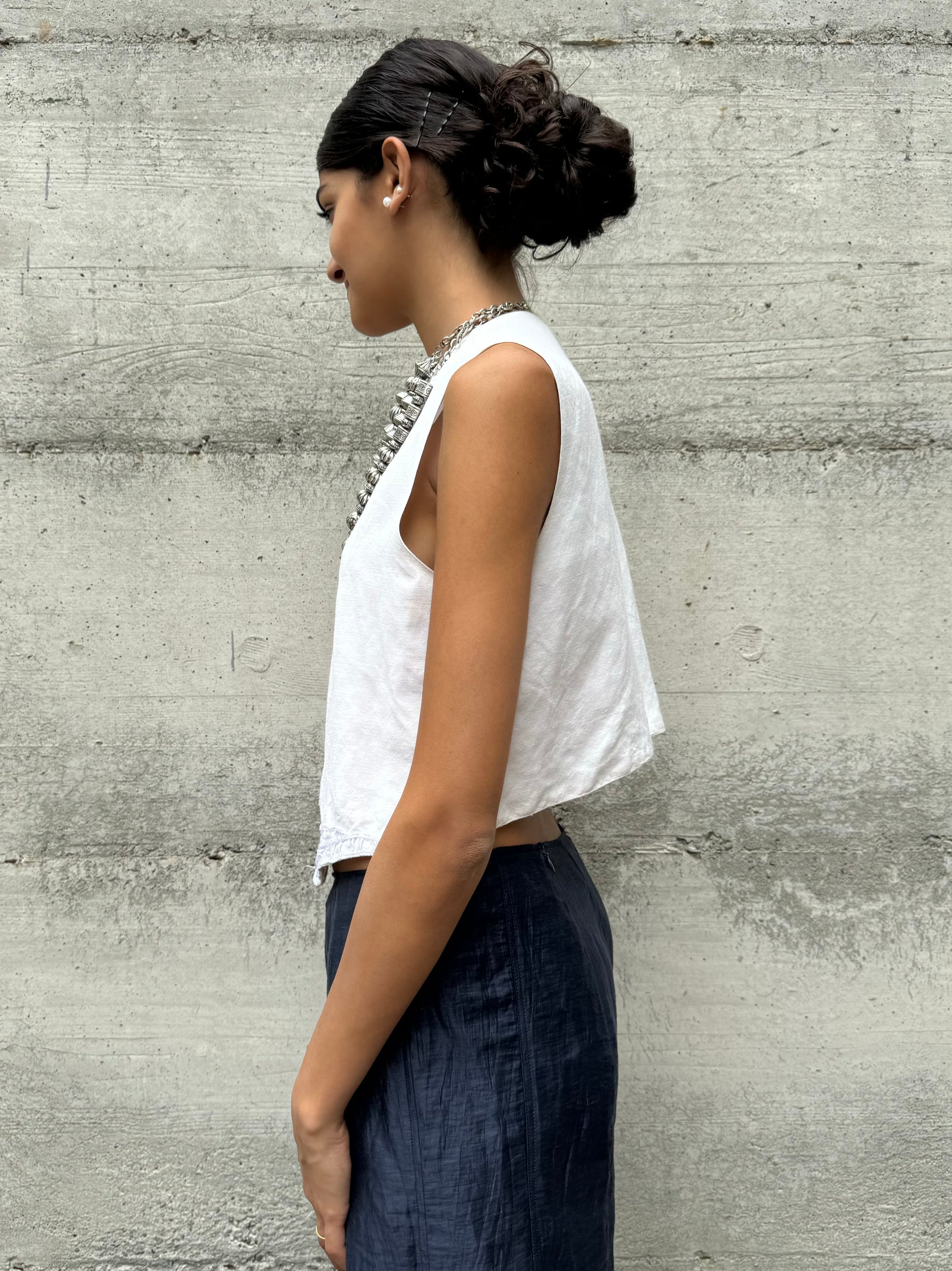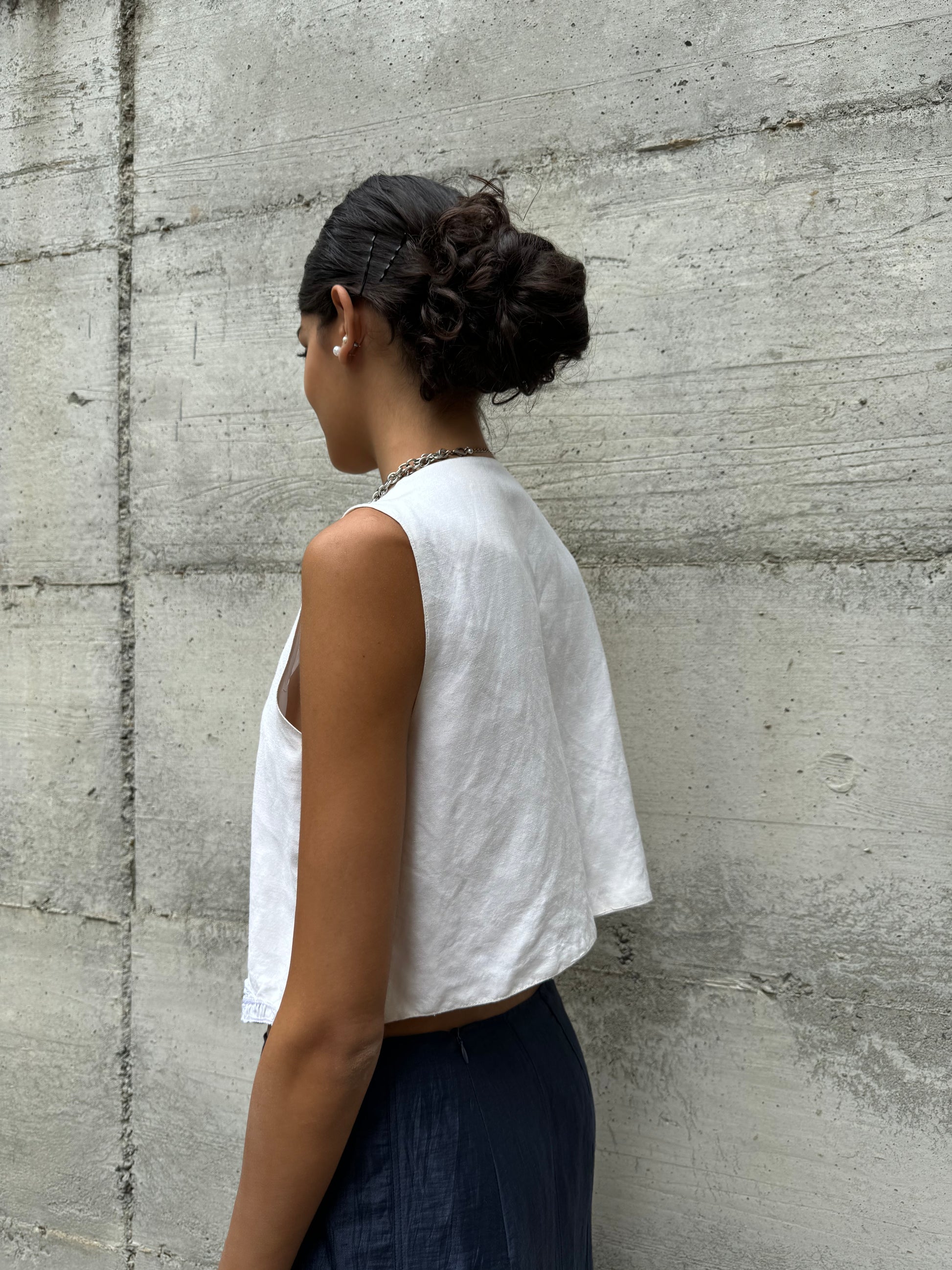 Gilet sartoriale deadstock in misto lino e viscosa.
