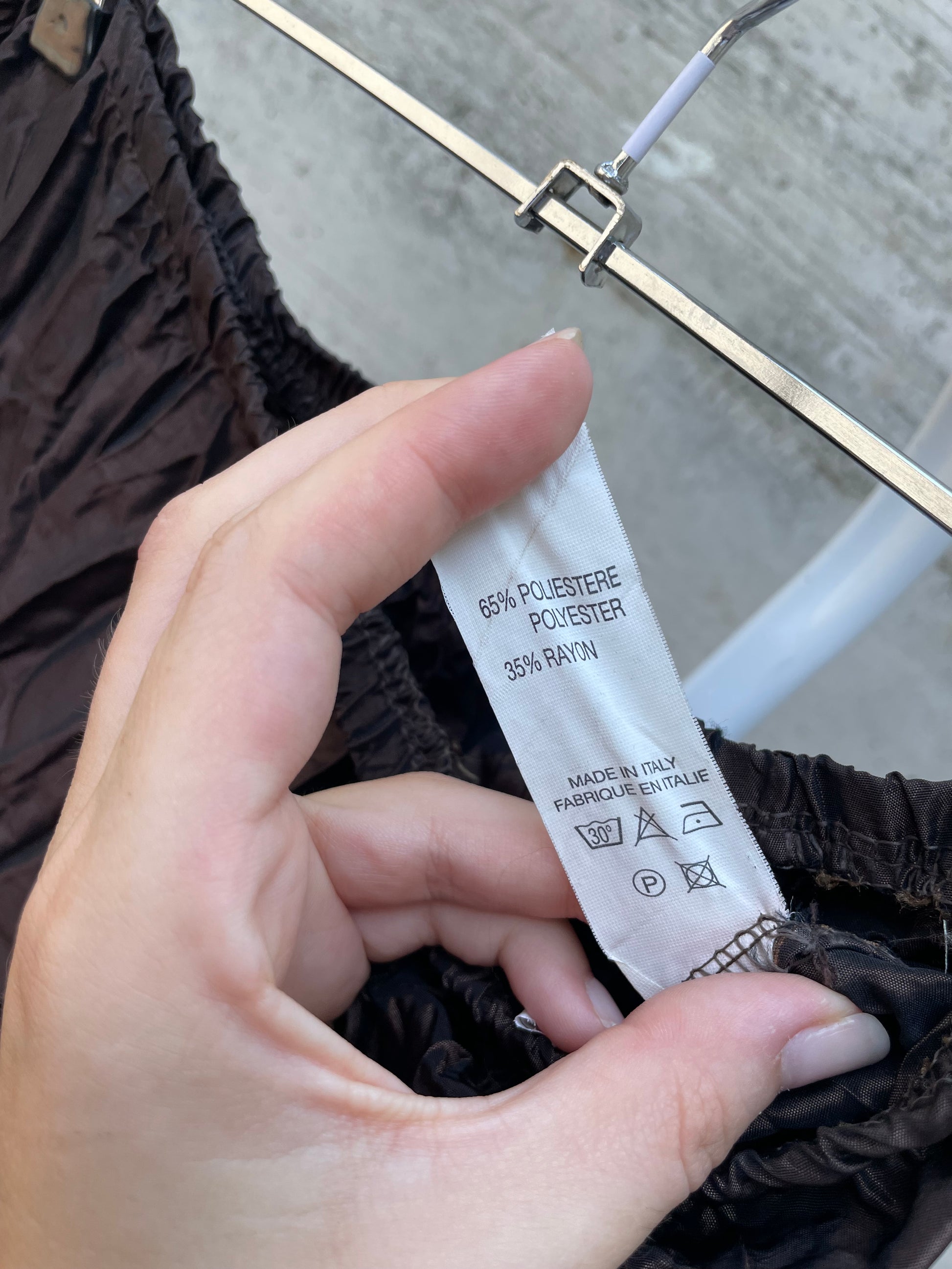Gonna lunga marrone in misto poly e rayon, made in Italy.