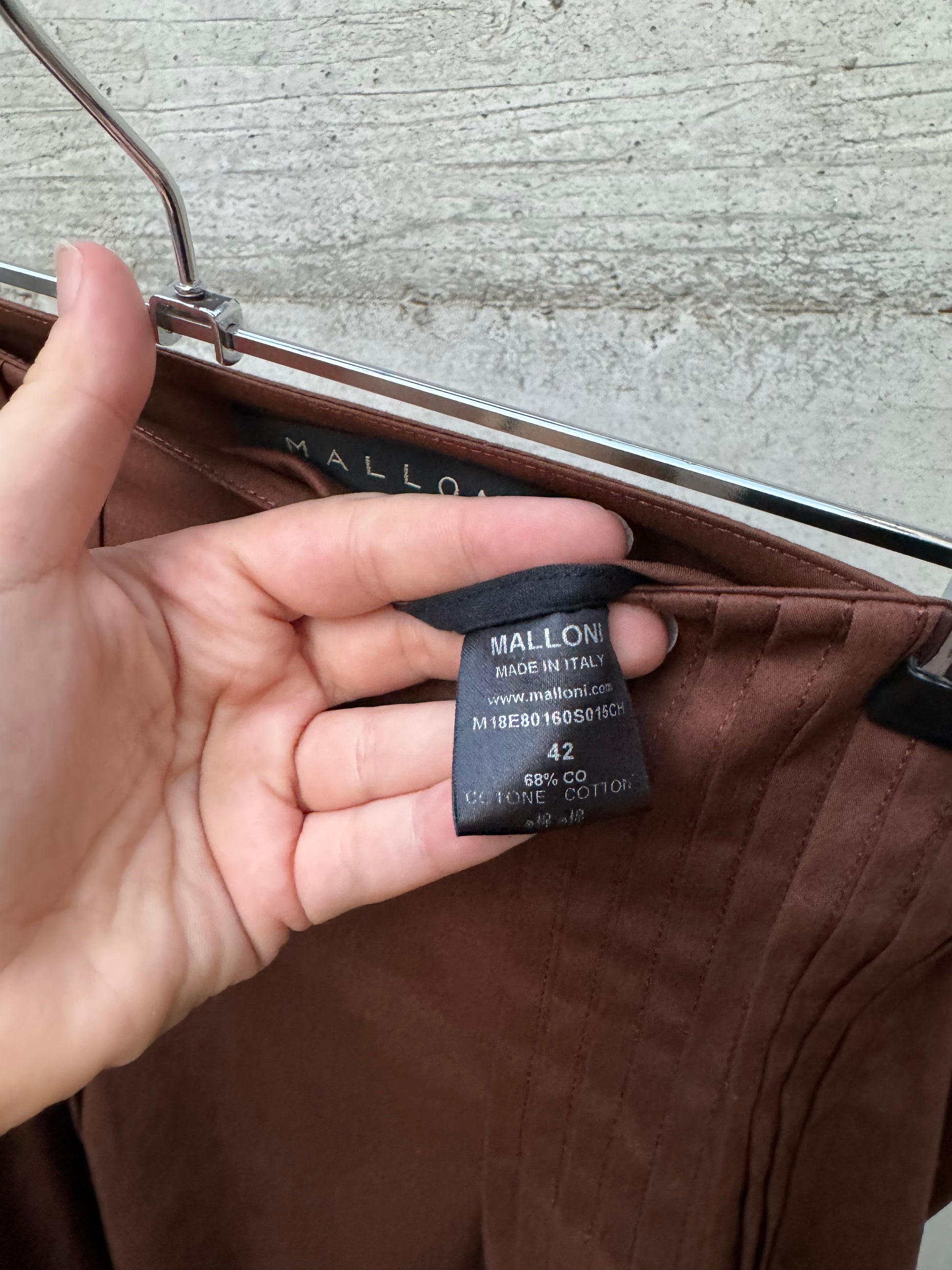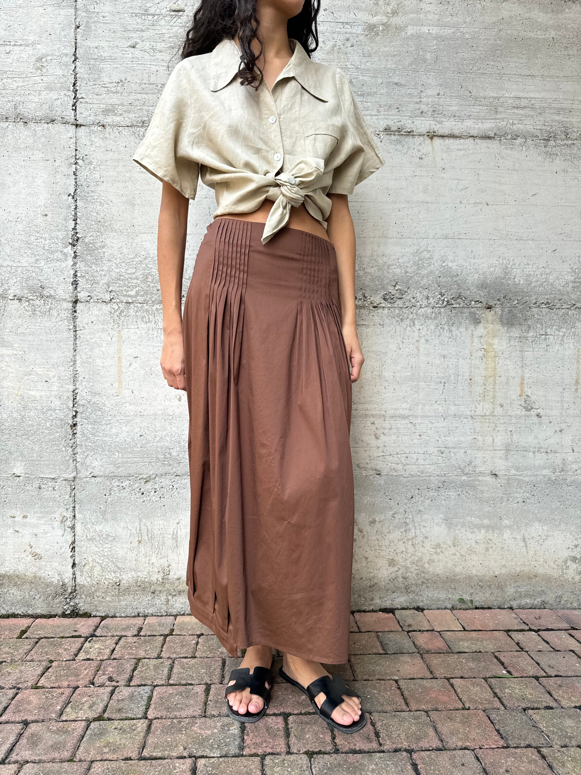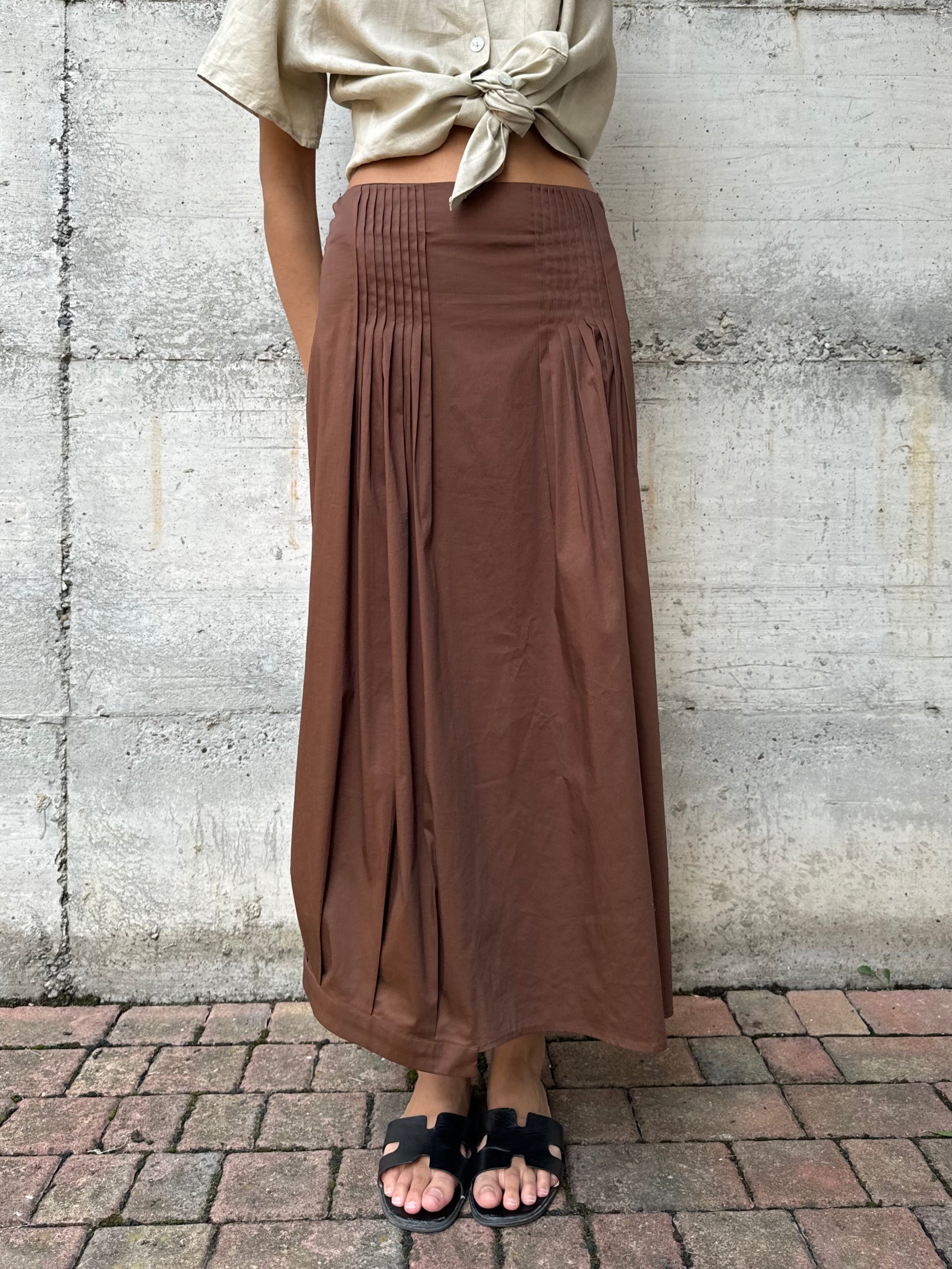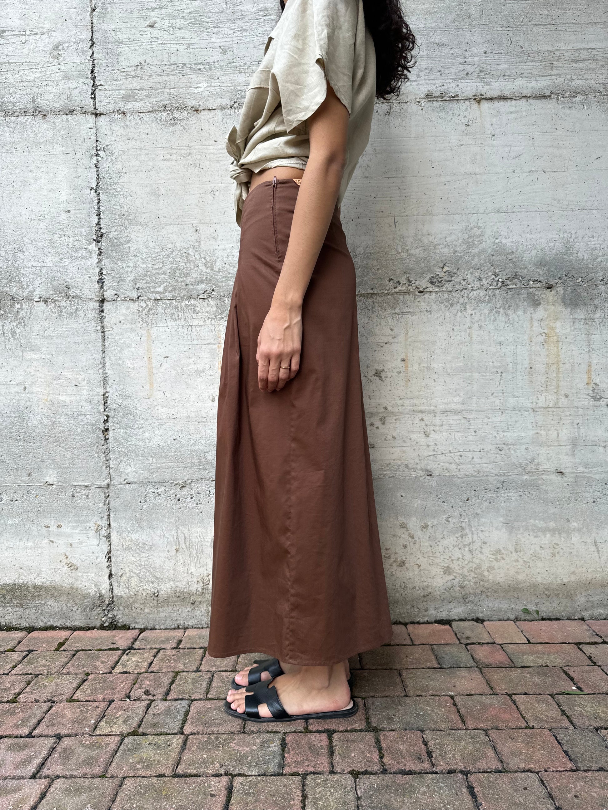 Gonna lunga cioccolato sartoriale Made in Italy in cotone.
