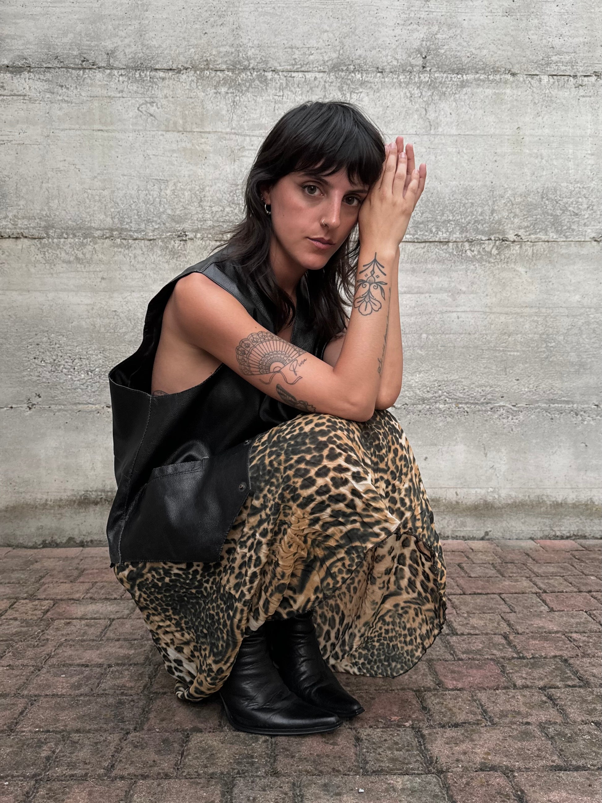Gonna animalier anni 2000 in crepe di viscosa stretch.