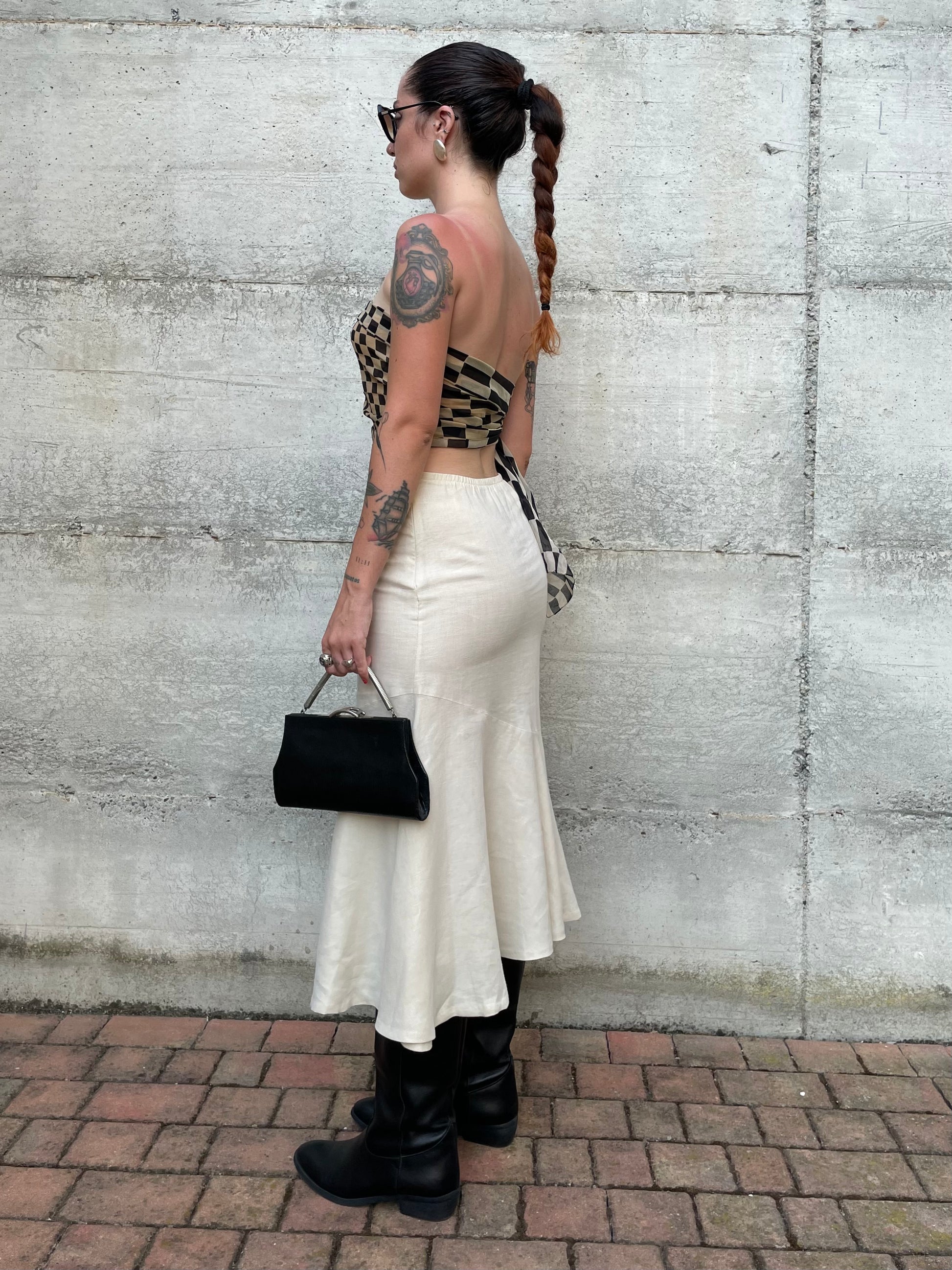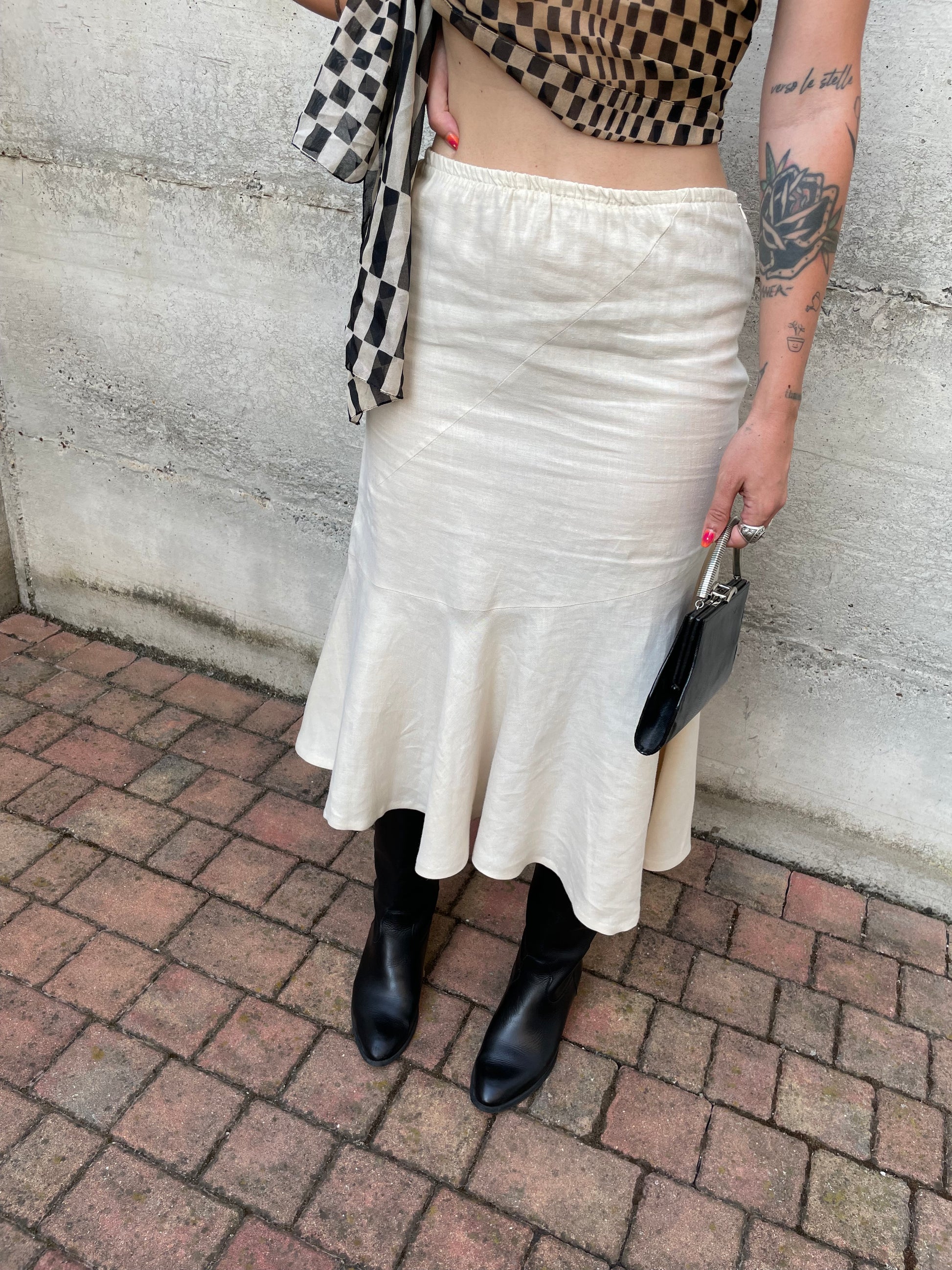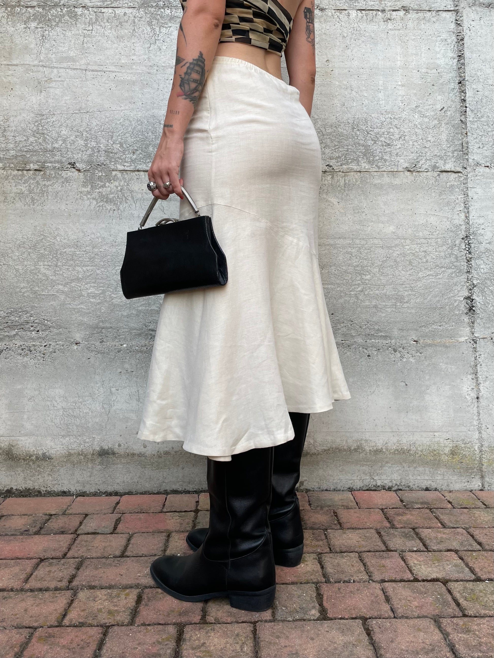 Gonna Y2K midi burro 100% lino, sartoriale Made in Italy, taglia 40it