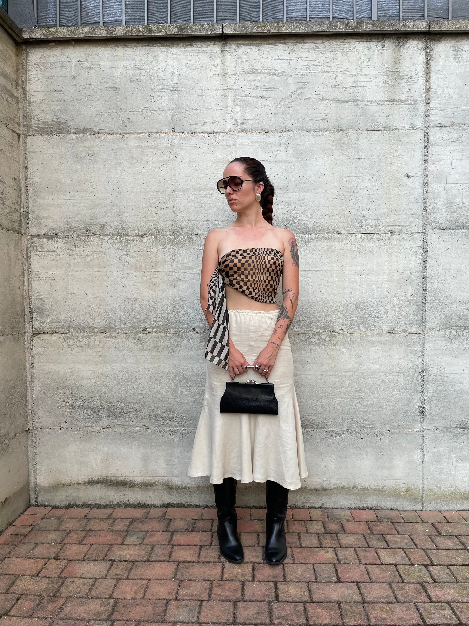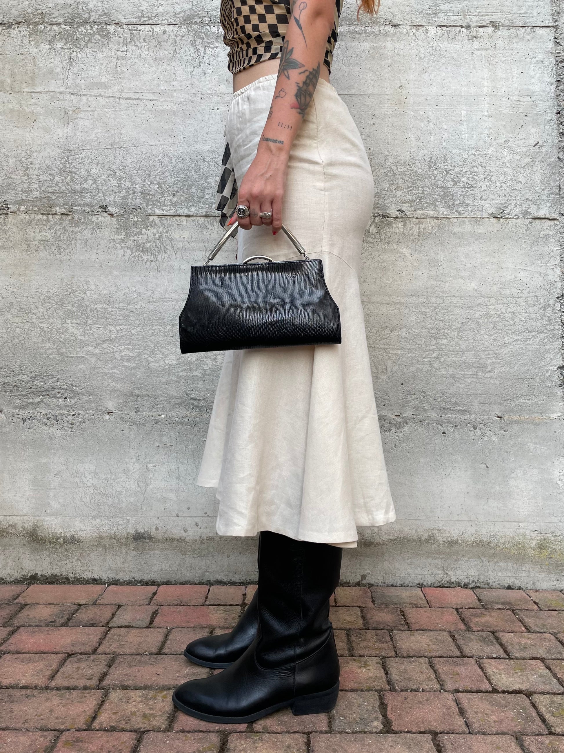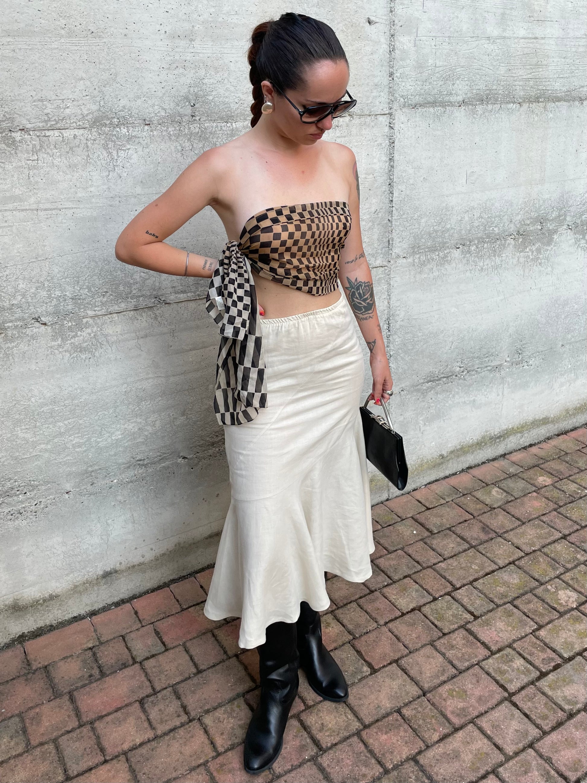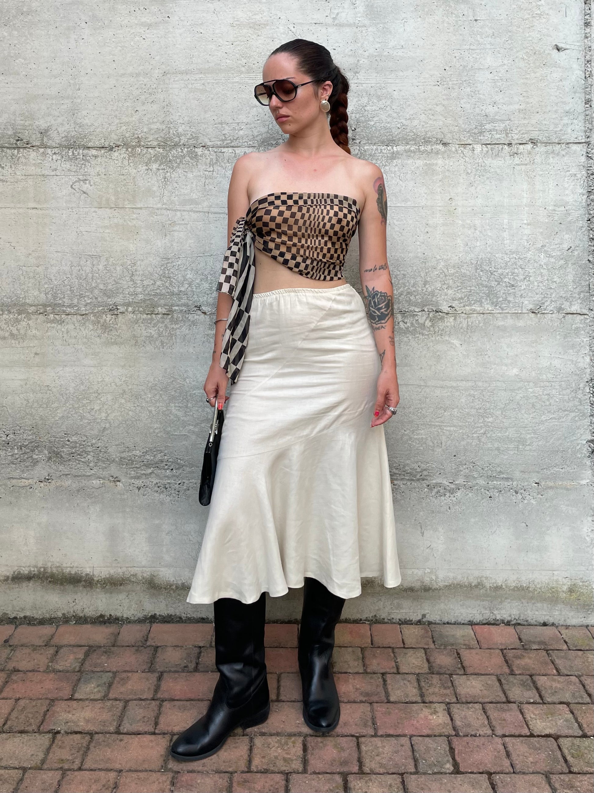 Gonna Y2K midi burro 100% lino, sartoriale Made in Italy, taglia 40it