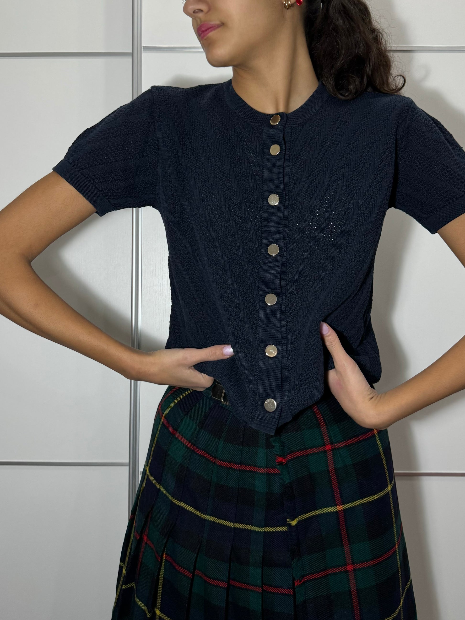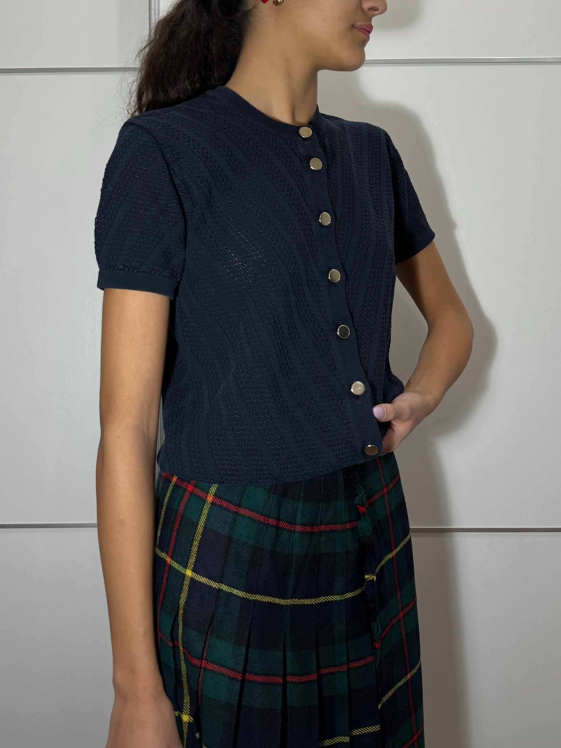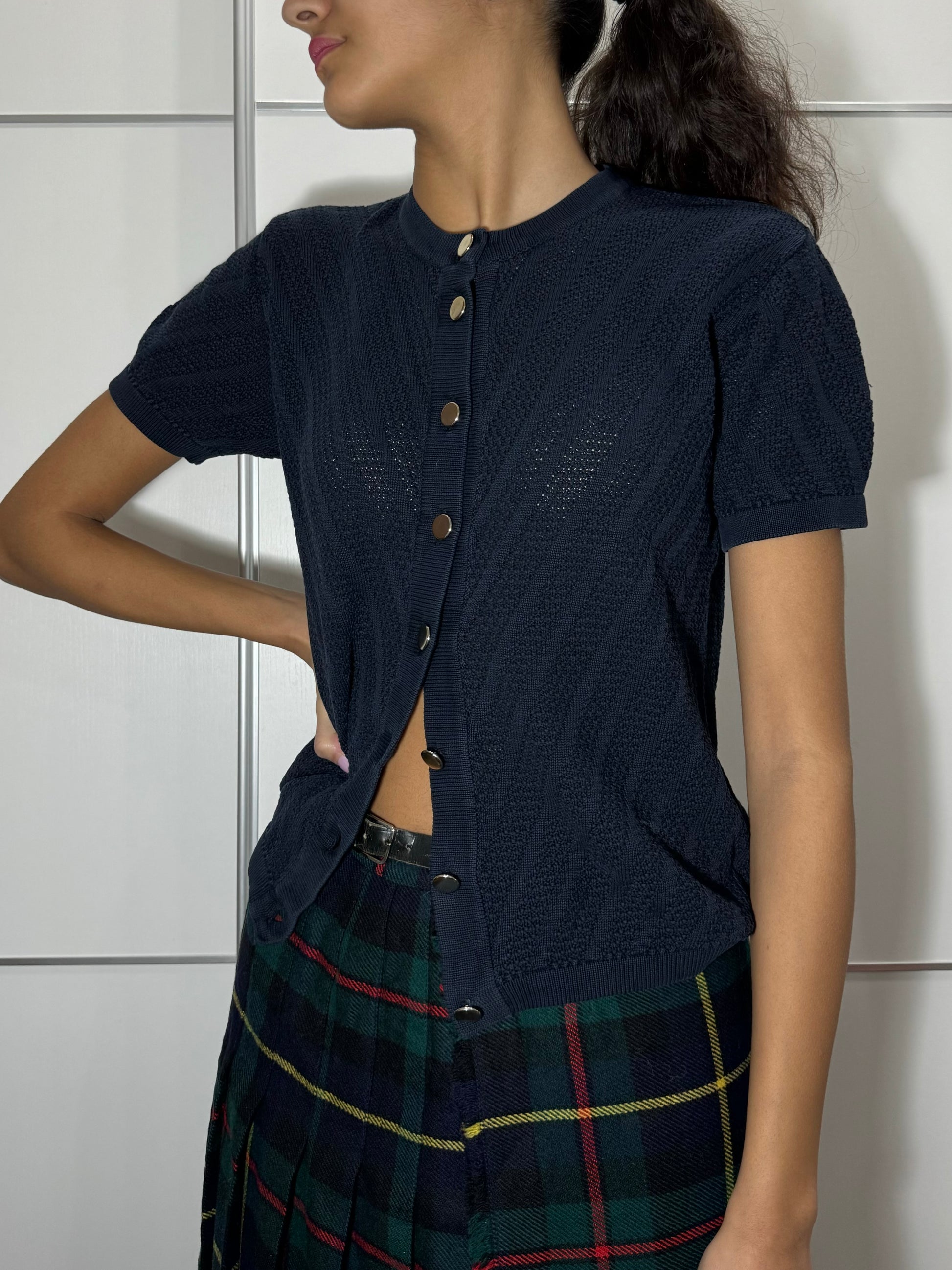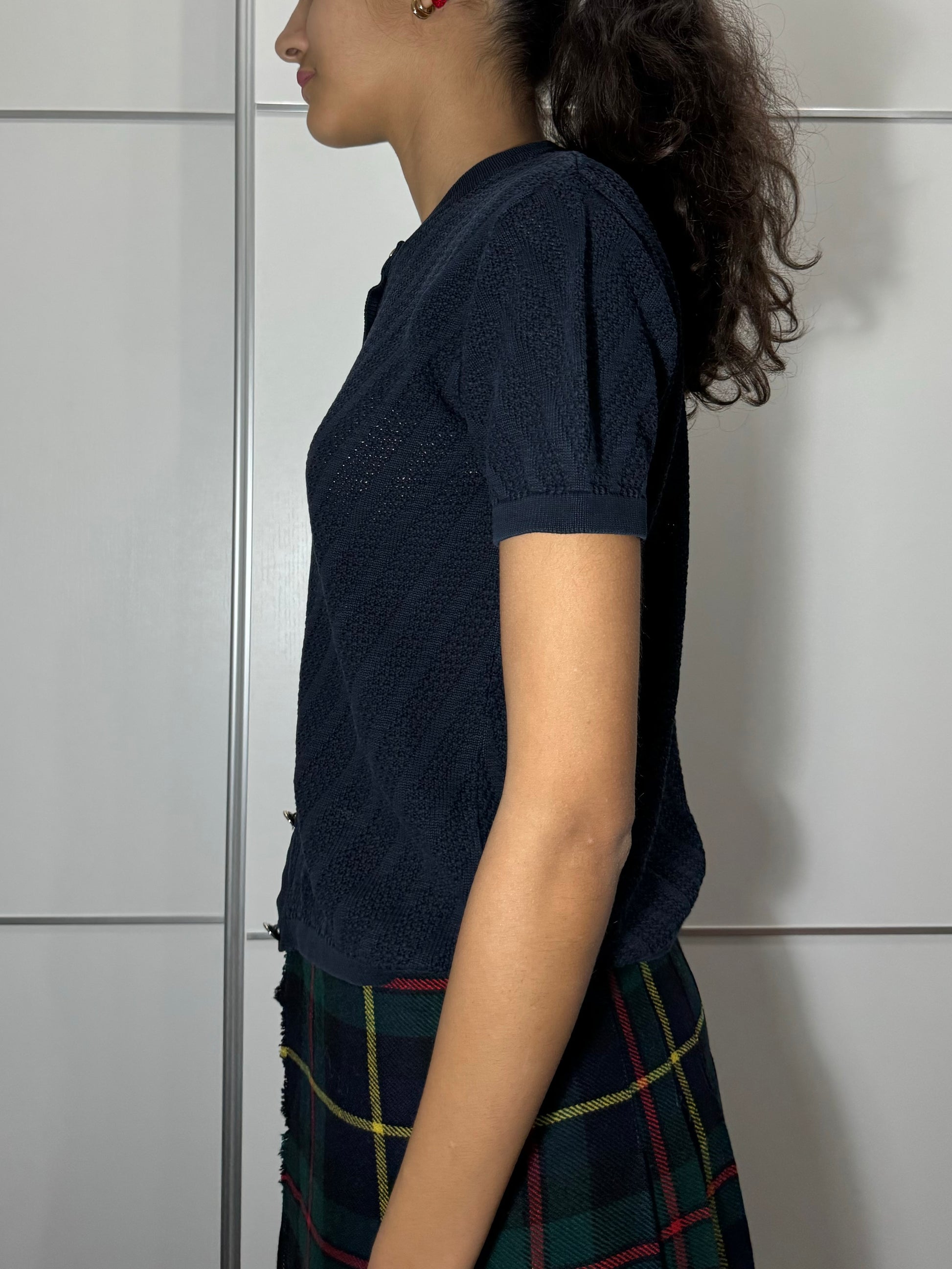 Maglioncino a manica corta girocollo Burghi blu notte, 100% cotone