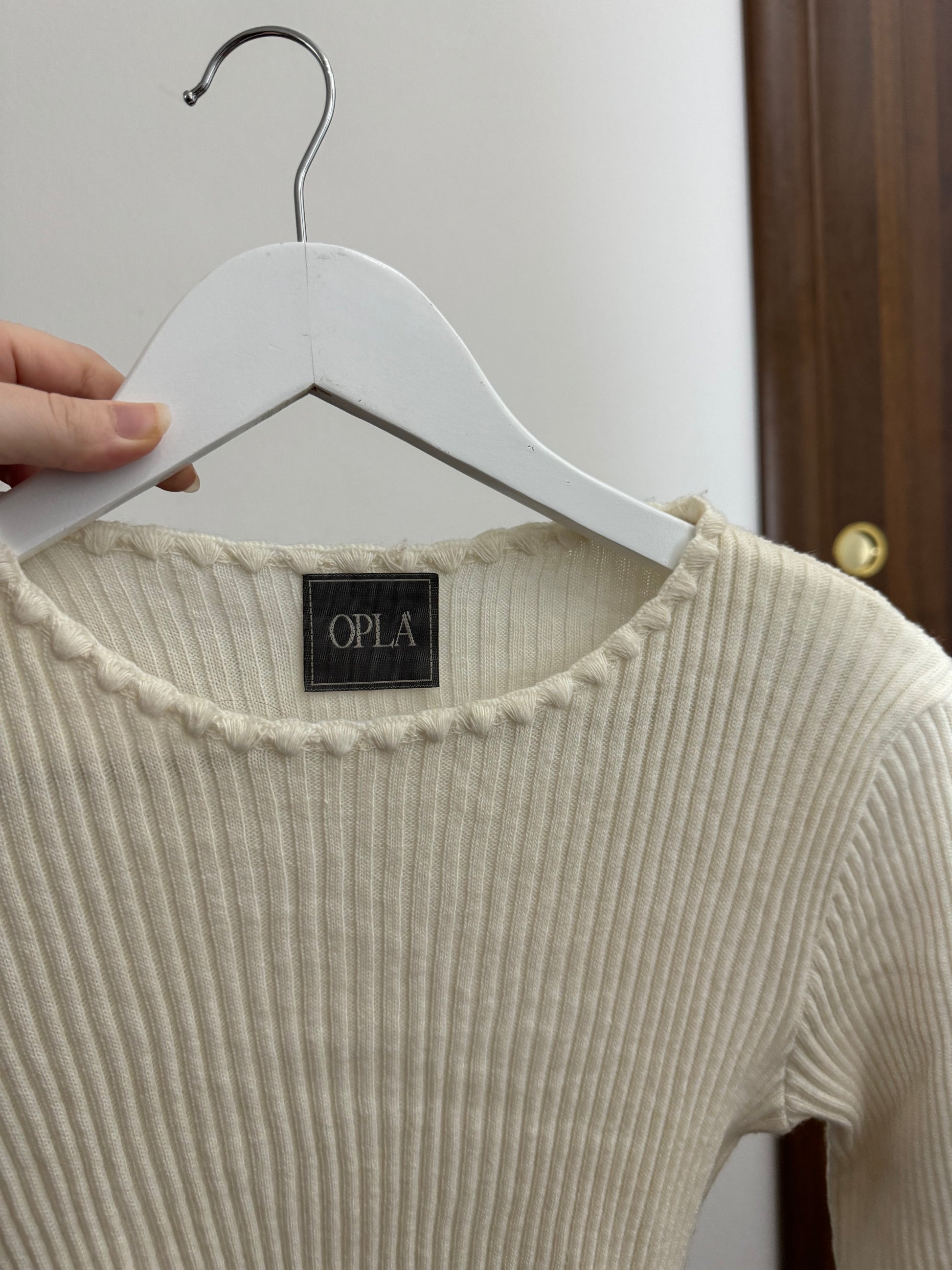 Maglioncino stretch sottogiacca color latte a costine.