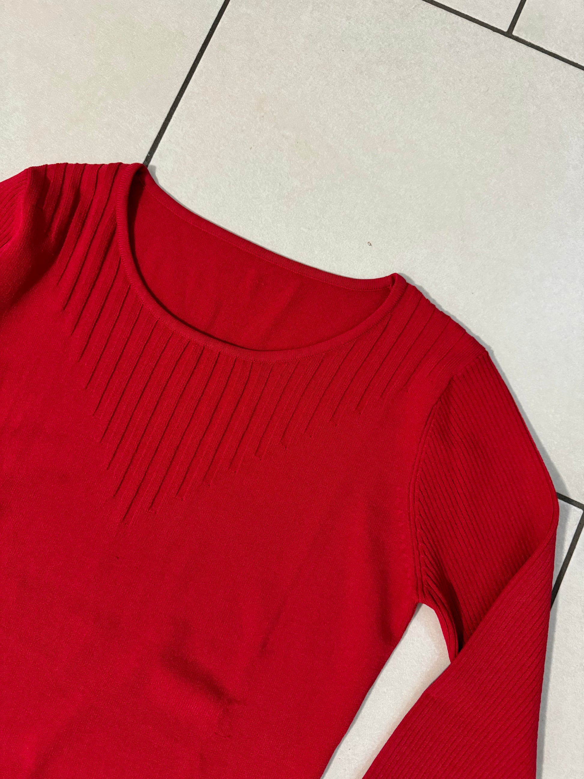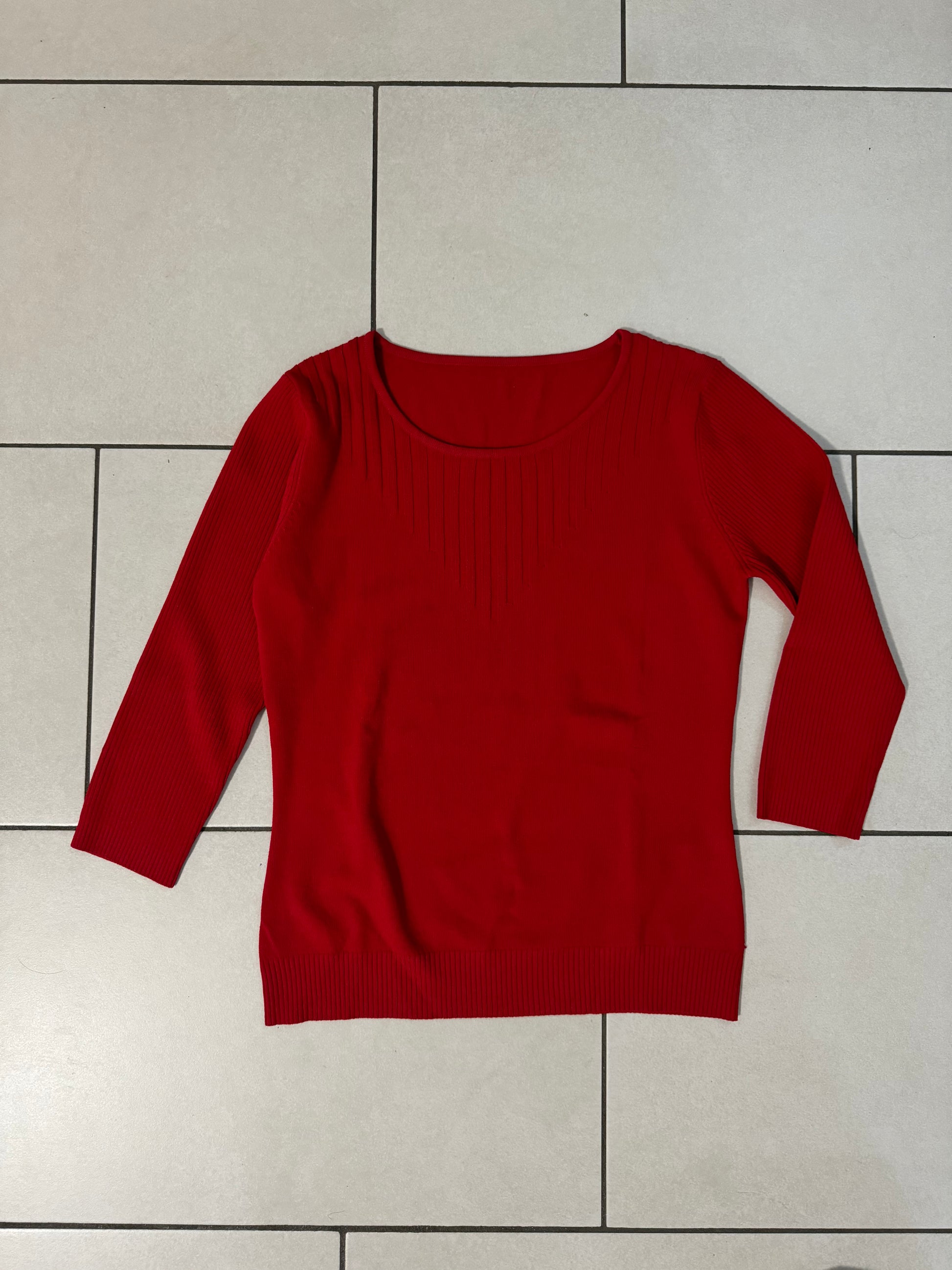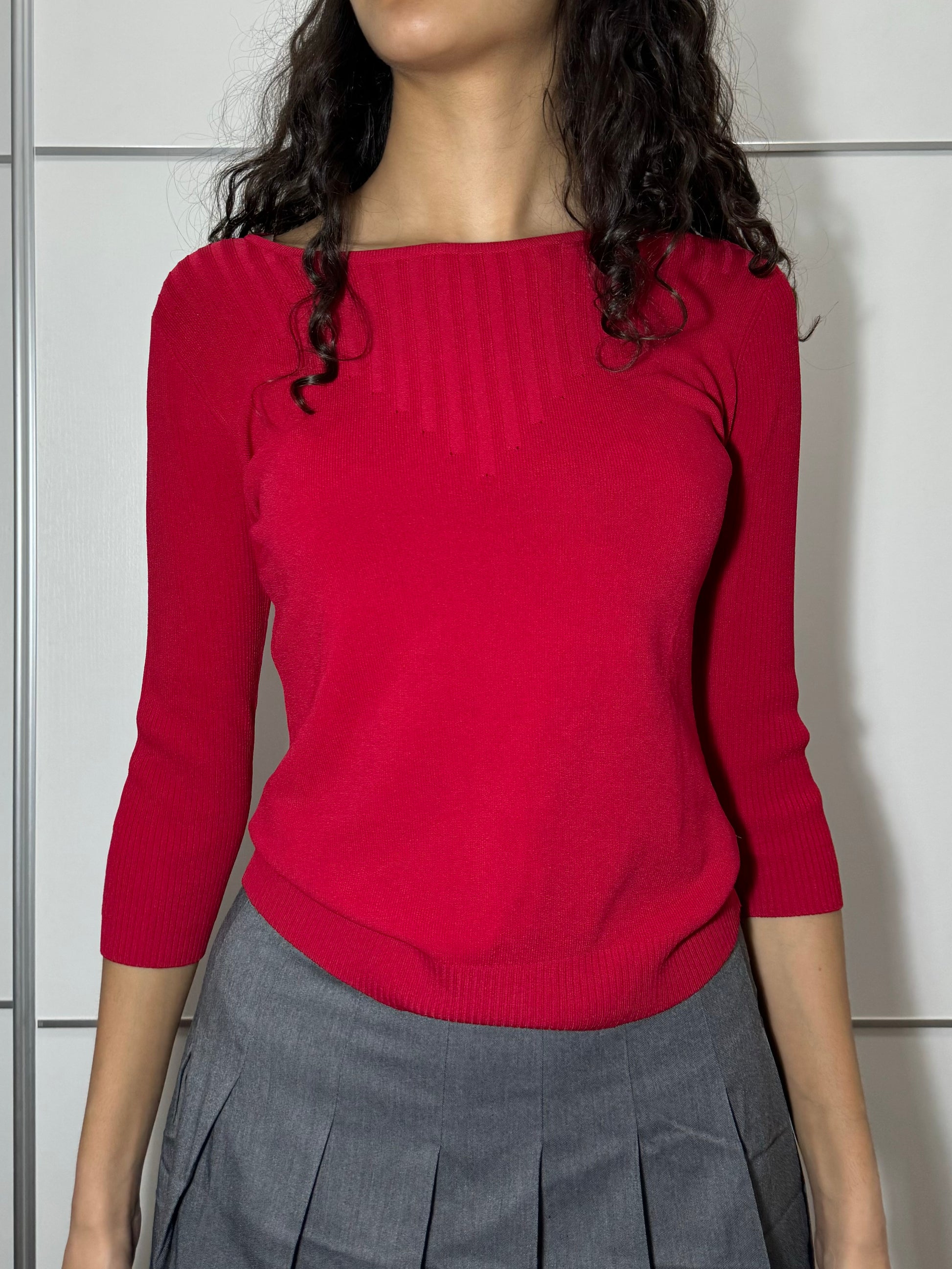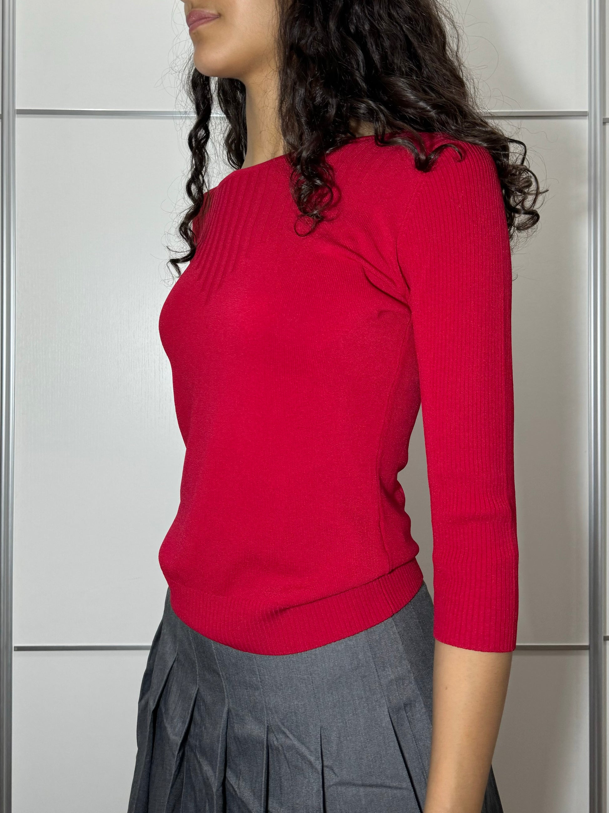 Sottogiacca con scollo a barca lavorato e manica a 3/4 rosso acceso.