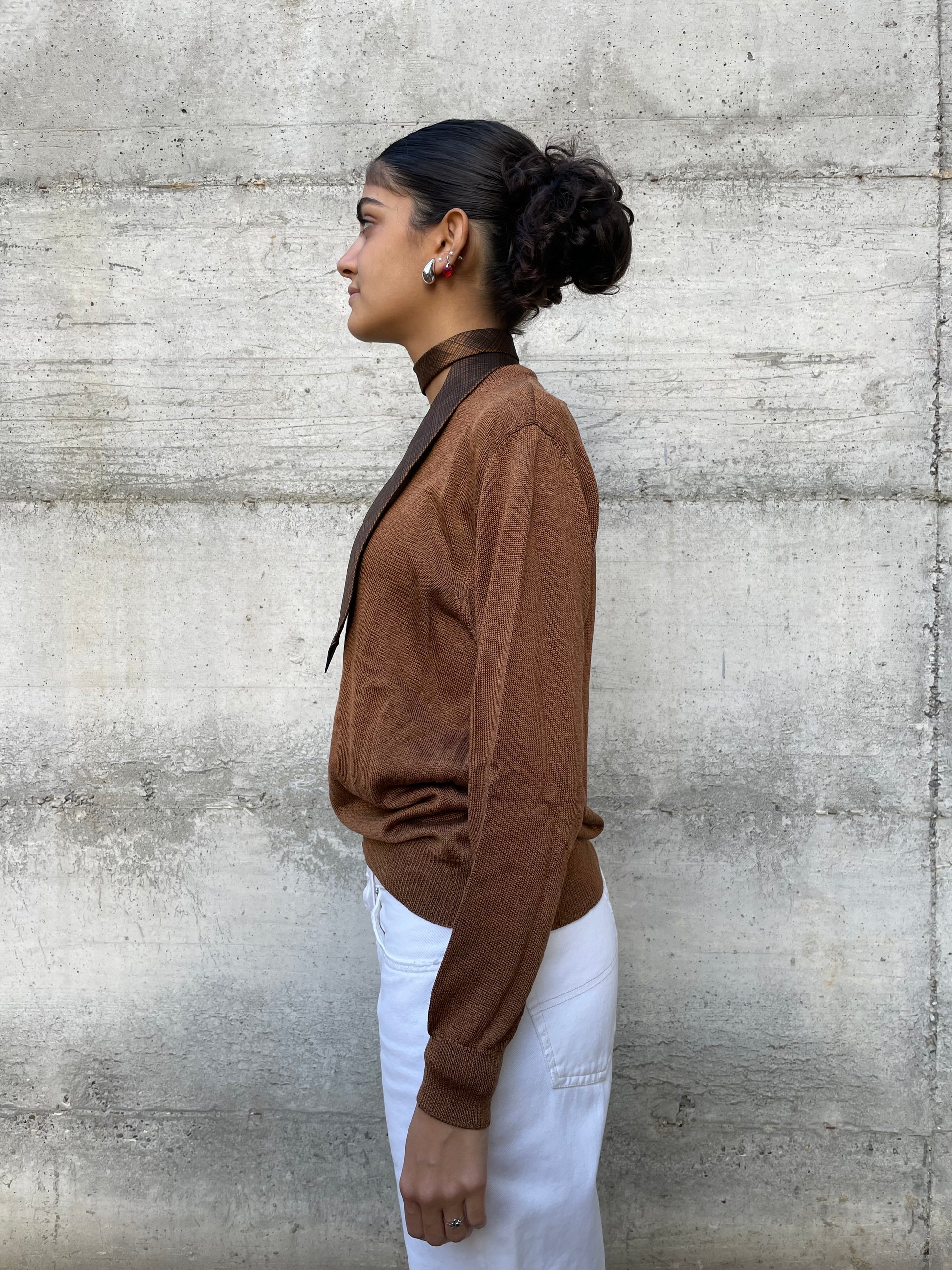 Maglioncino biscotto sartoriale in cotone, con scollo a V.